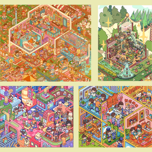 Secret Chamber Escape 3D Sticker | 4 Cute Miniature Scenes