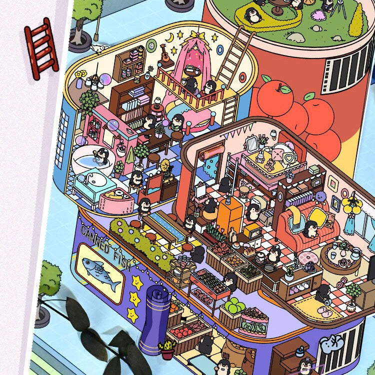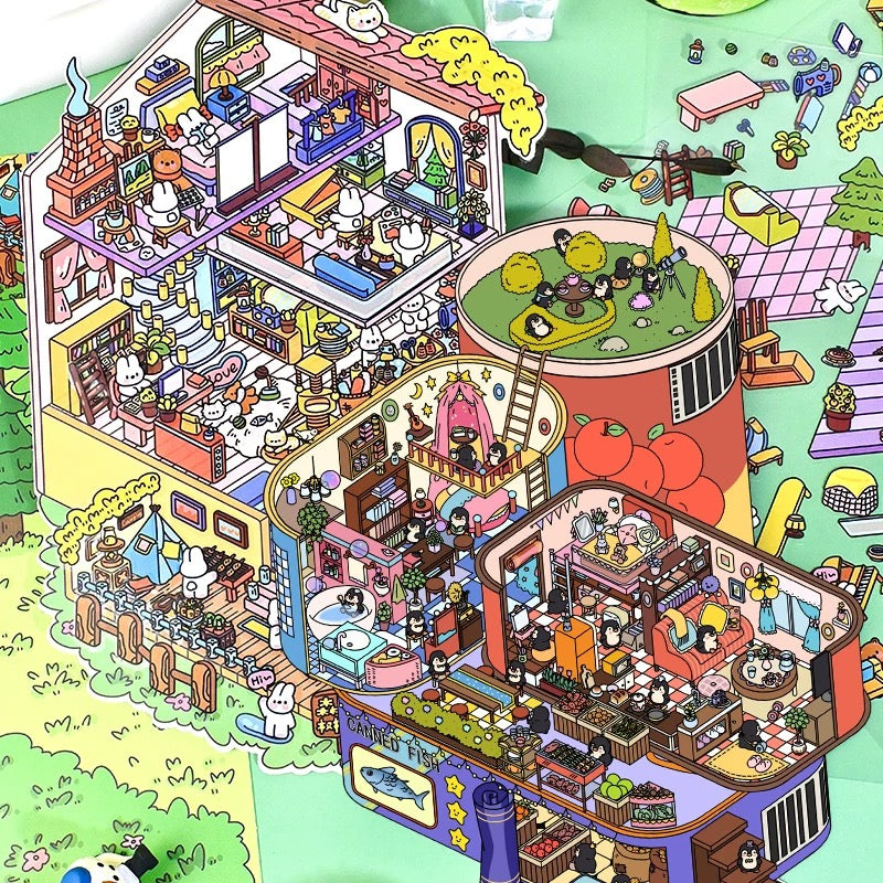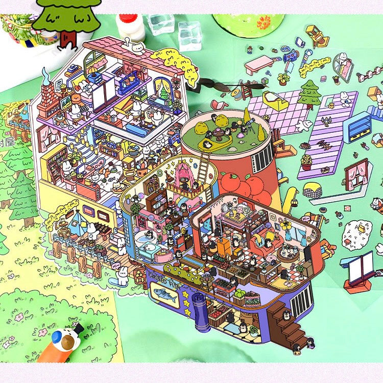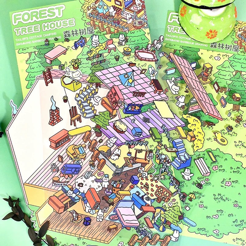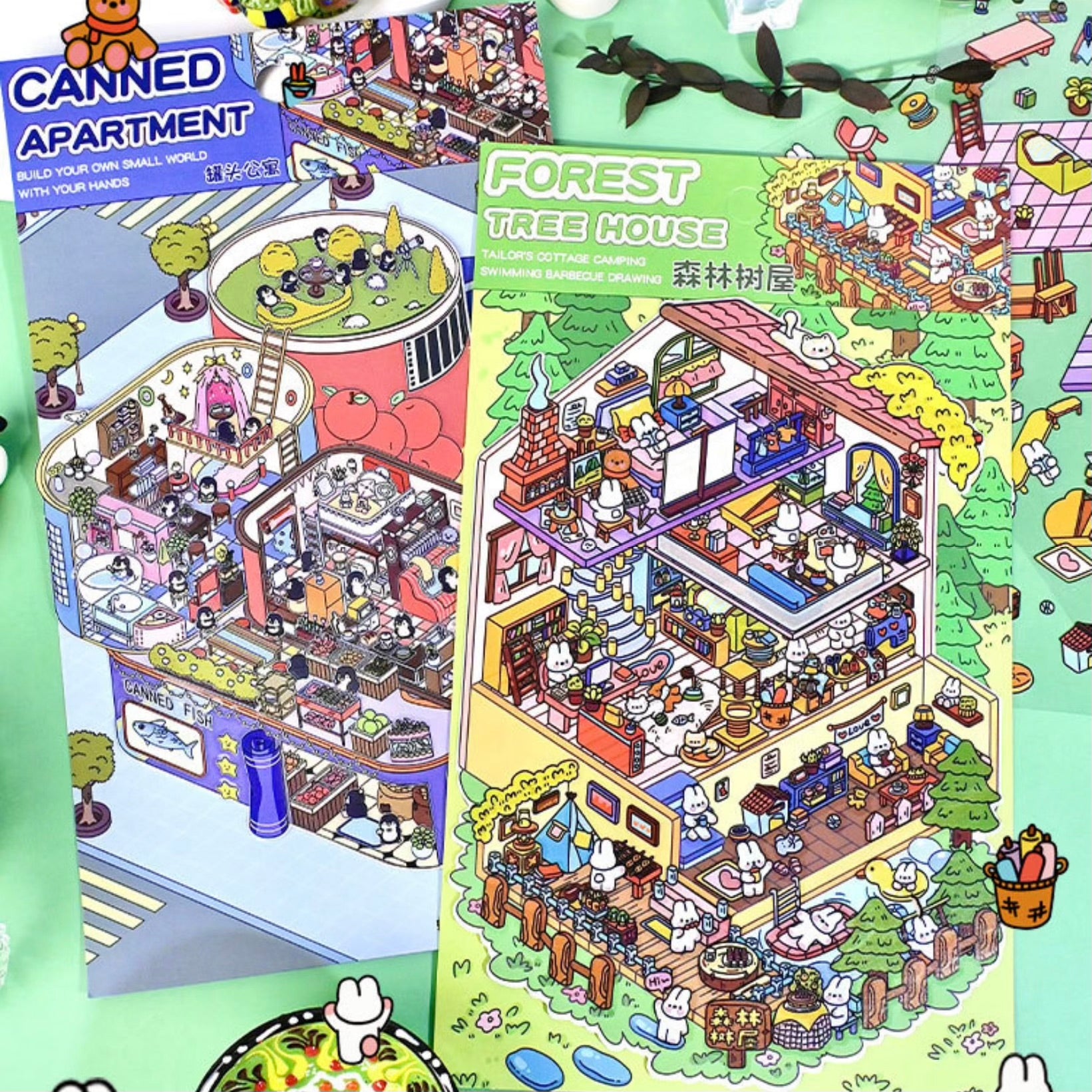 Dream House 3D Sticker – 2 Cute Miniature Scenes