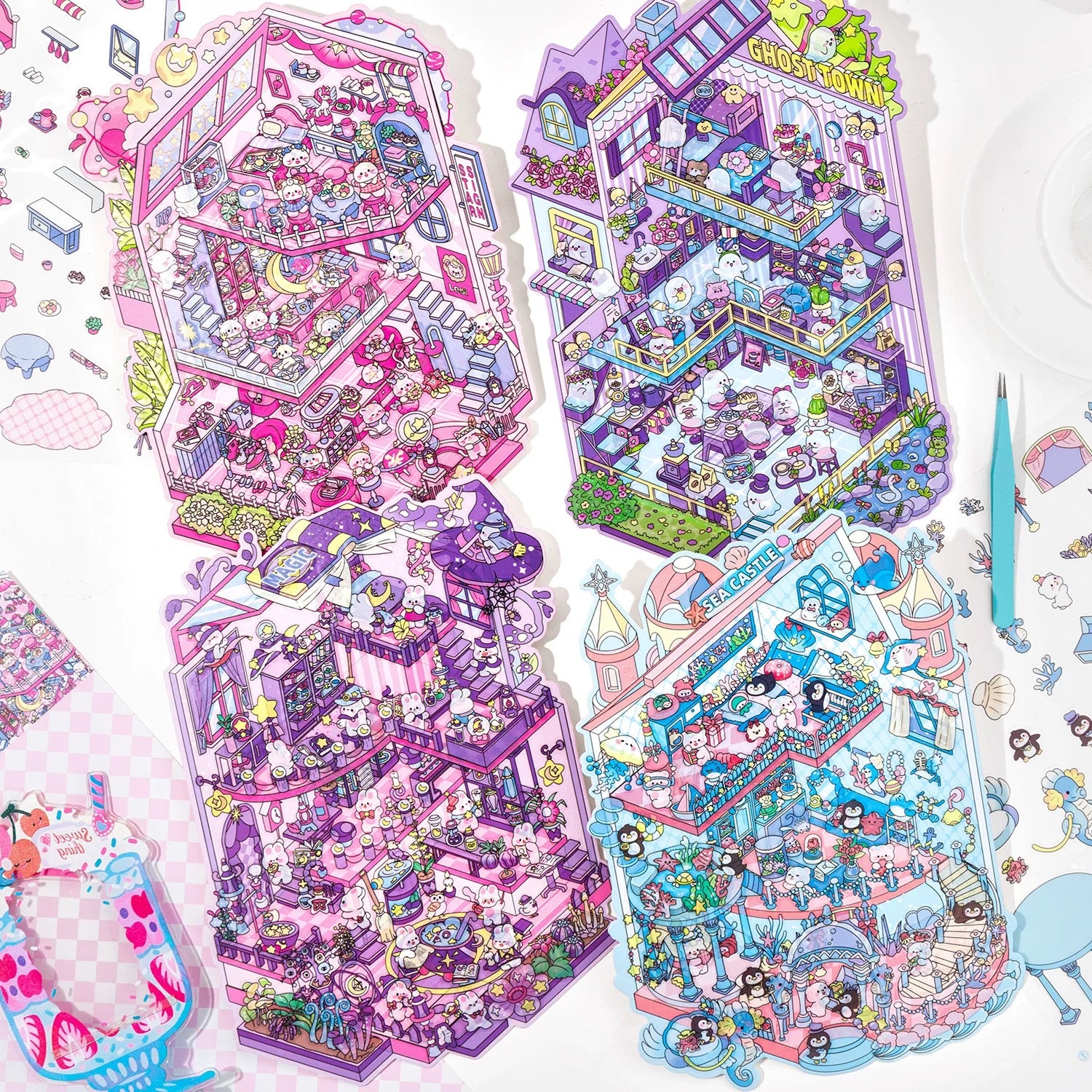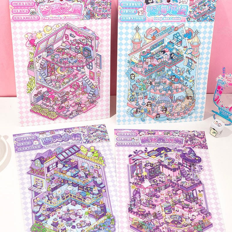 MiniVerse Mansion 3D Sticker | 4 Cute Miniature Scenes