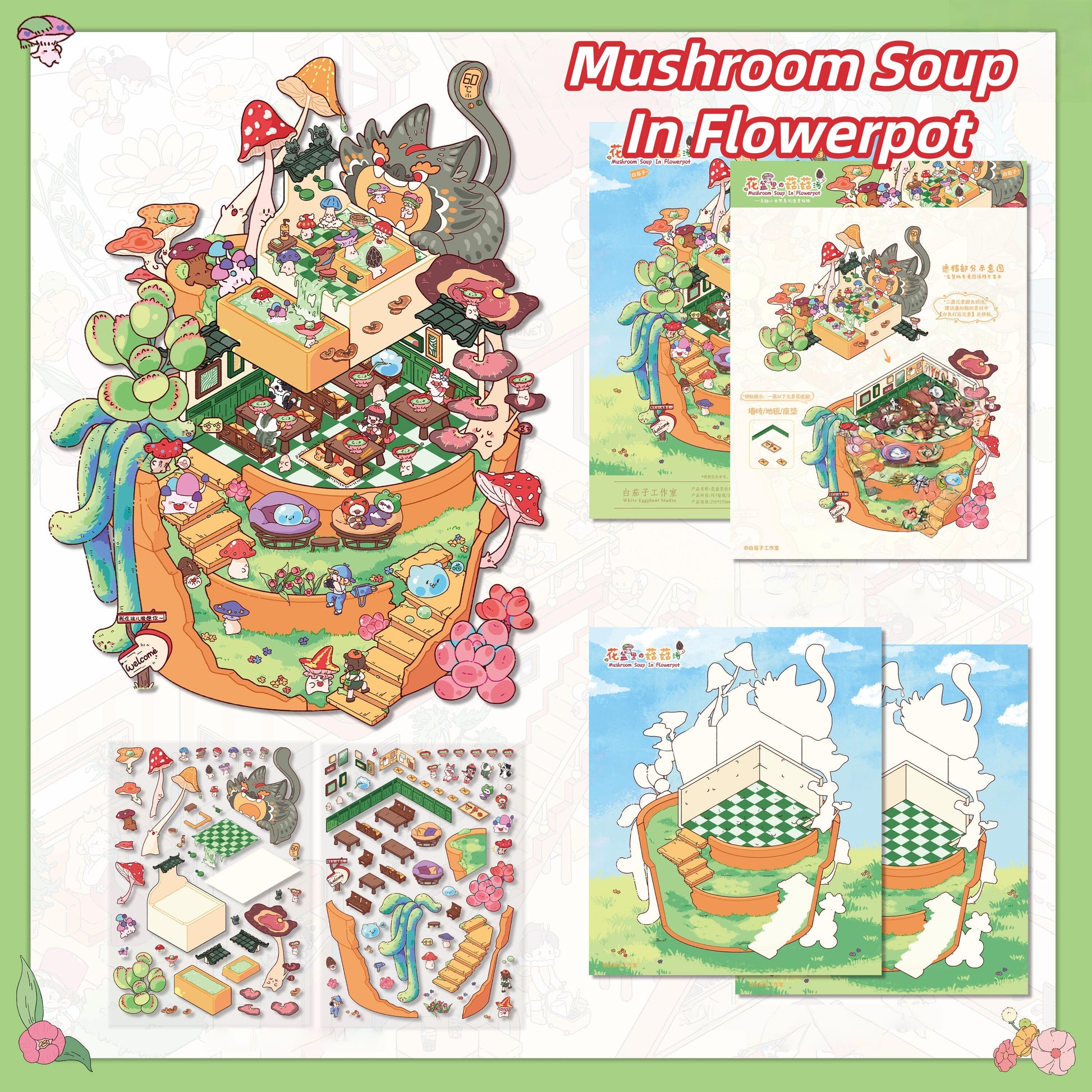 A World of Whimsy 3D Sticker | 4 Cute Miniature Scenes