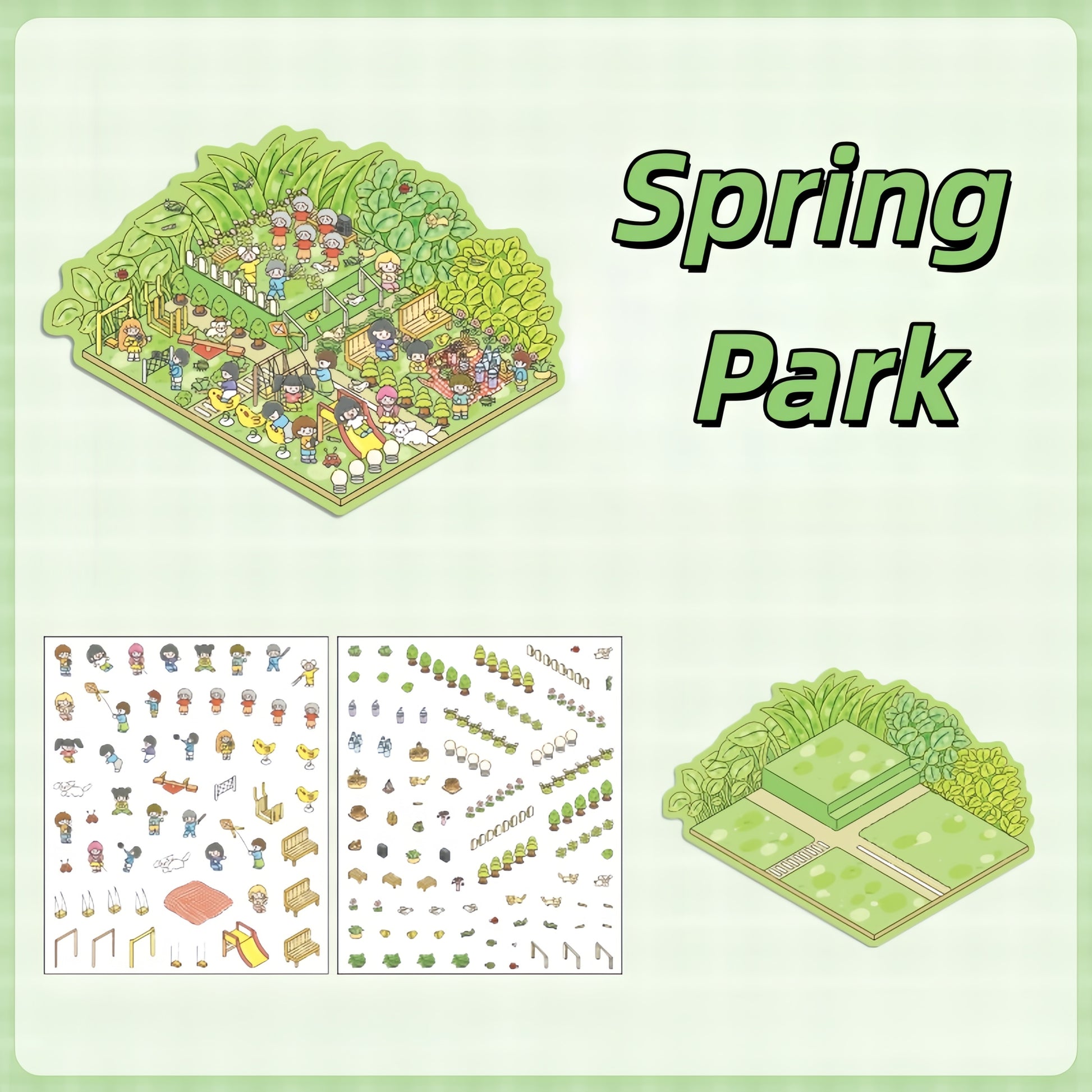 Four Seasons Funland 3D Sticker | 4 Cute Miniature Scenes