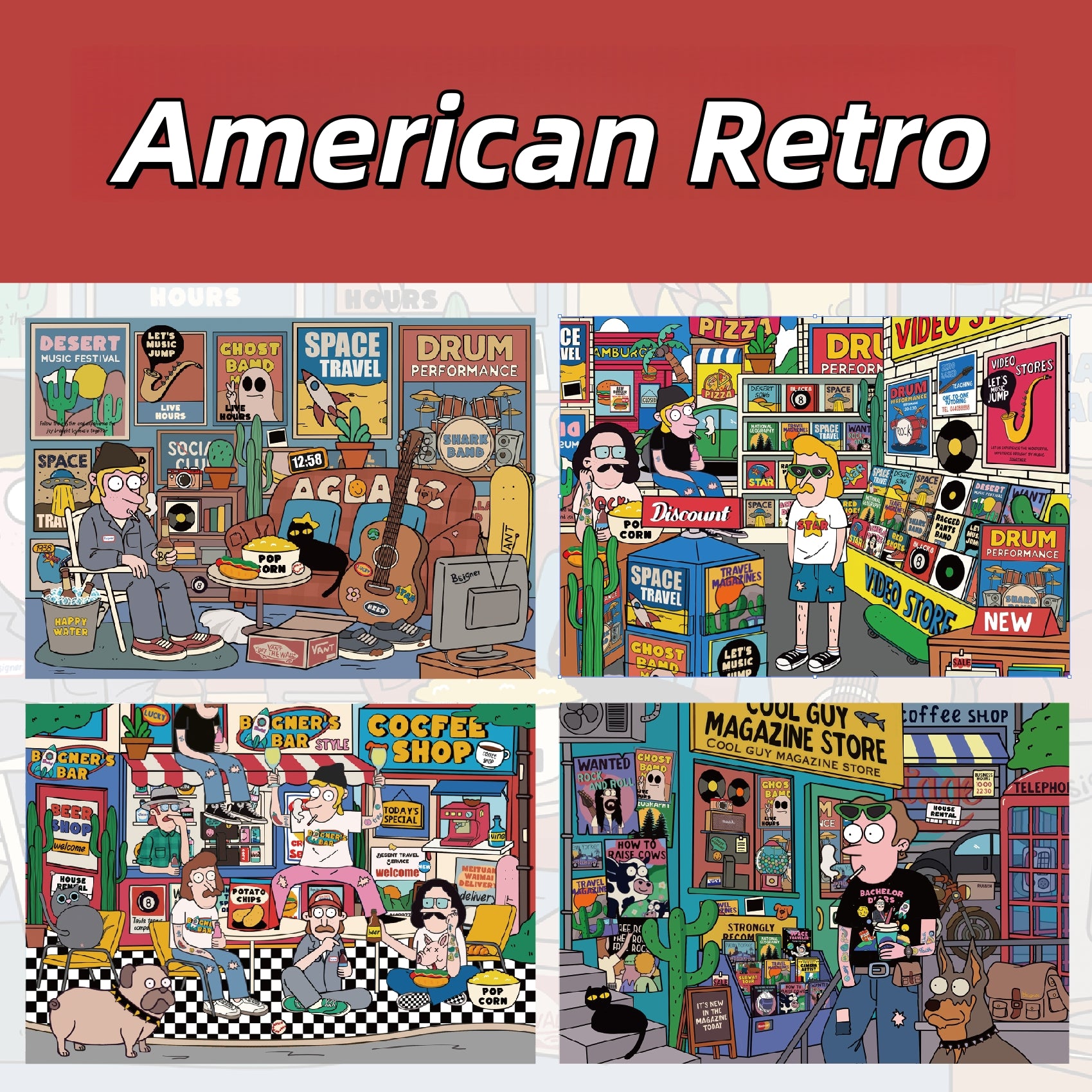 American Retro 3D Sticker | 4 Cute Miniature Scenes