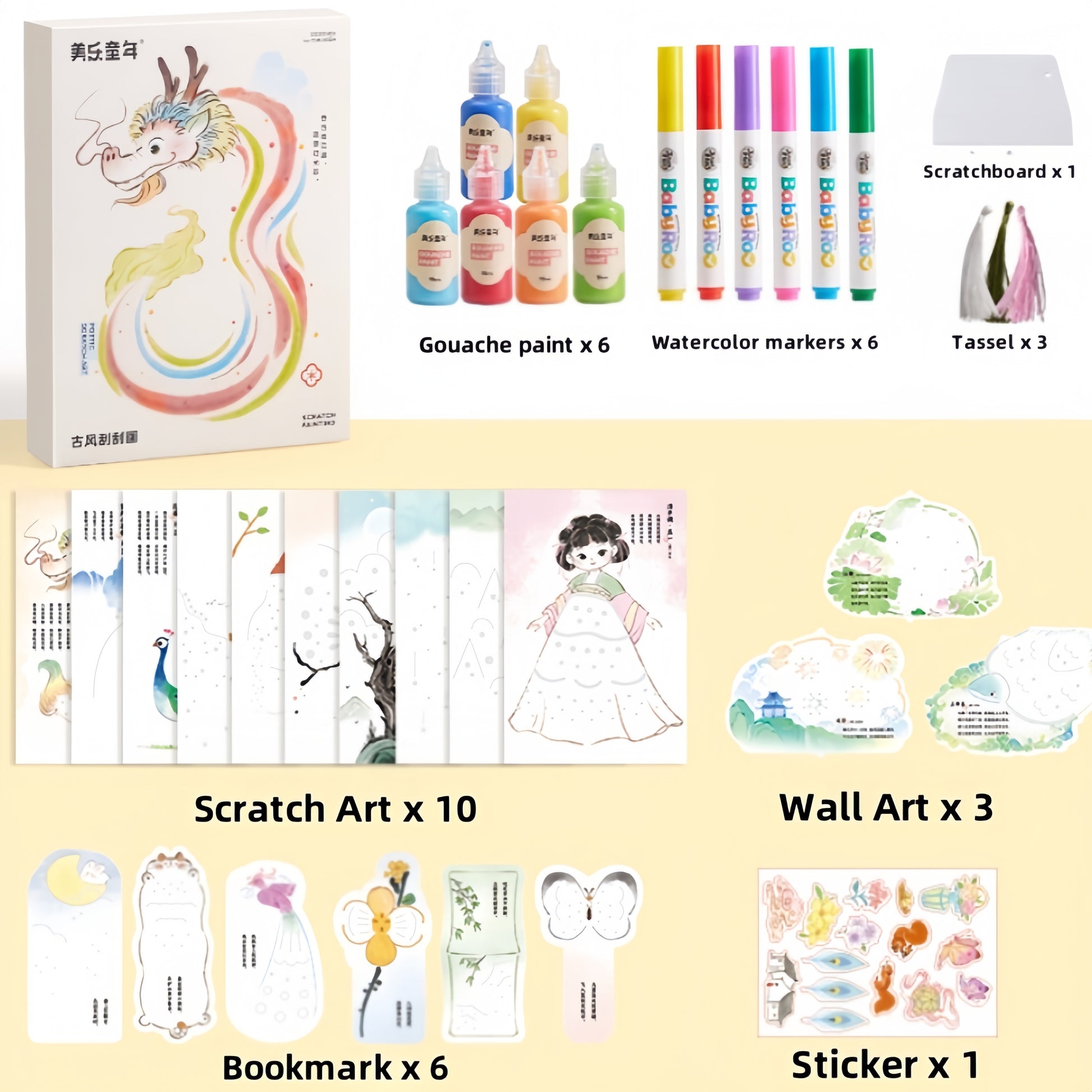 Ancient China Rainbow Scratch Art - 19 Themes Included