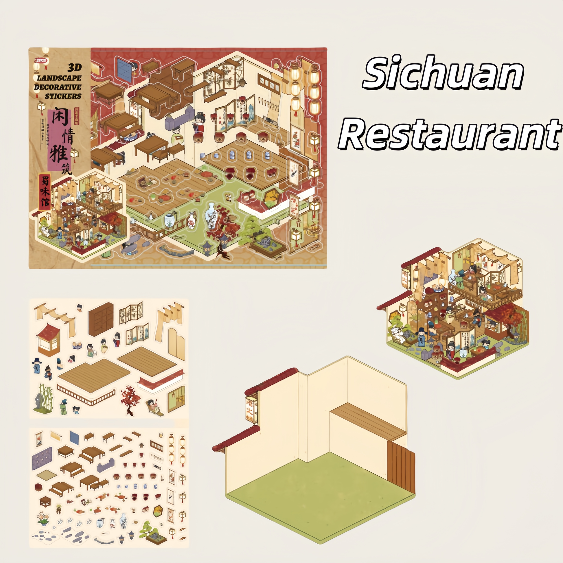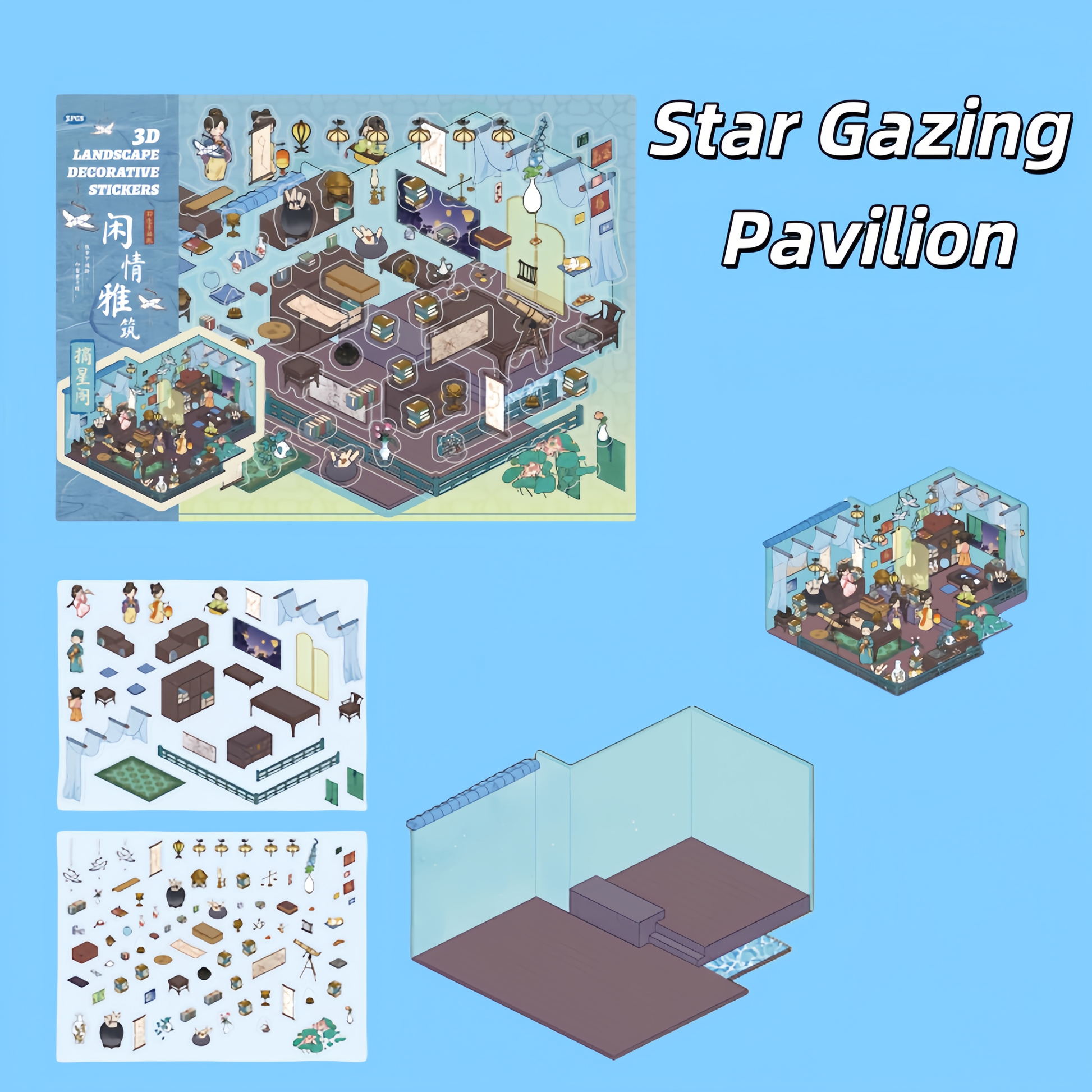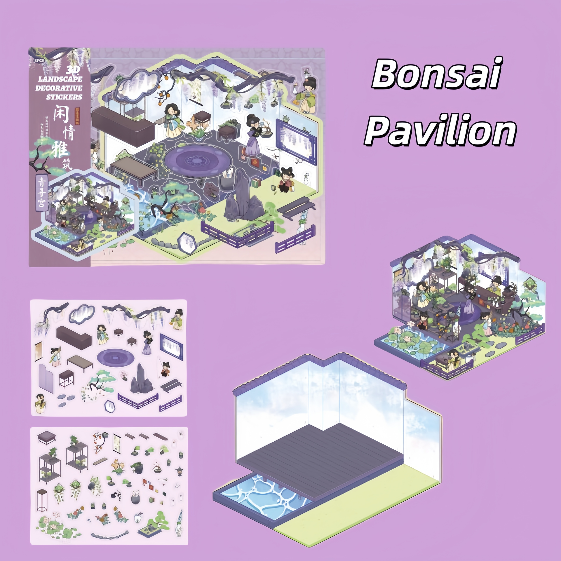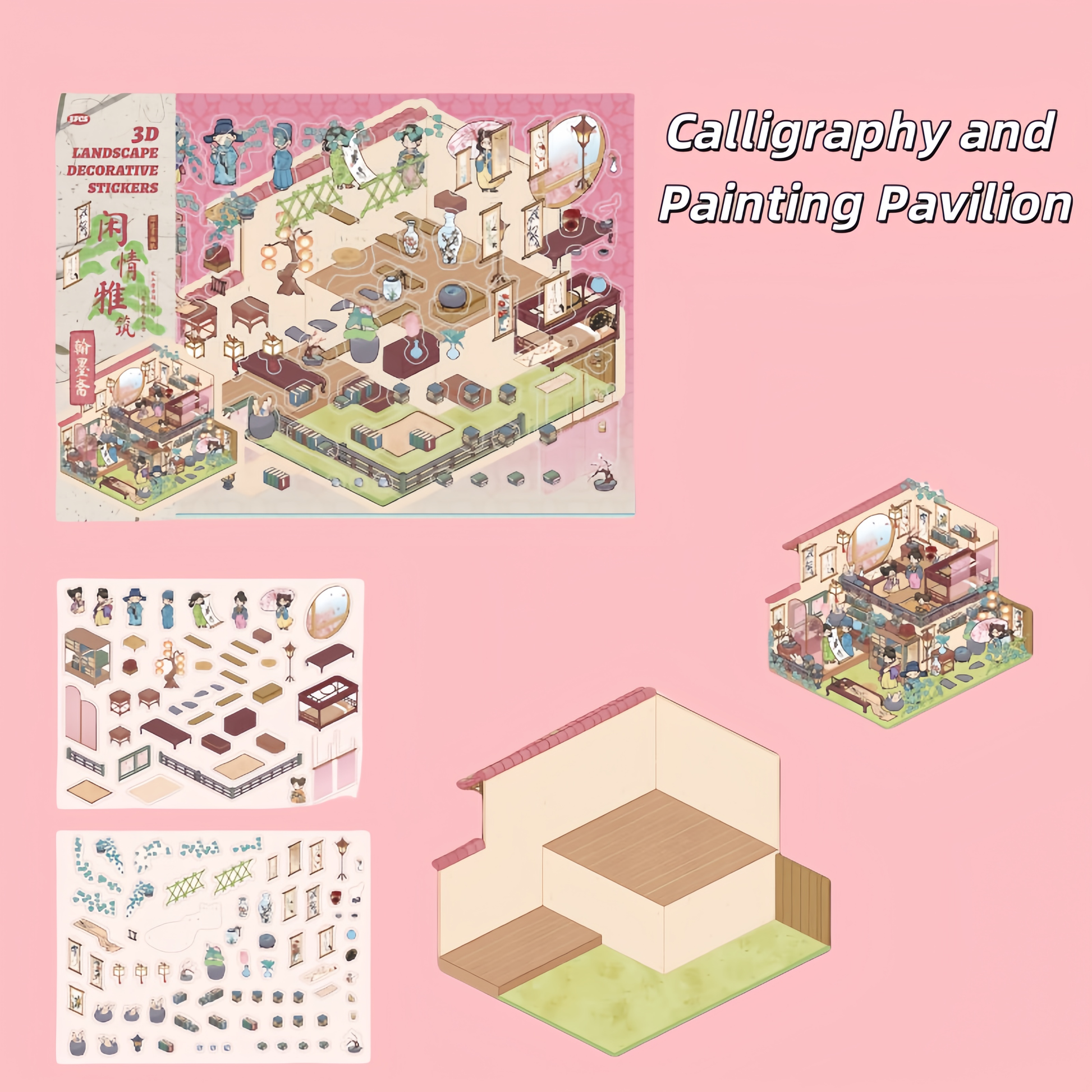 Ancient Chinese Pavilions 3D Sticker | 4 Cute Miniature Scenes