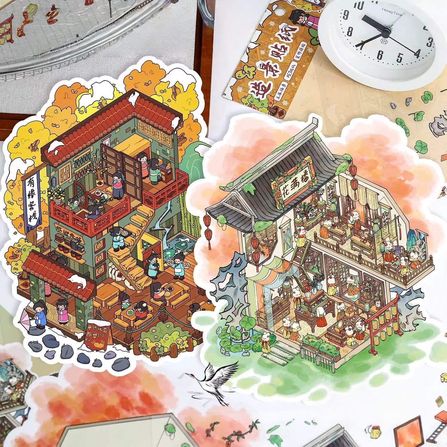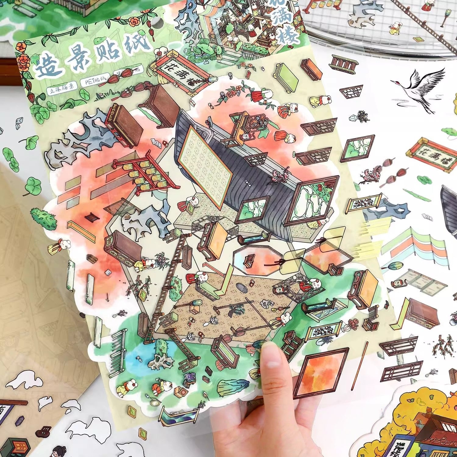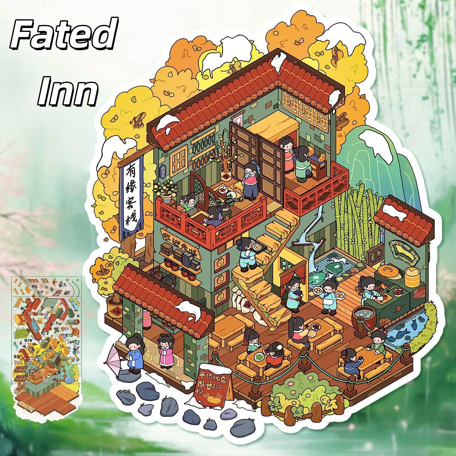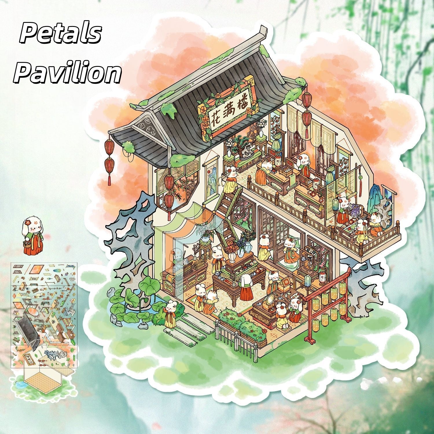 Ancient Chinese Pavilions 3D Sticker | 2 Cute Miniature Scenes