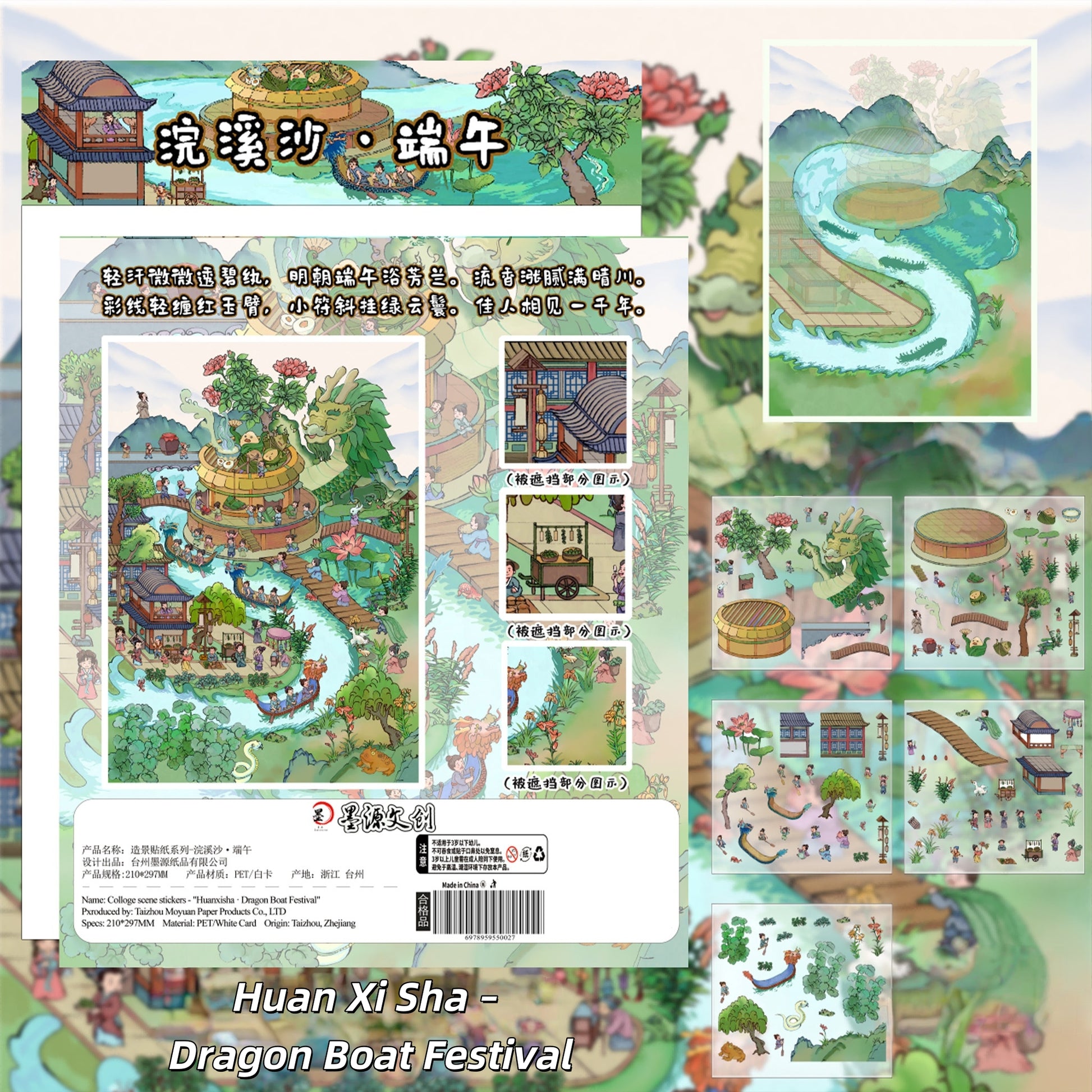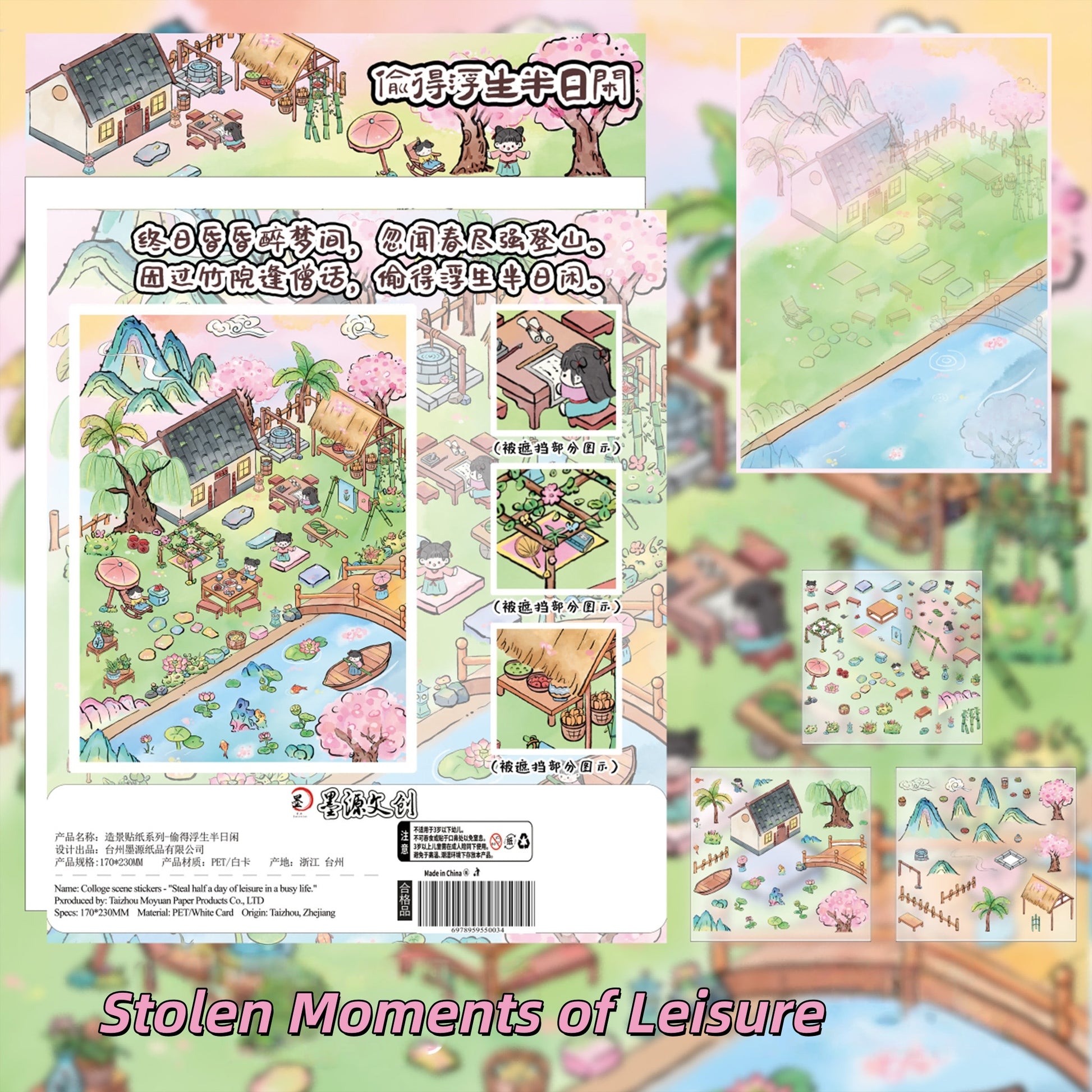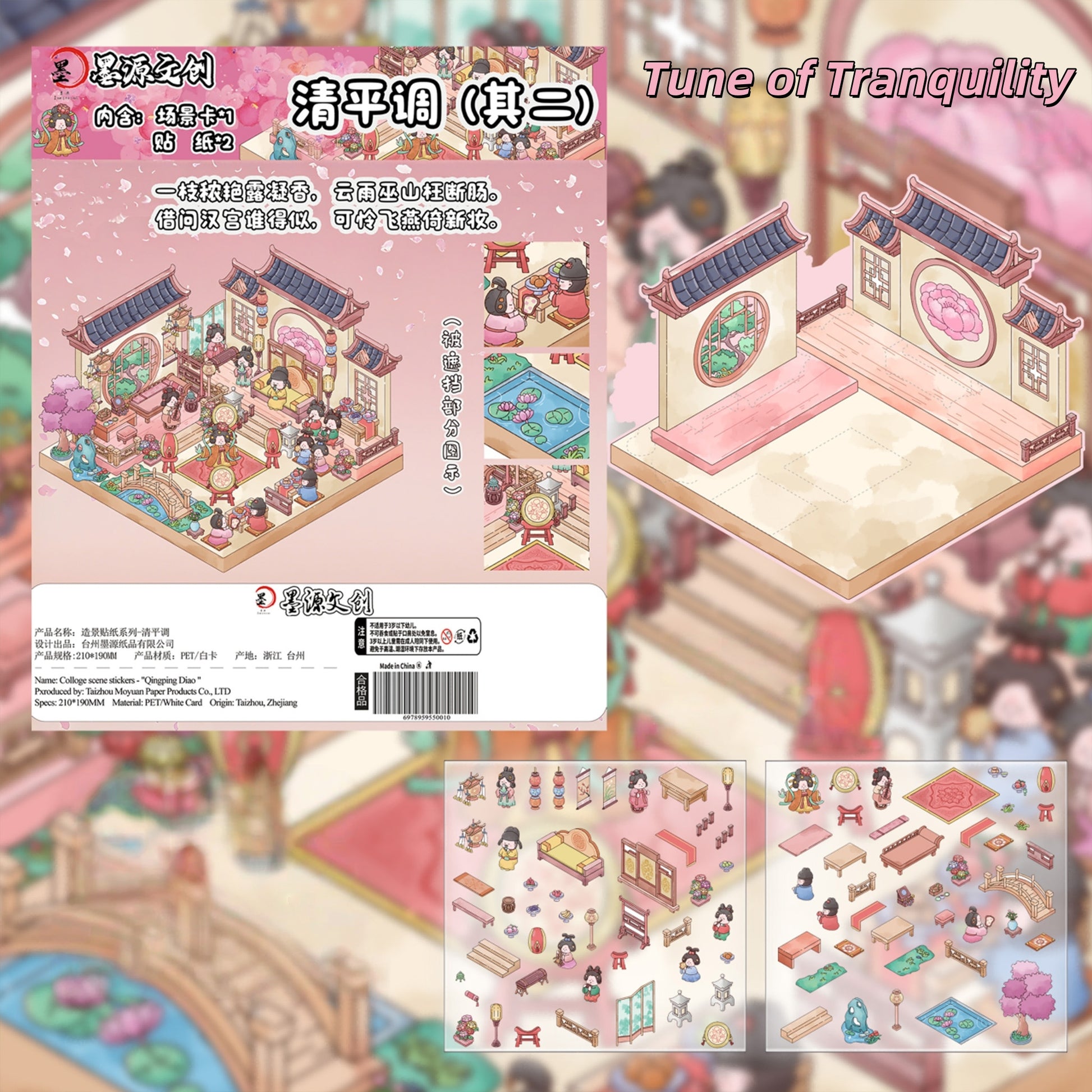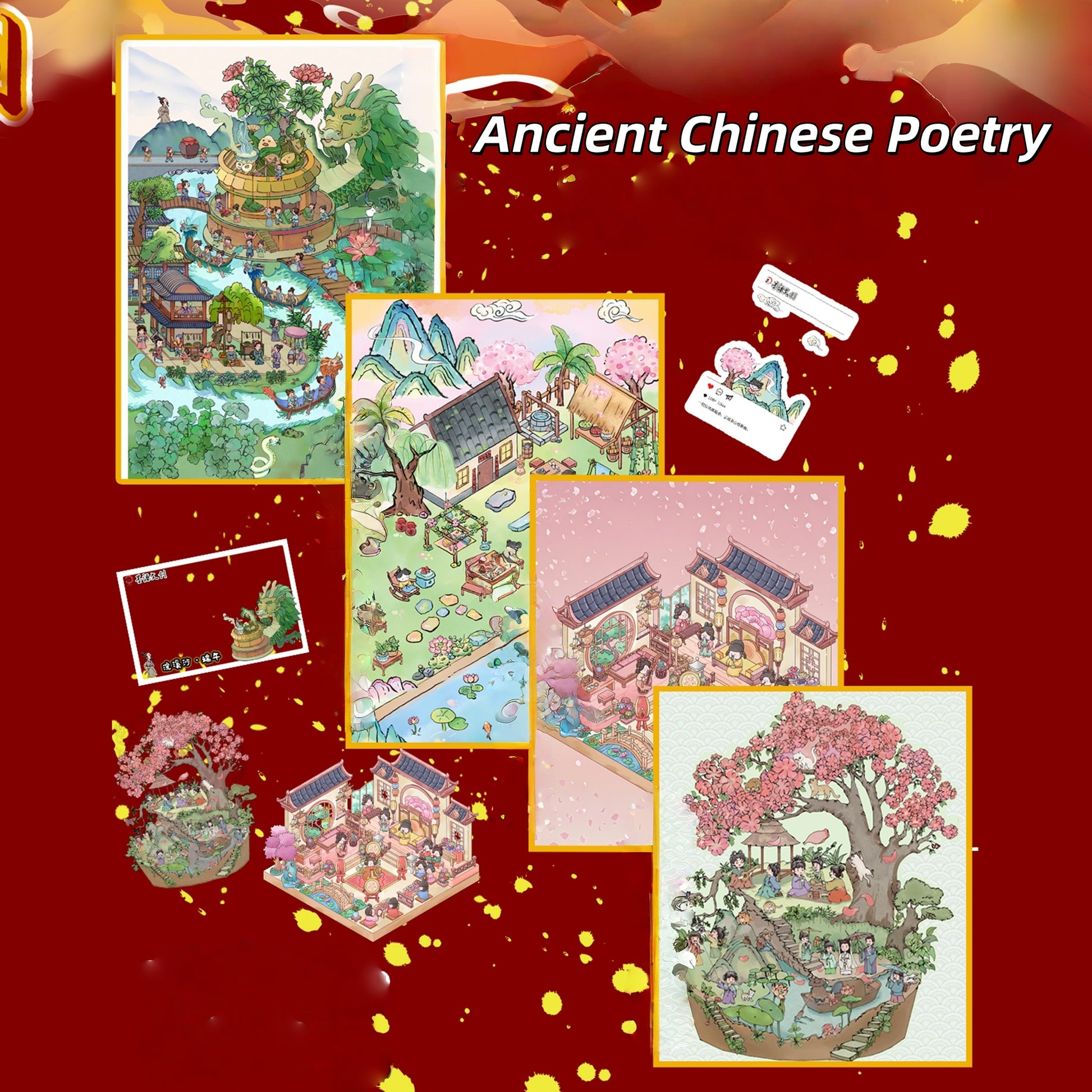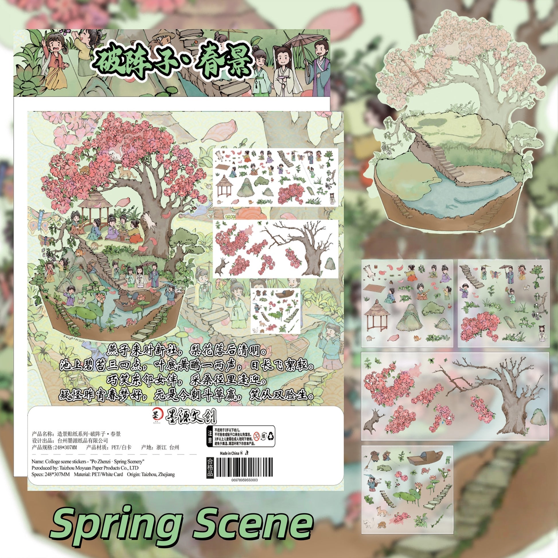 Ancient Chinese Poetry 3D Sticker | 4 Cute Miniature Scenes