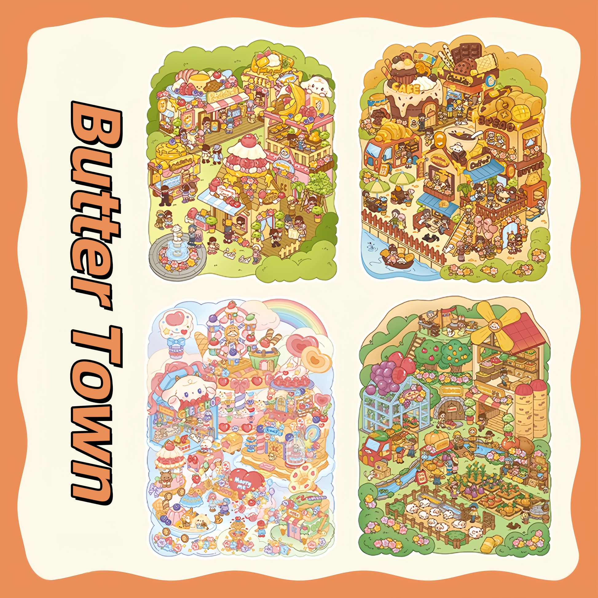 Butter Town 3D Sticker | 4 Cute Miniature Scenes