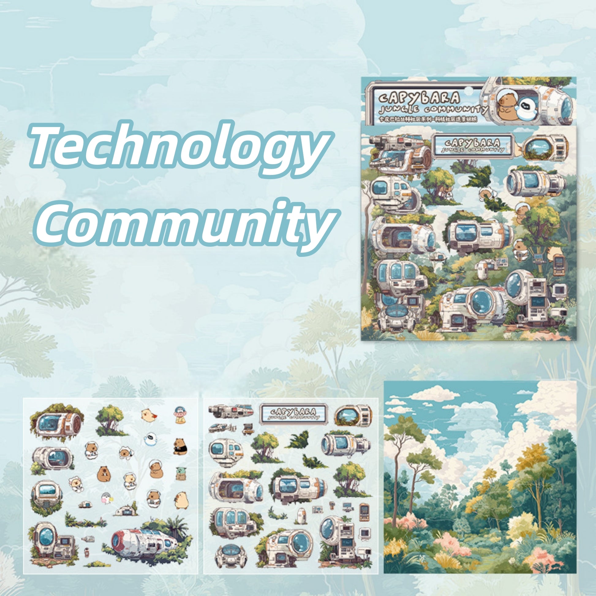 Capybara Community 3D Sticker | 4 Cute Miniature Scenes