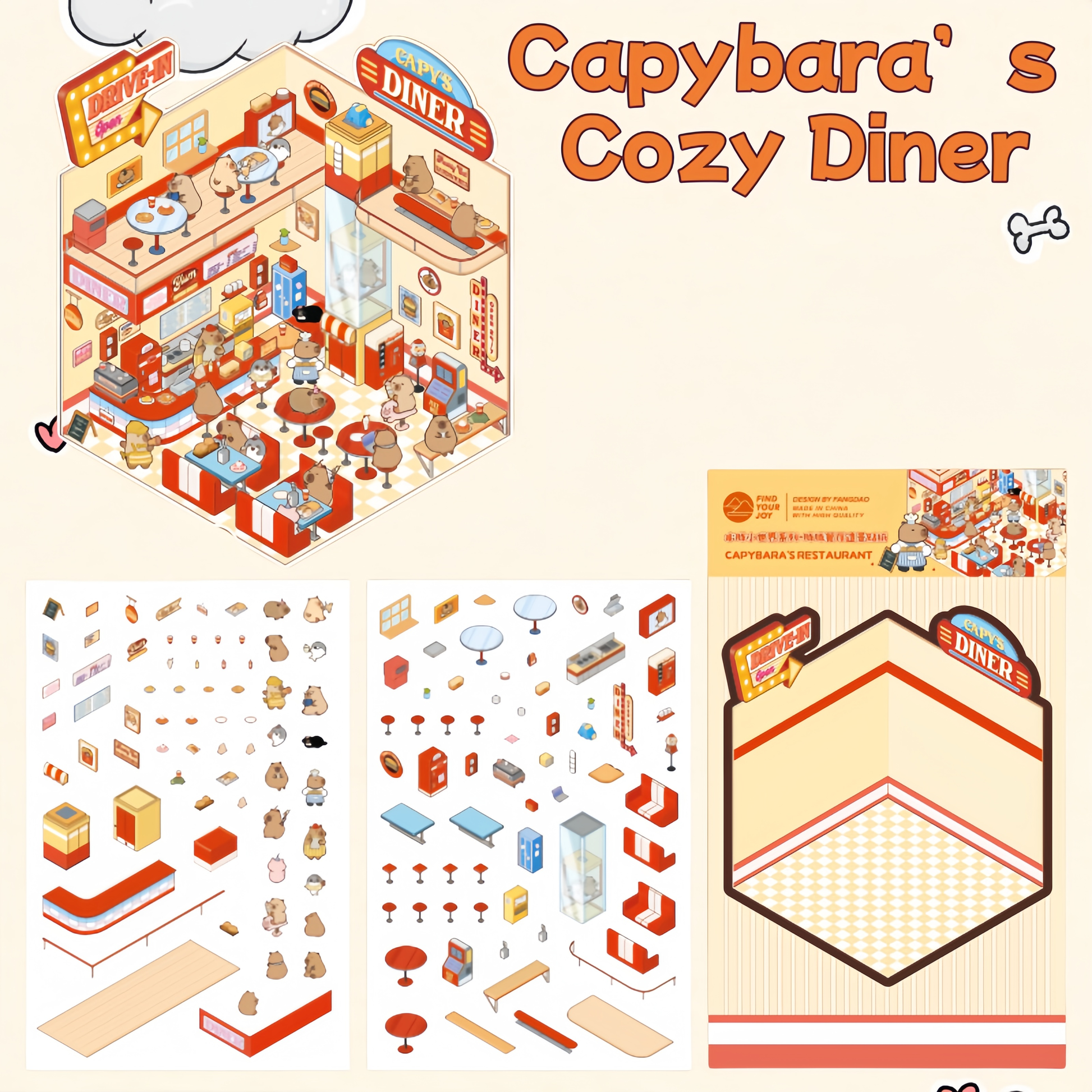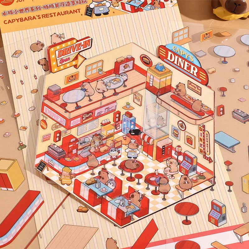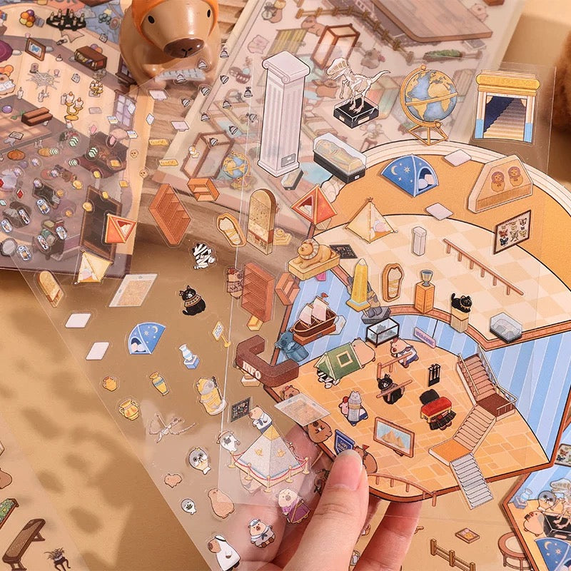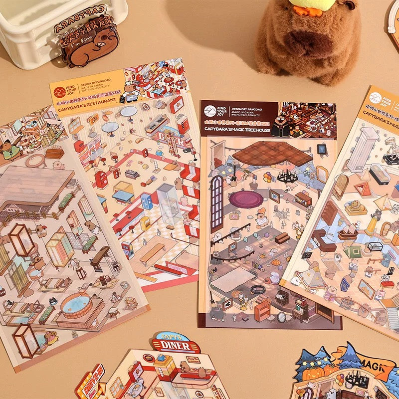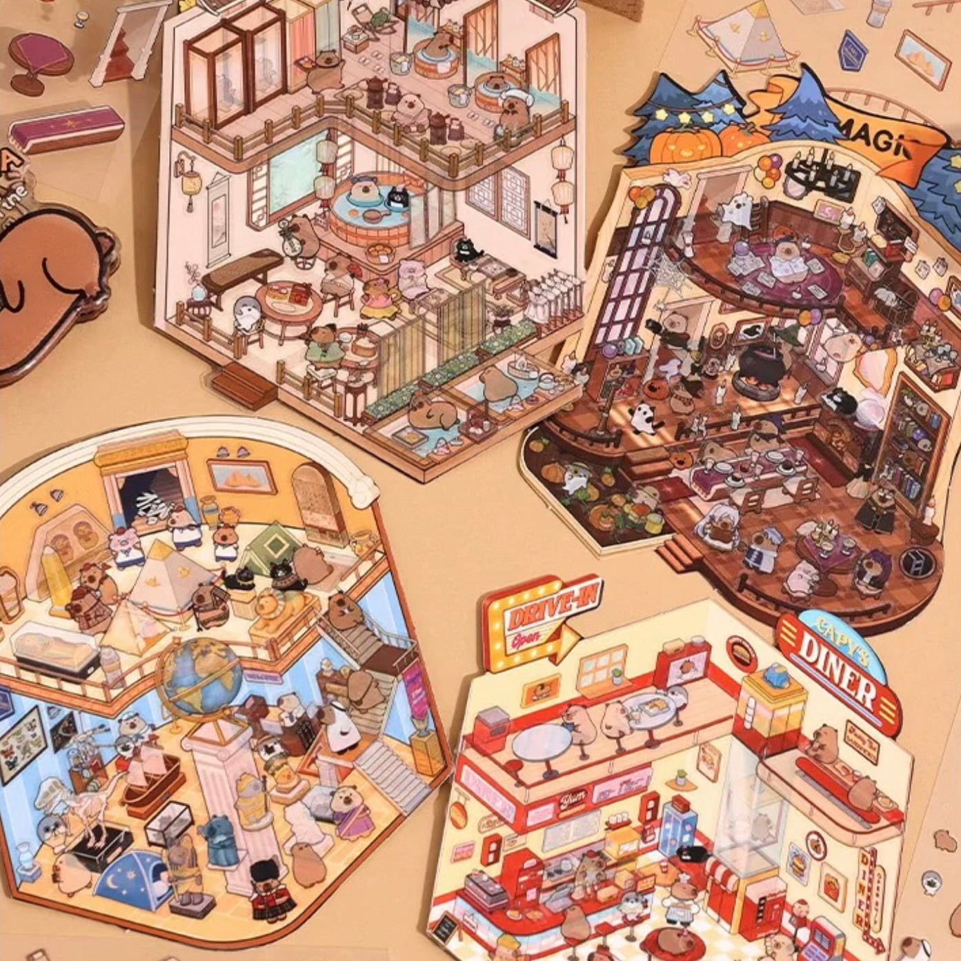 Capybara's Whimsical World 3D Sticker | 4 Cute Miniature Sticker