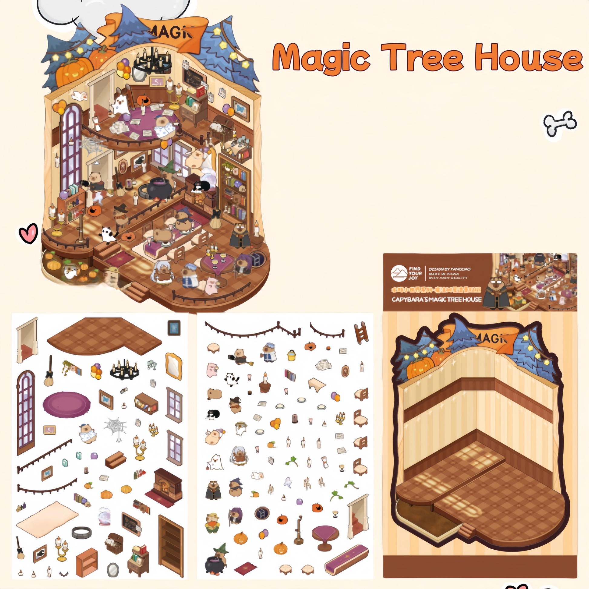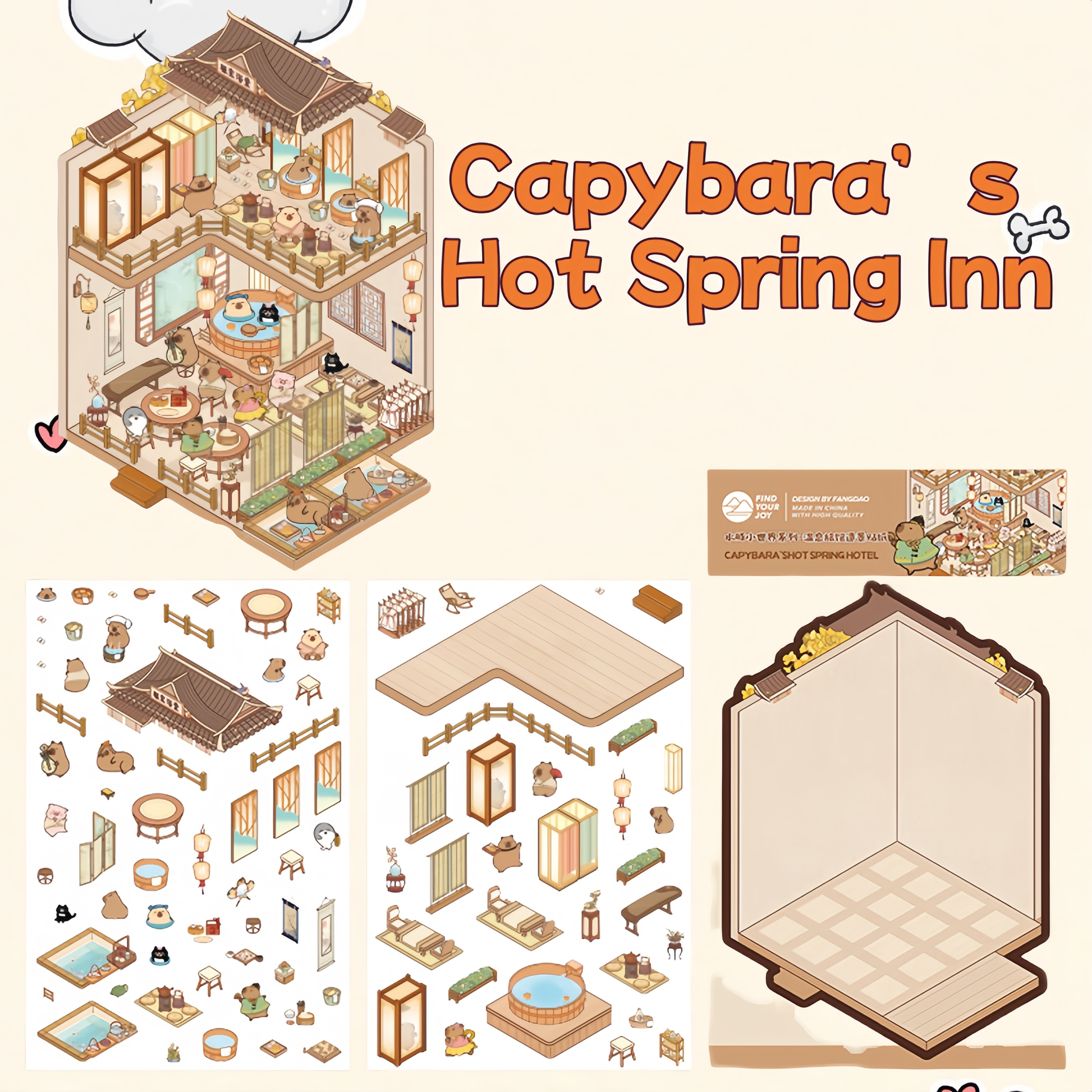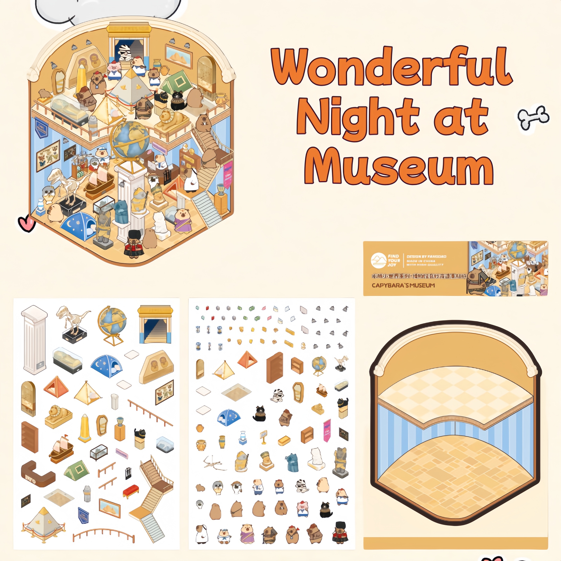 Capybara's Whimsical World 3D Sticker | 4 Cute Miniature Sticker