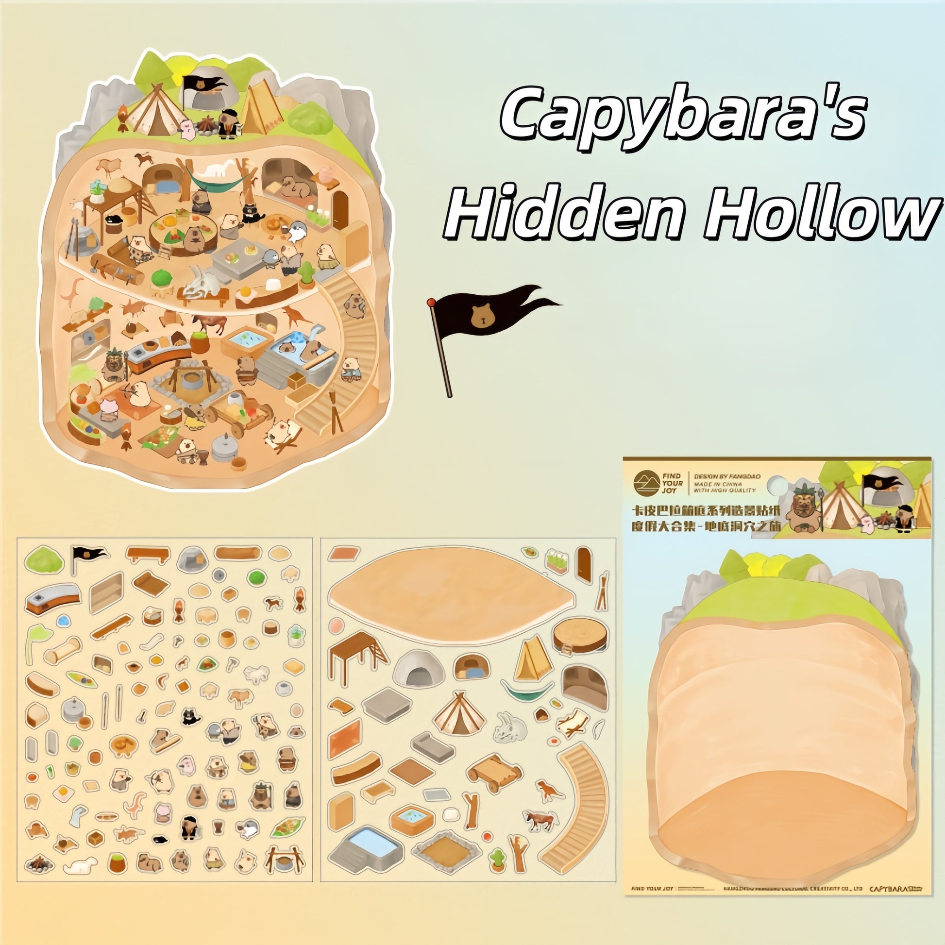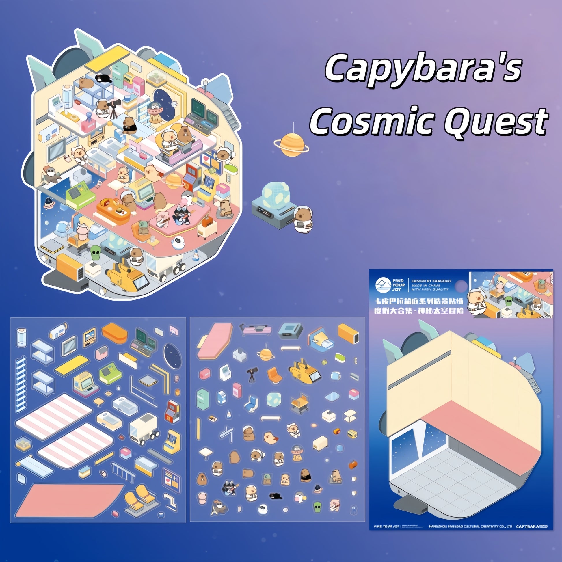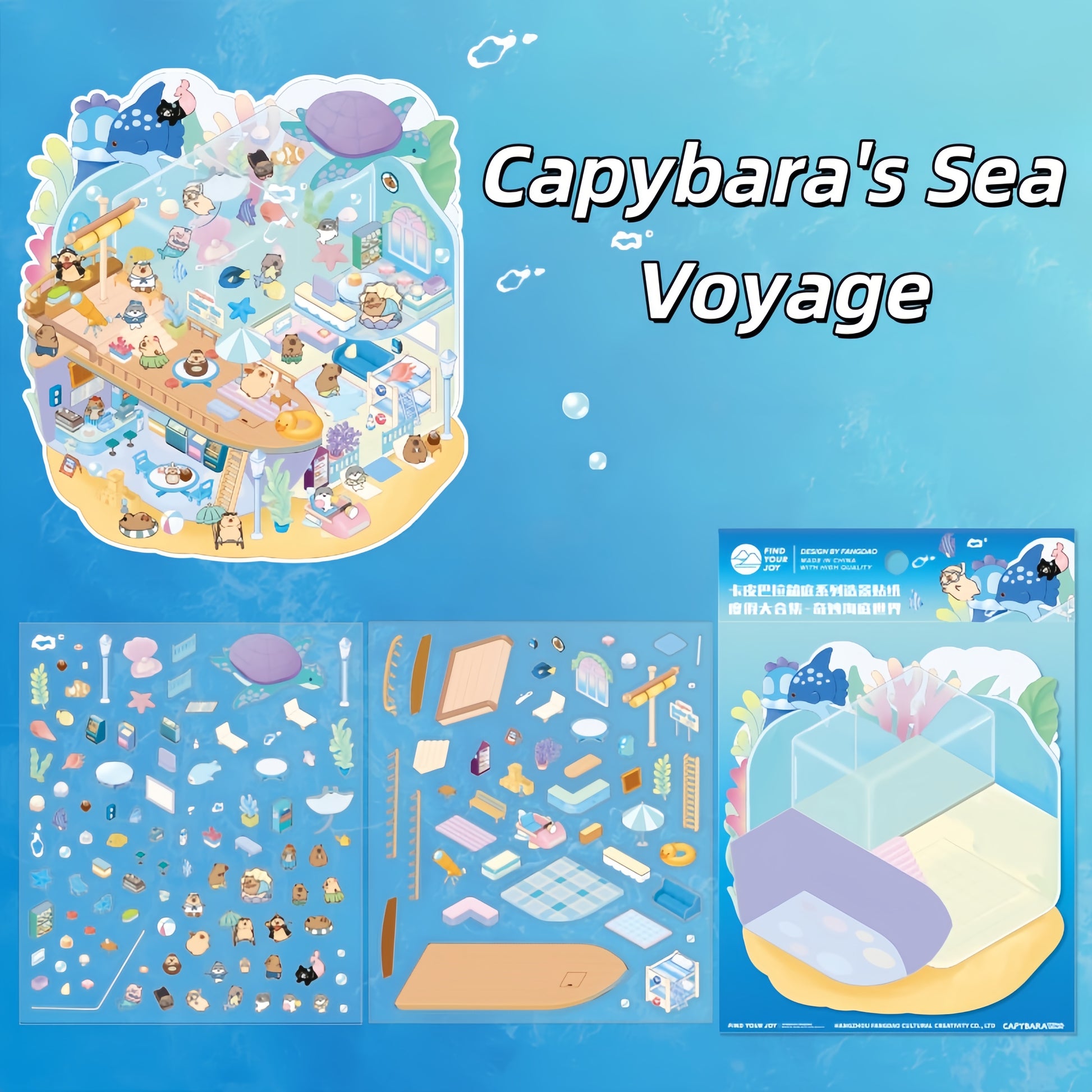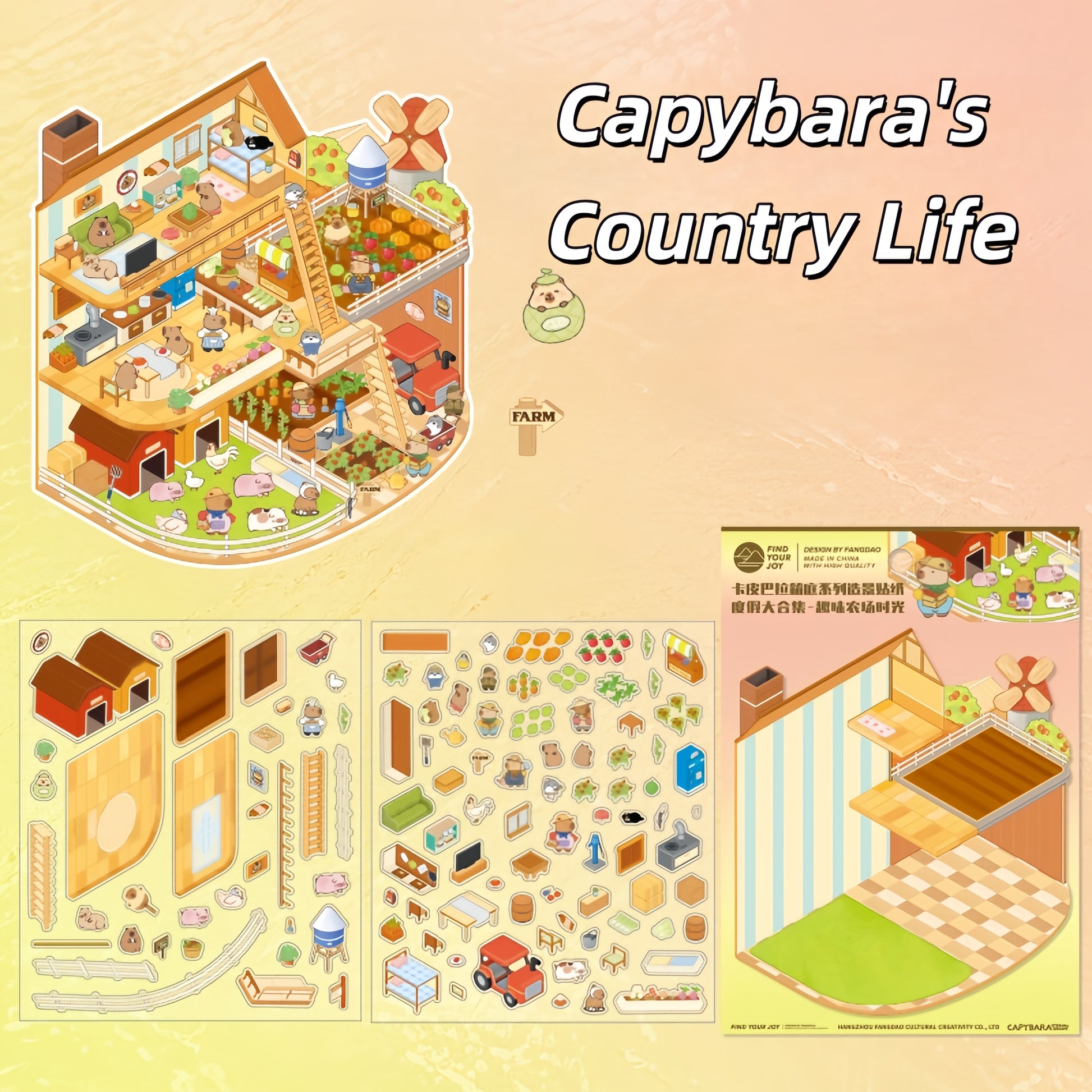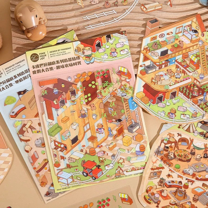 Capybara's Whimsical World 3D Sticker | 4 Cute Miniature Scenes