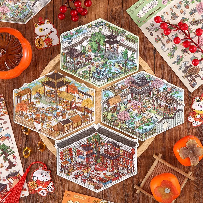 Purrfect Seasons 3D Sticker | 4 Cute Miniature Scenes