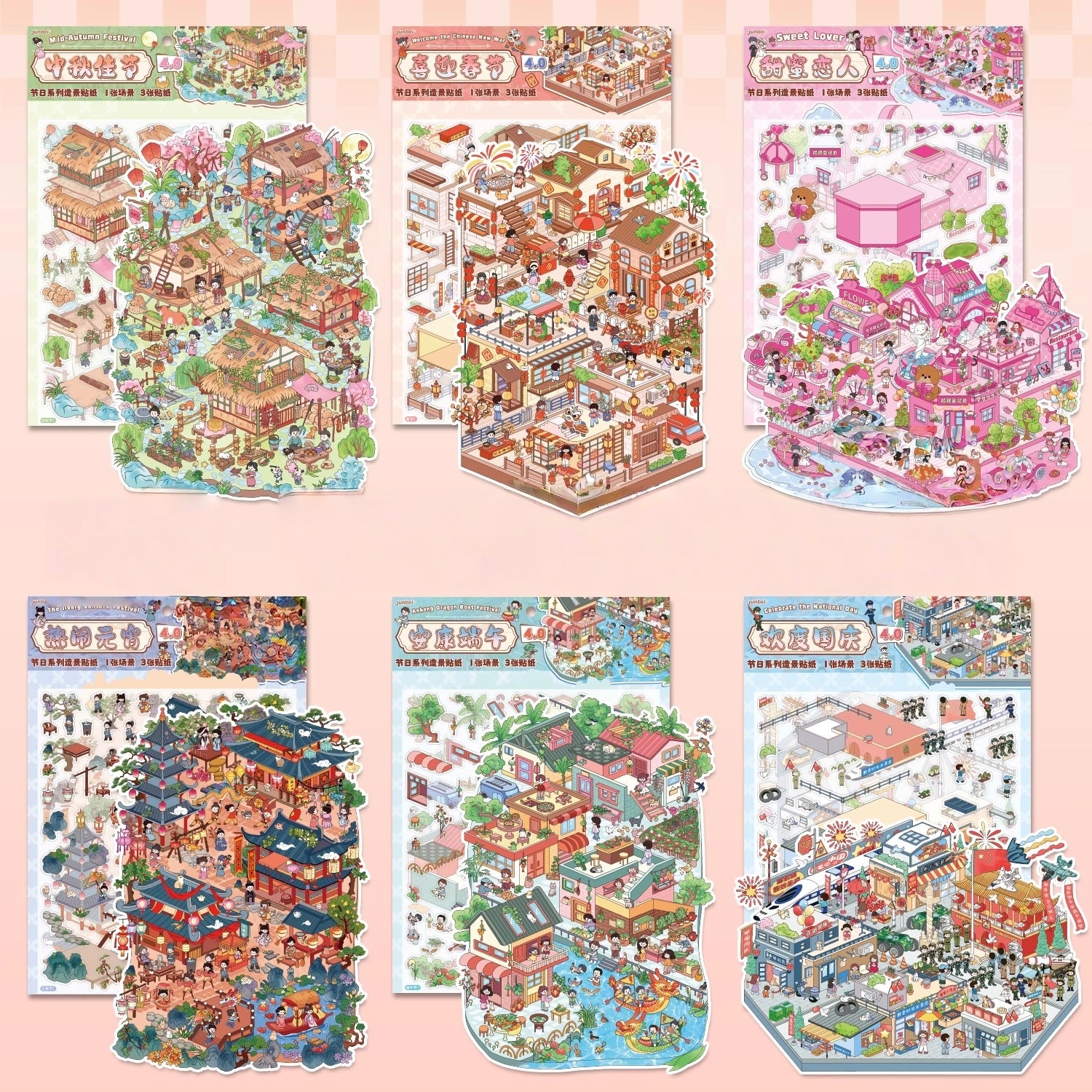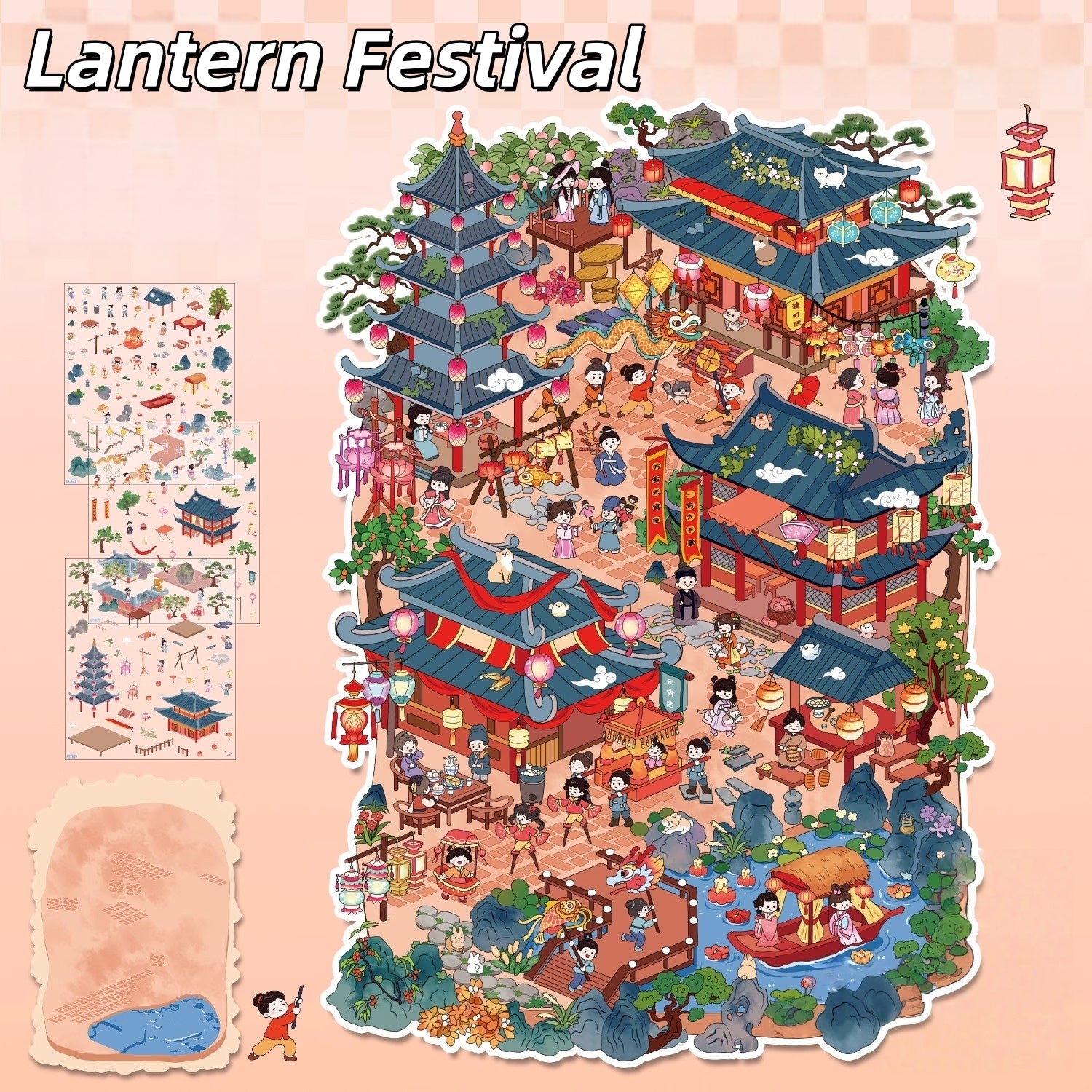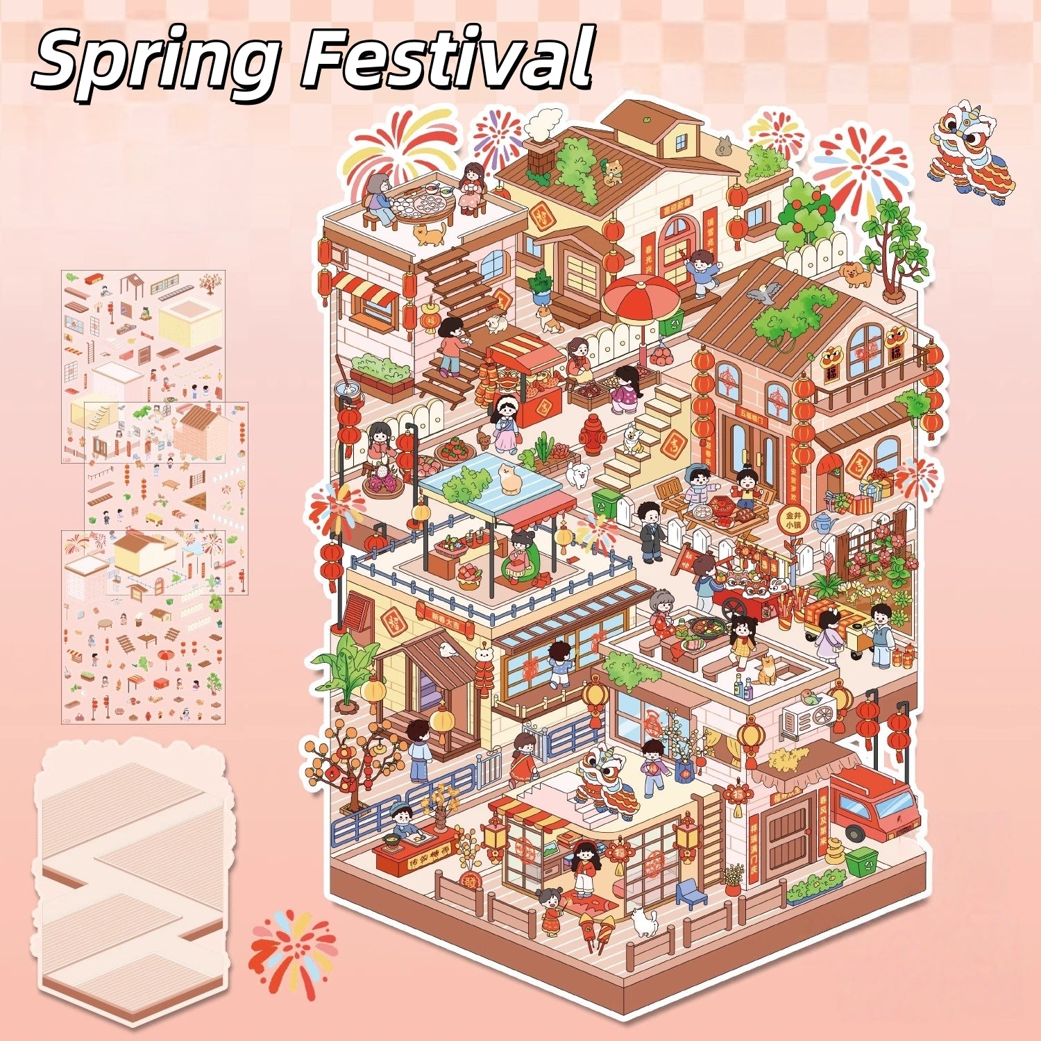 Chinese Festival 3D Sticker | 6 Cute Miniature Scenes