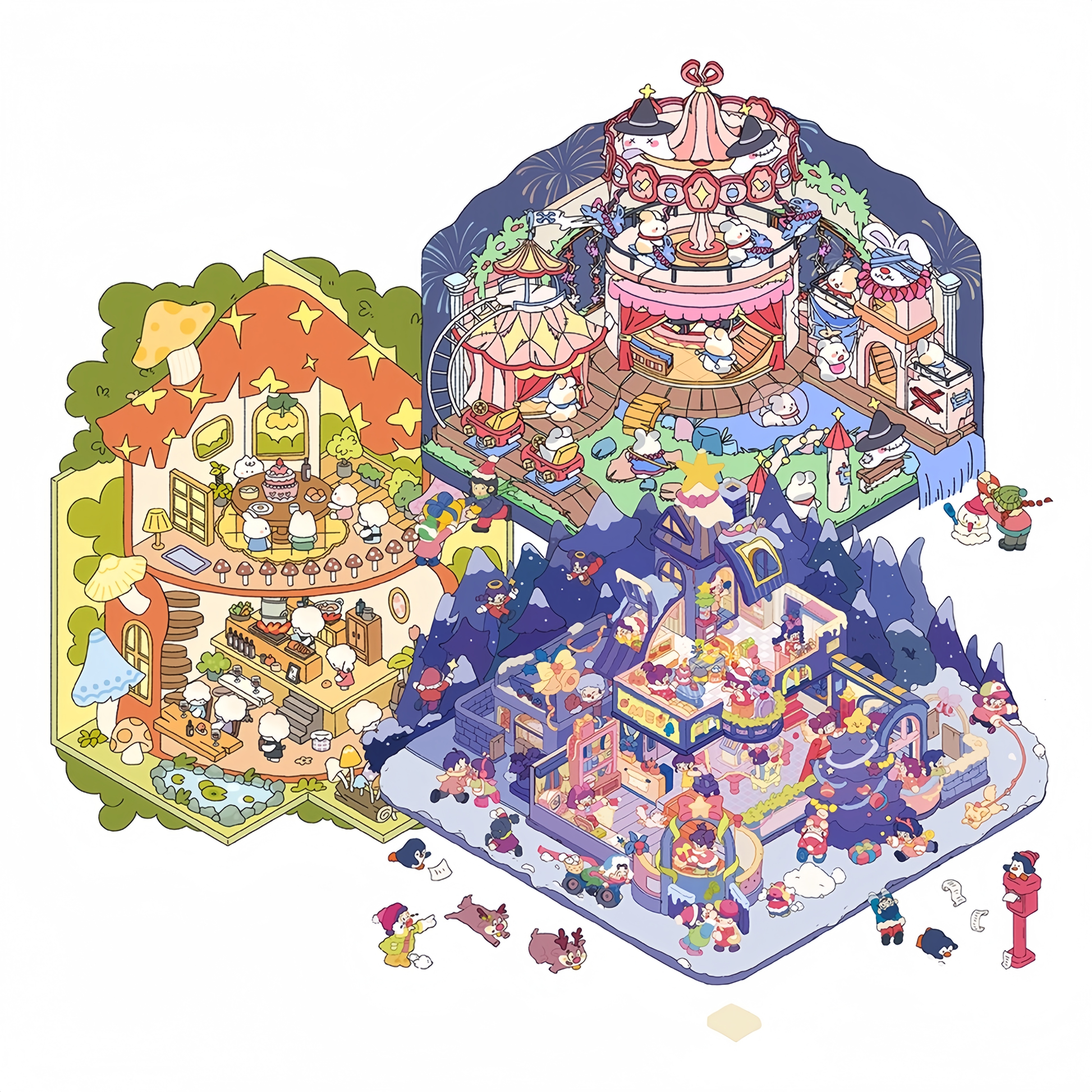 Whimsical Dreamland 3D Sticker | 3 Cute Miniature Scenes