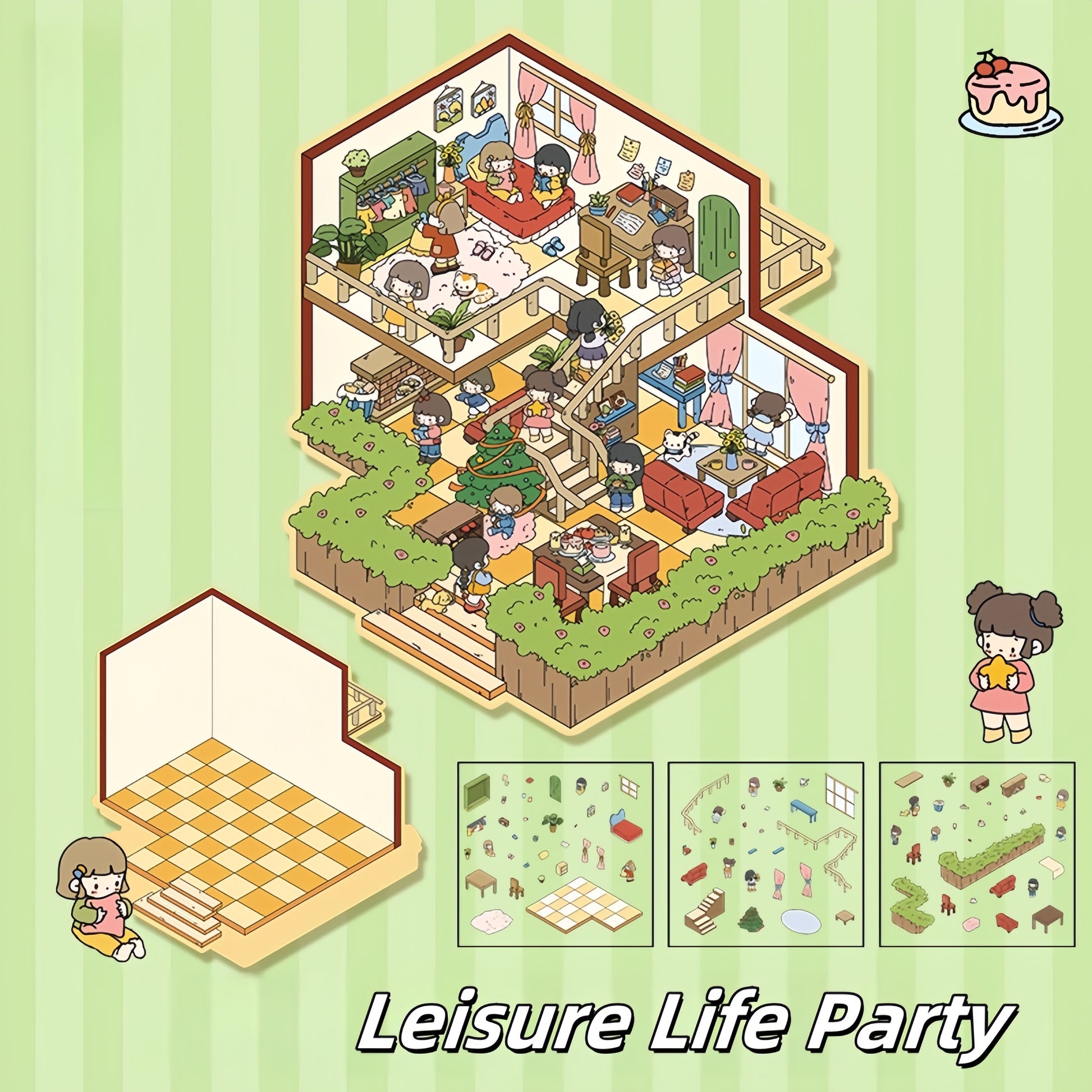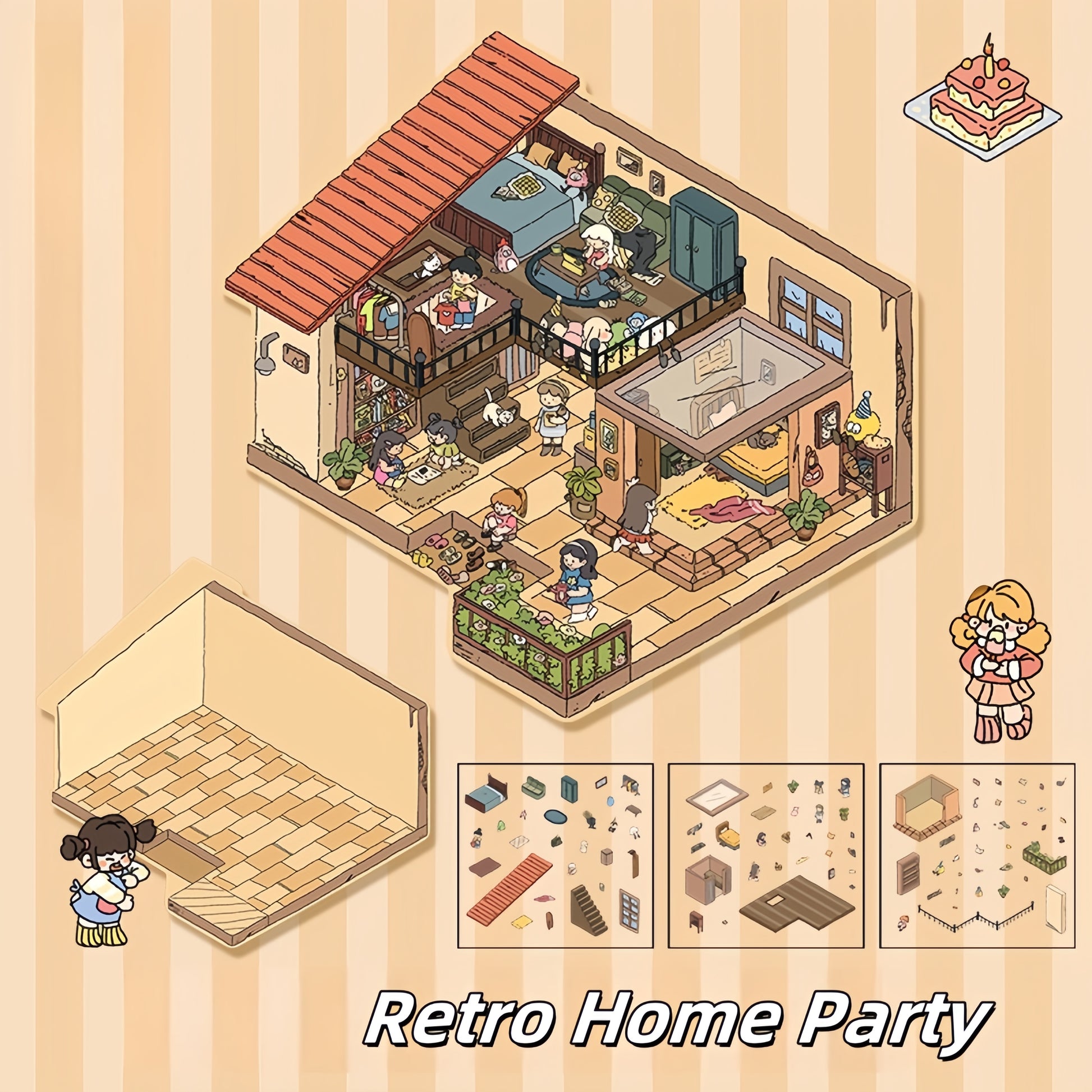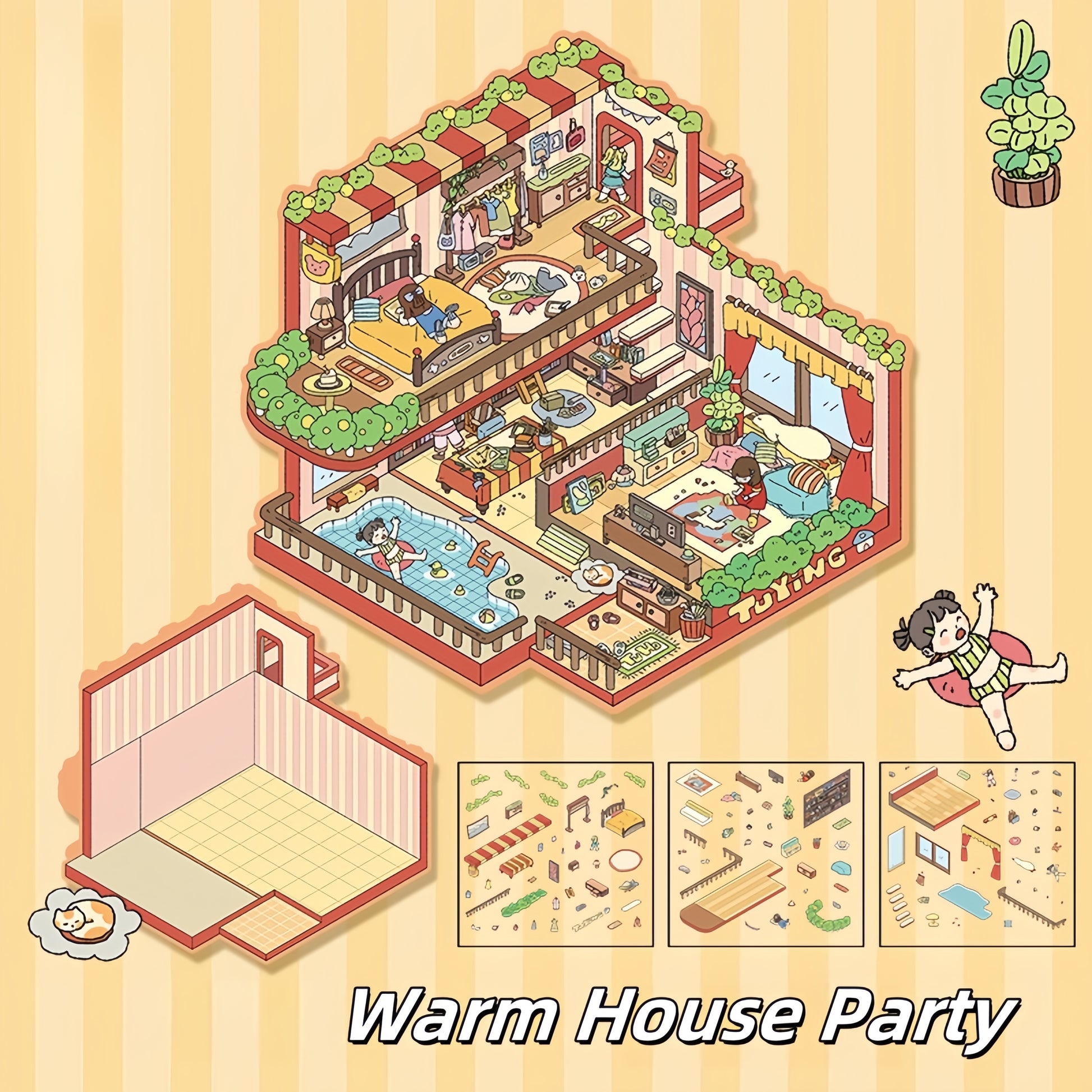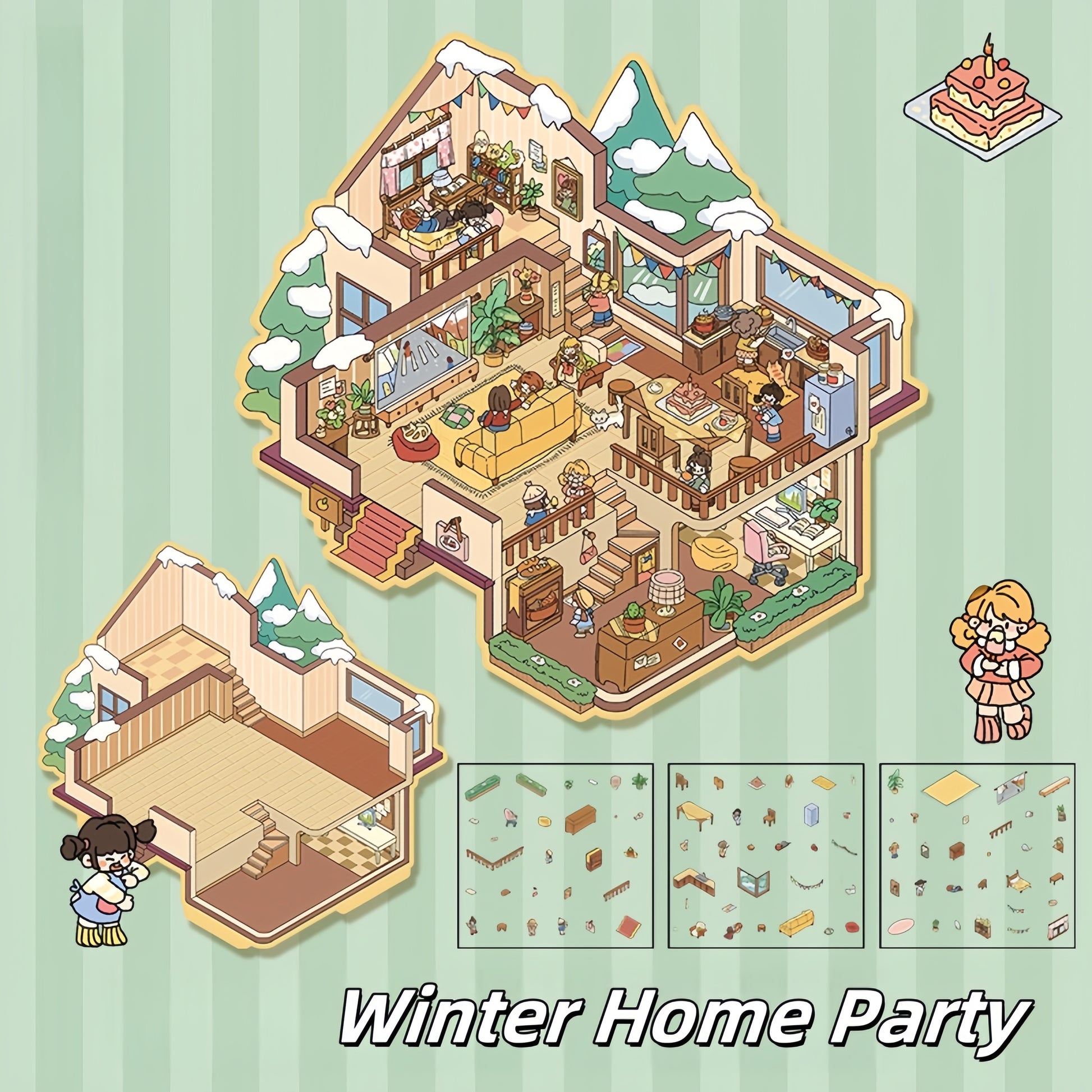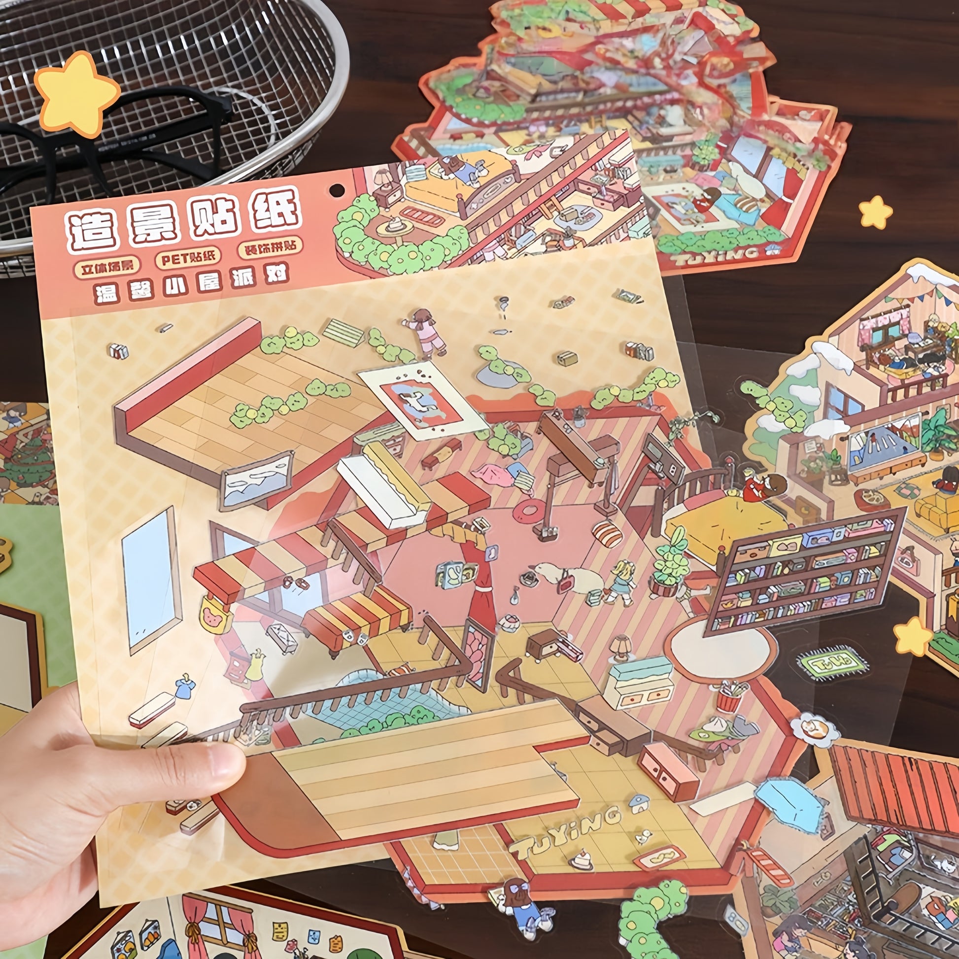 Cozy Party 3D Sticker | 4 Cute Miniature Scenes