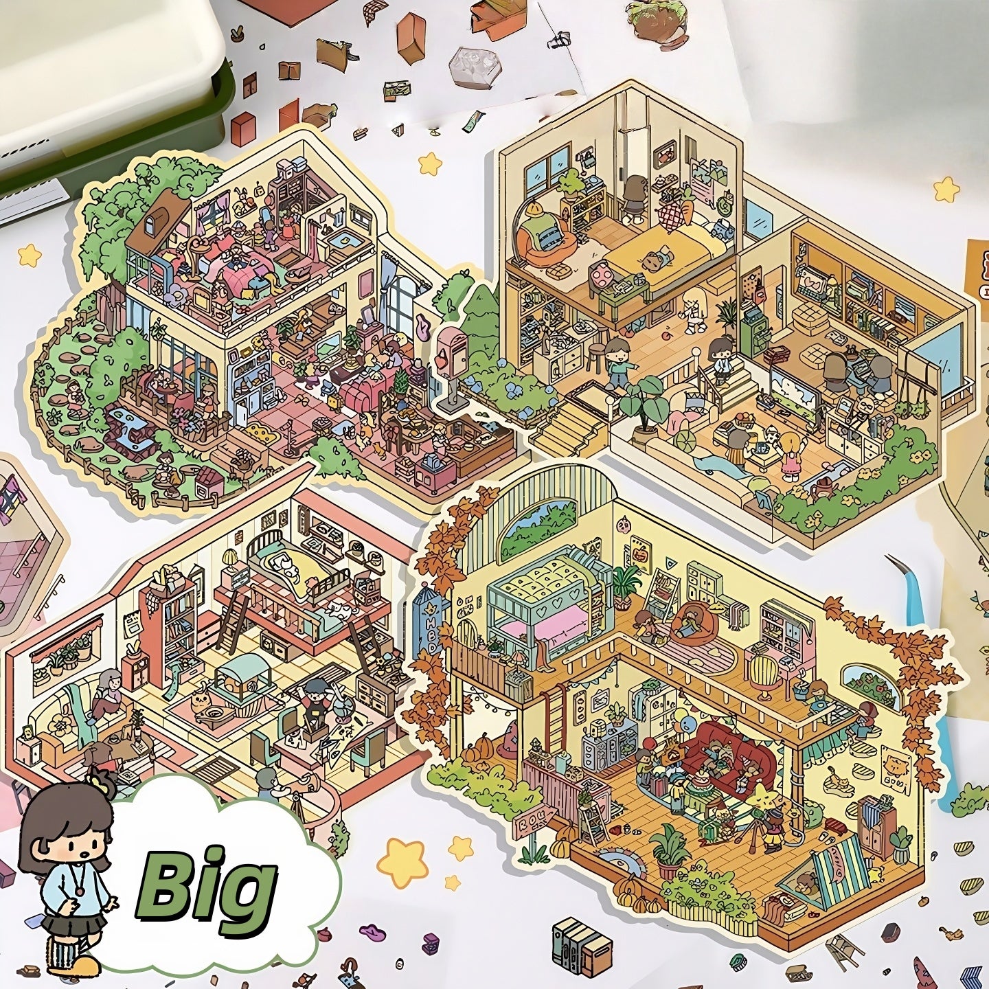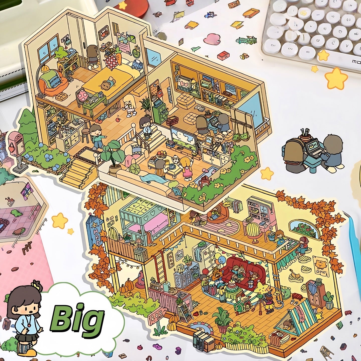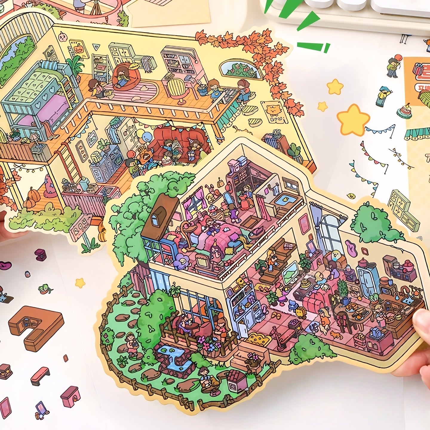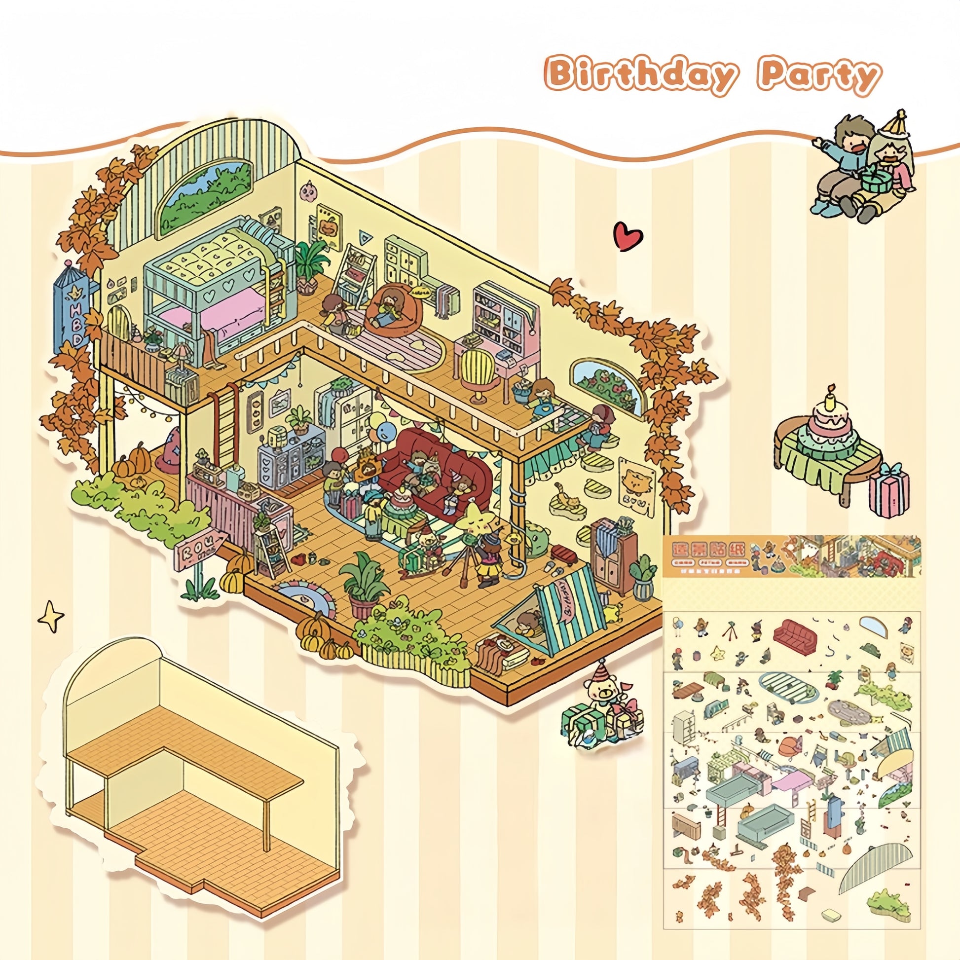 Cozy Party 3D Sticker | 4 Cute Miniature Scenes