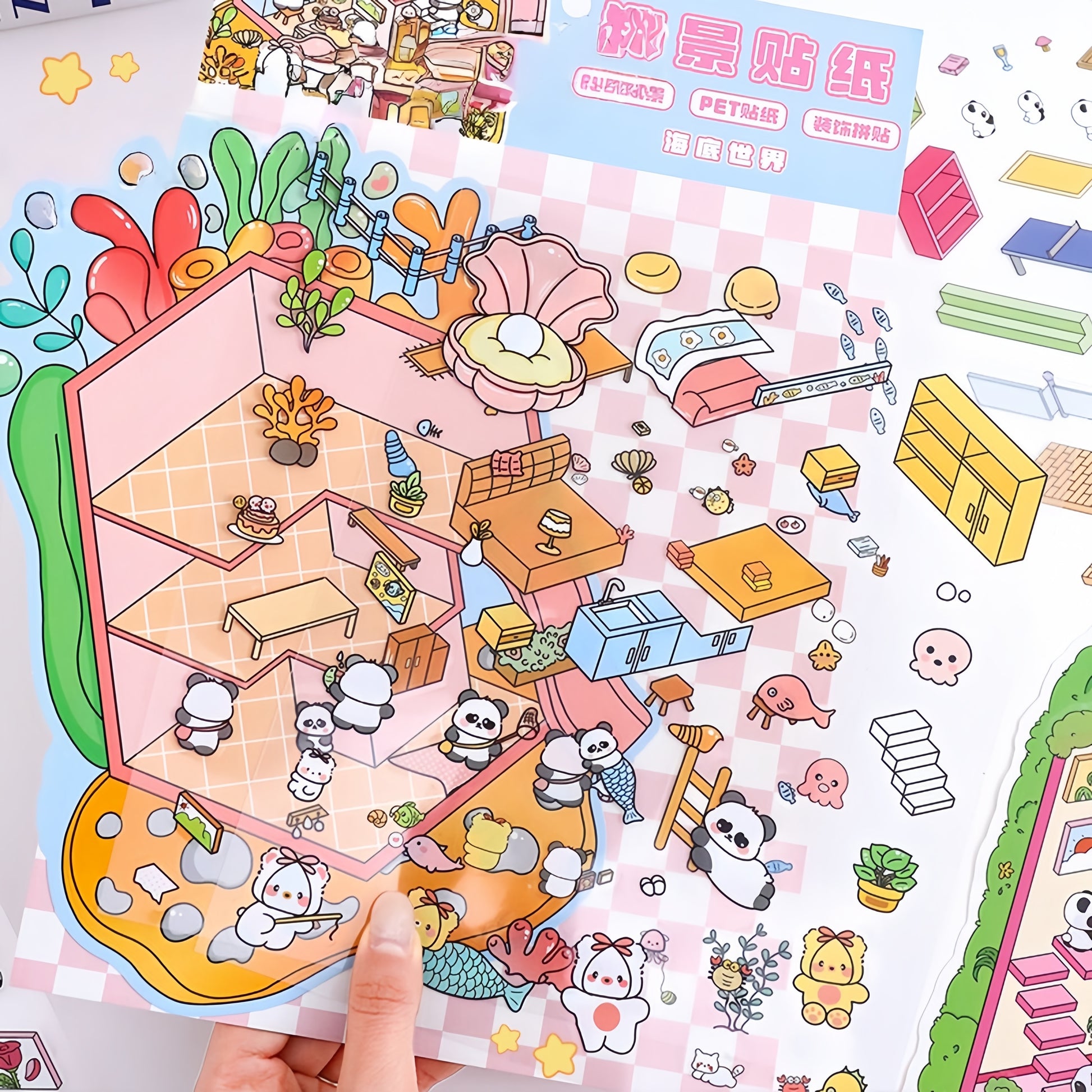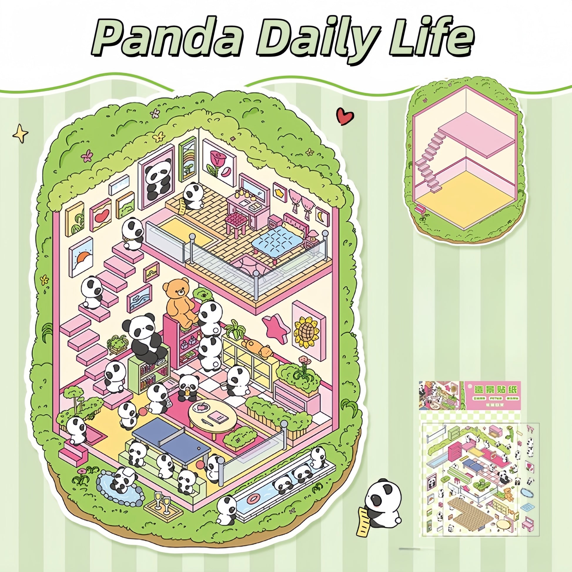 Panda’s Wonder Days 3D Sticker | 2 Cute Miniature Scenes