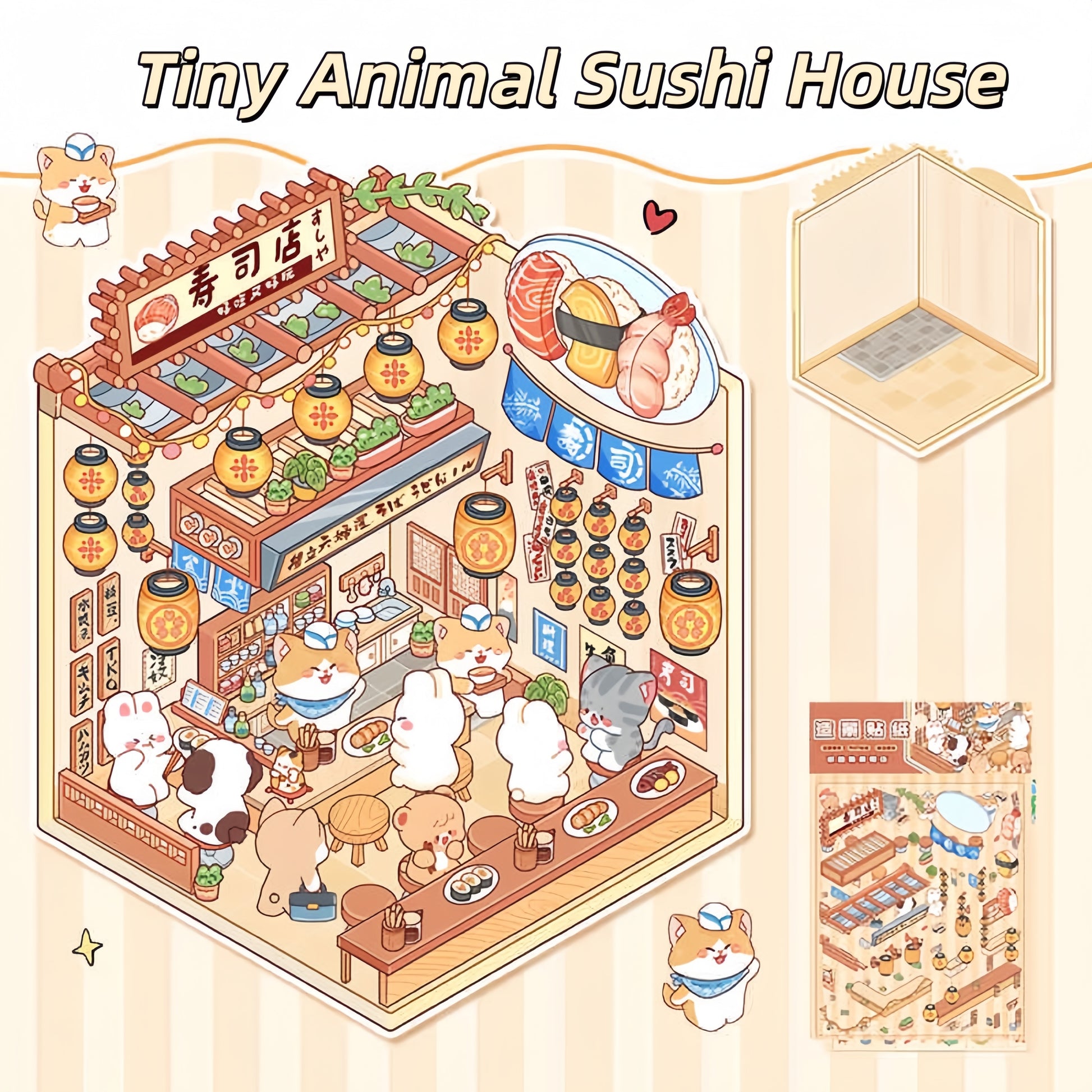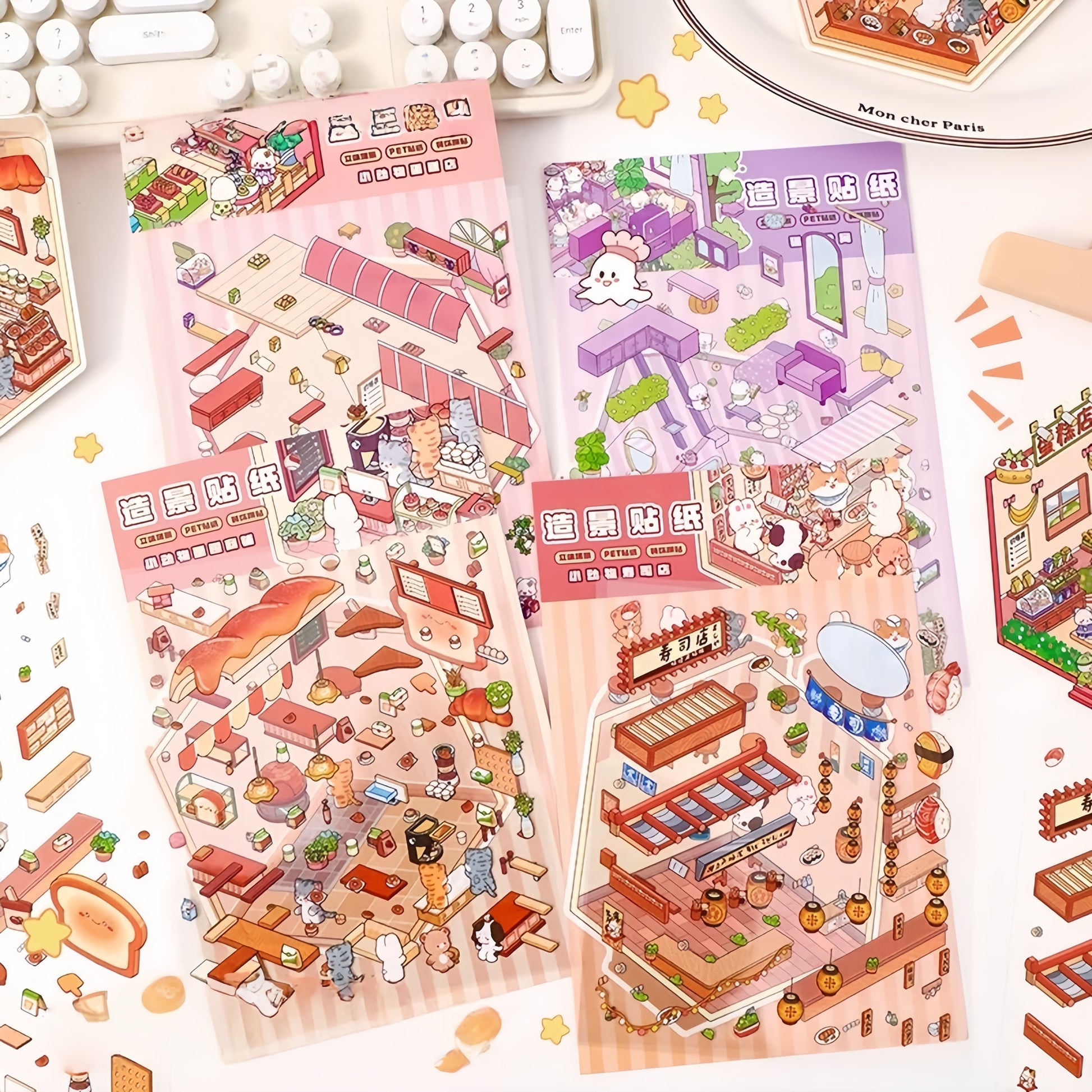 Tiny Animal Wonders 3D Sticker | 4 Cute Miniature Scenes