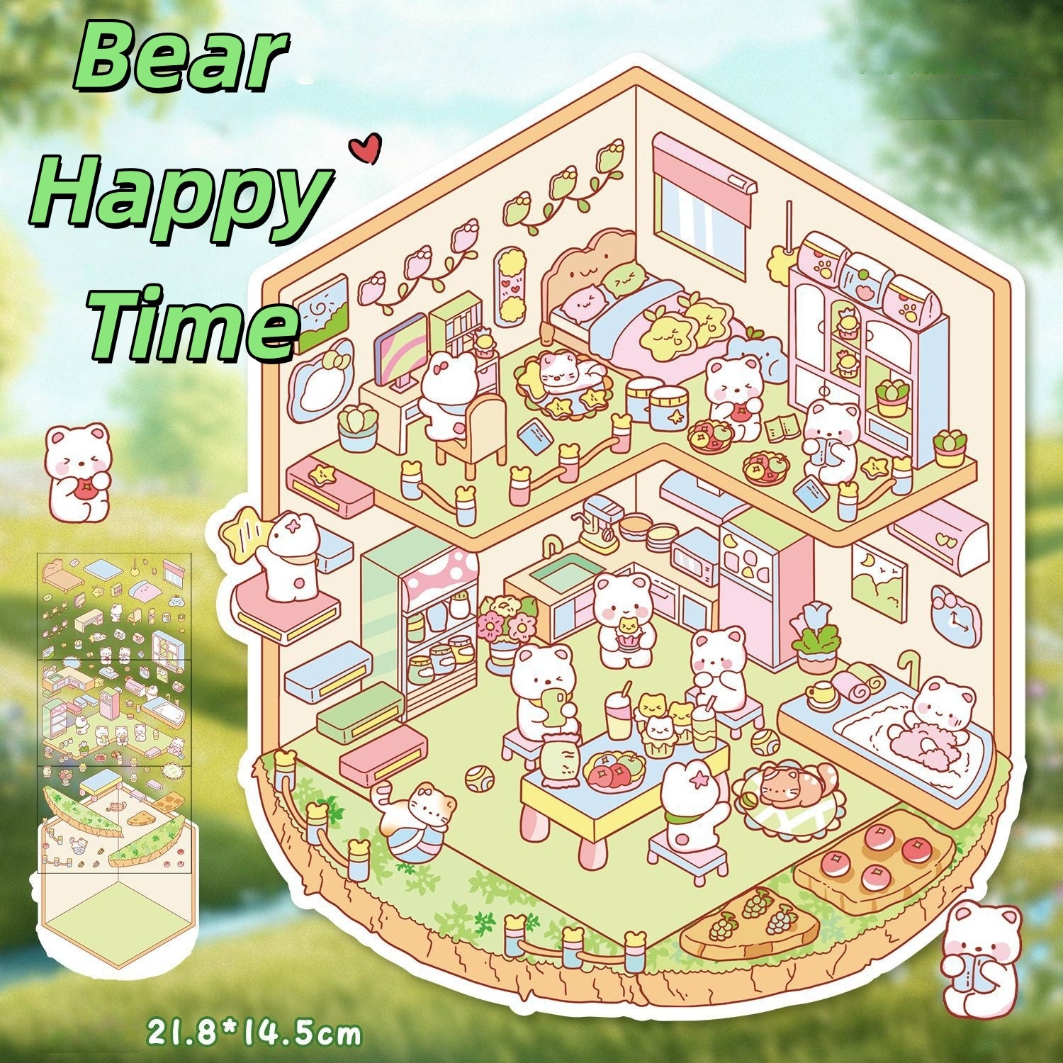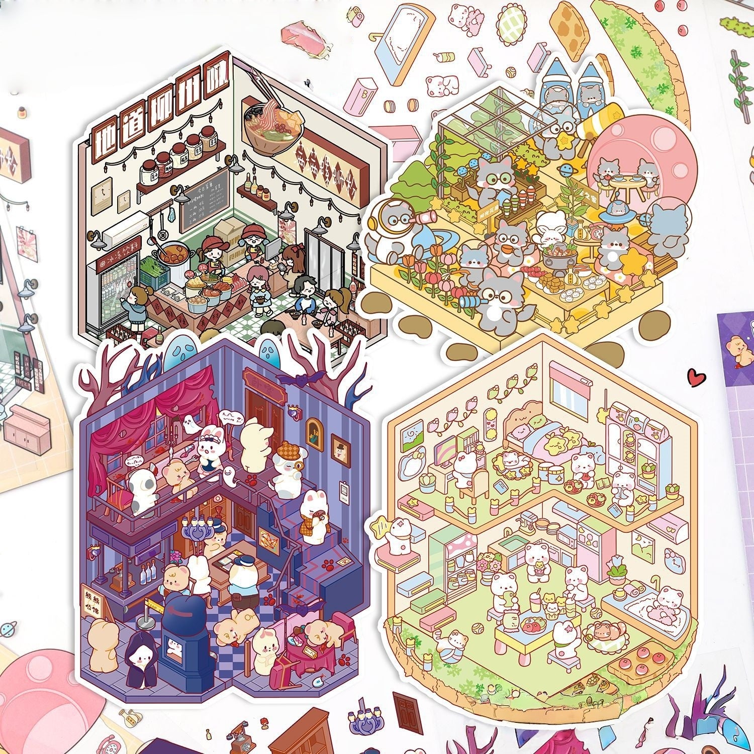 Cute Cartoon 3D Sticker | 4 Cute Miniature Scenes