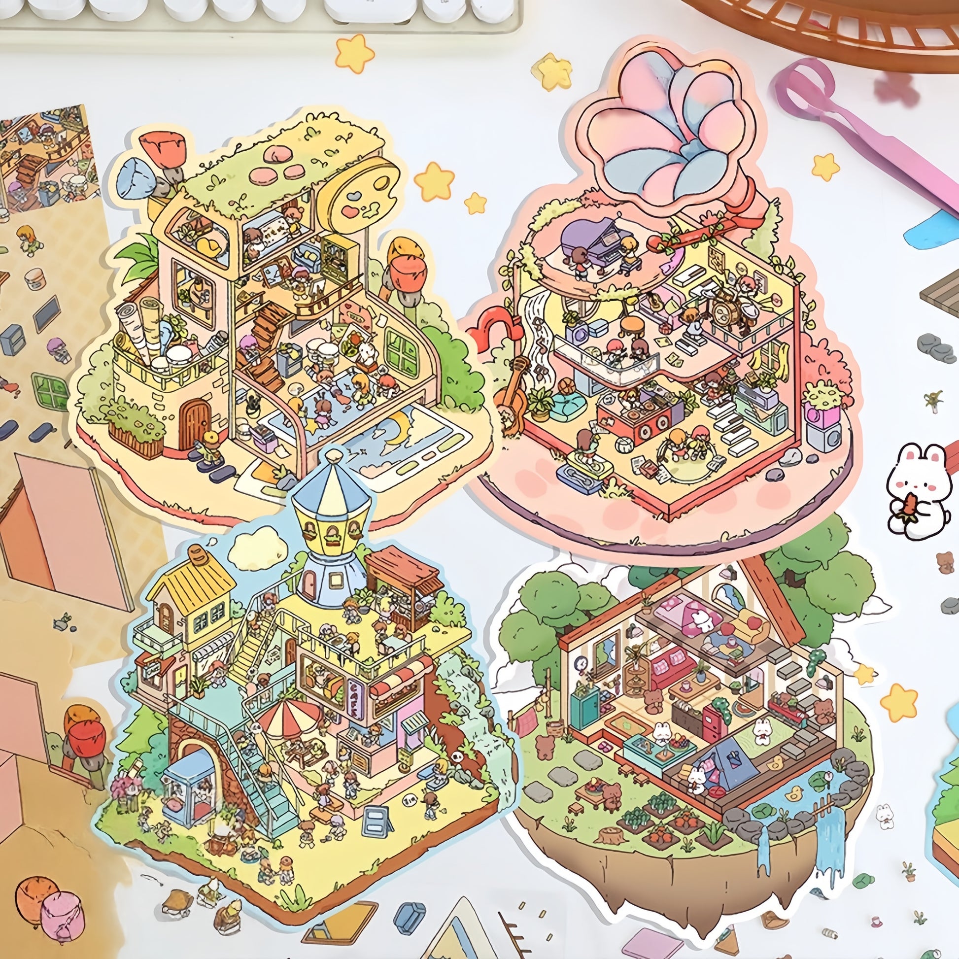 Cozy Little Scenes 3D Sticker | 4 Cute Miniature Scenes