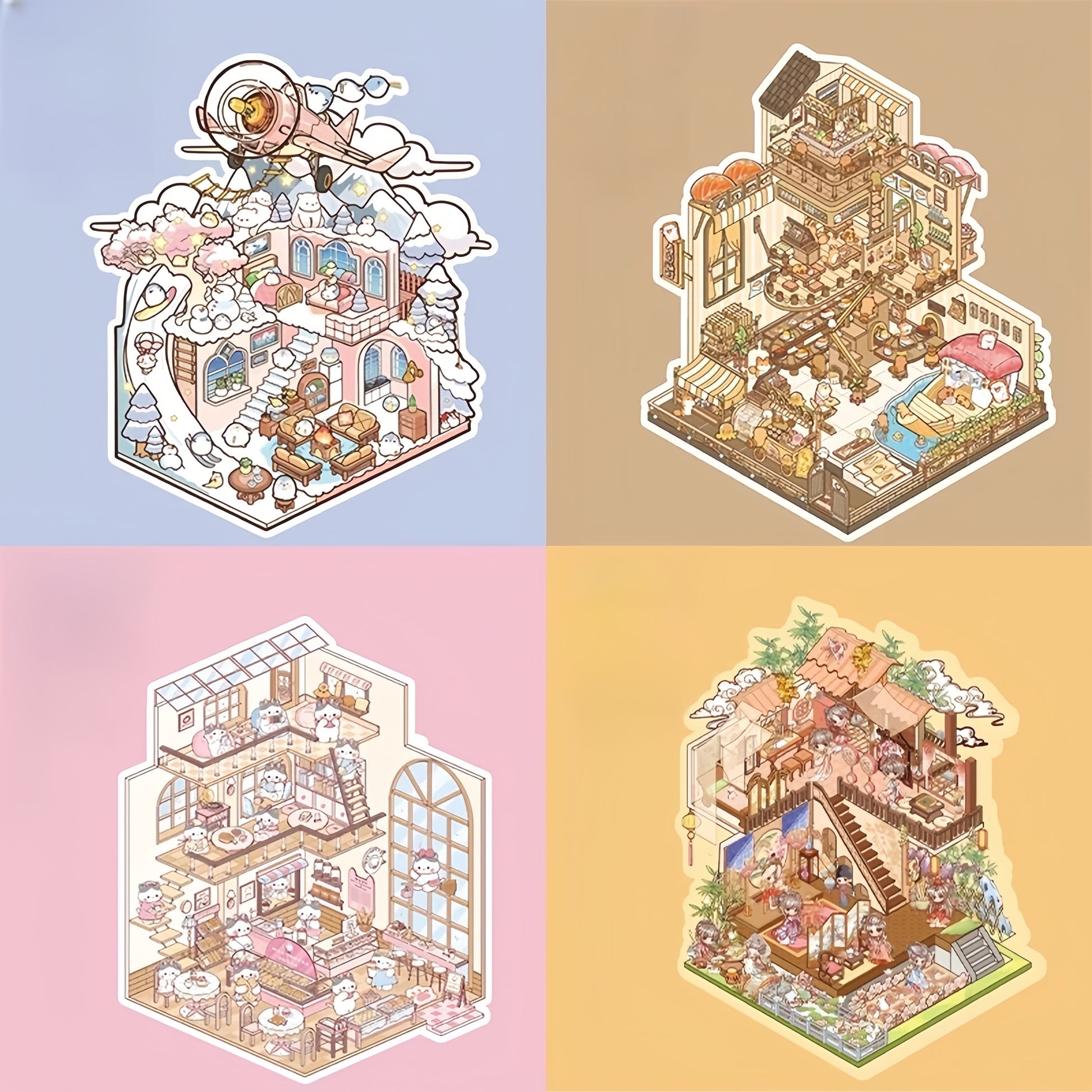 Little Wonder Rooms 3D Sticker Scenes | 4 Cute Miniature Scenes