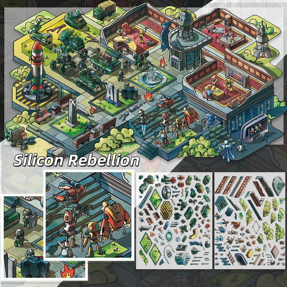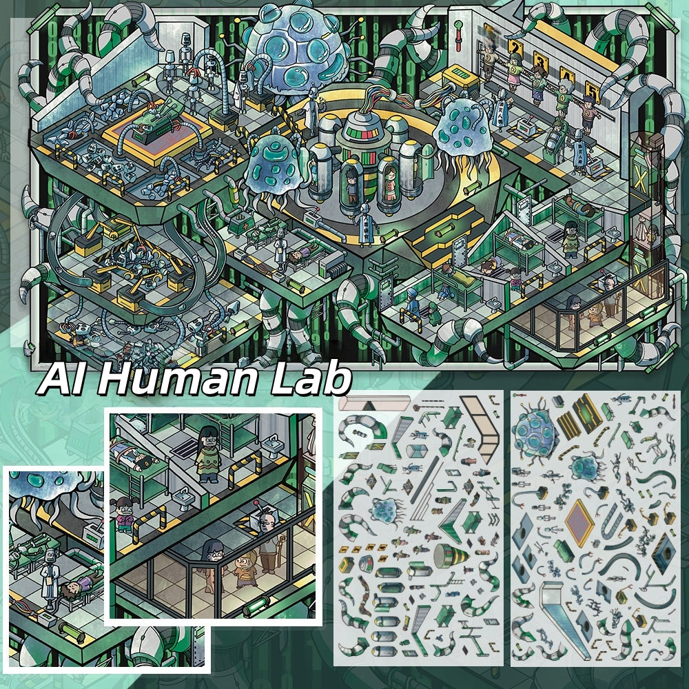 Cyberpunk Horror Adventure 3D Sticker | 4 Cute Miniature Scenes