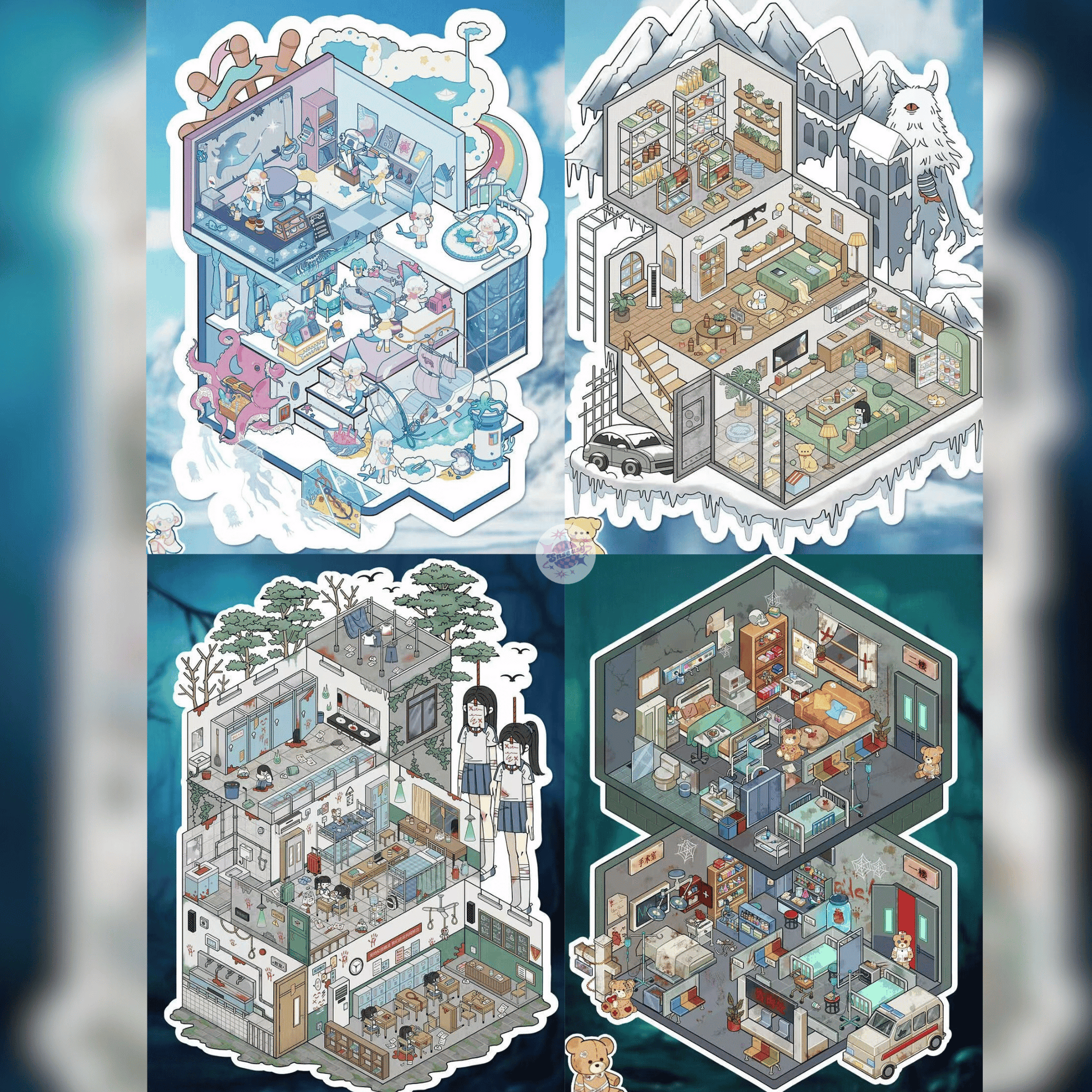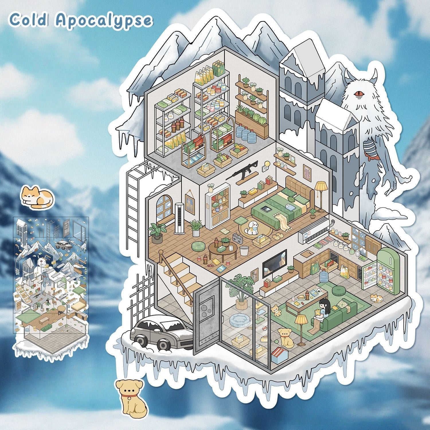 Doomsday Adventure 3D Sticker | 4 Cute Miniature Scenes