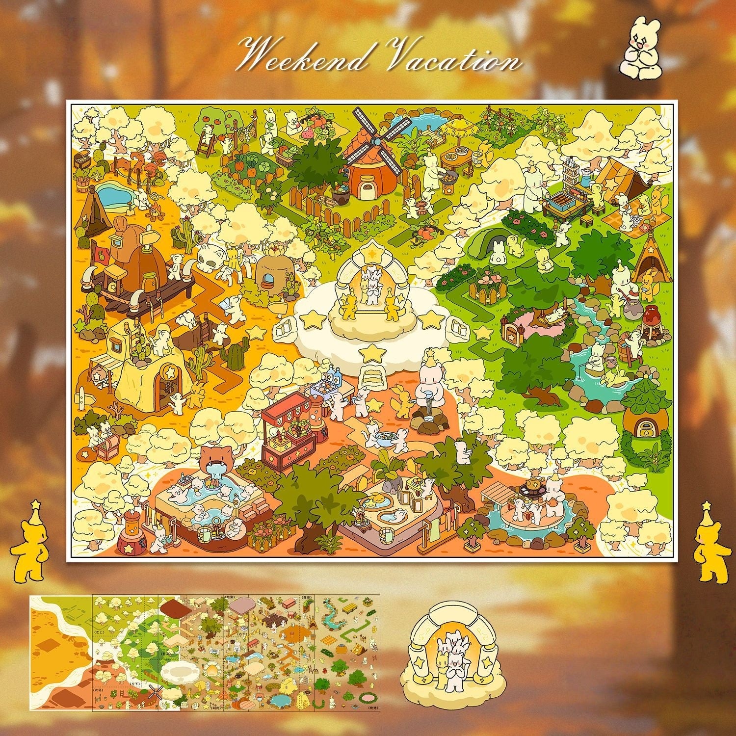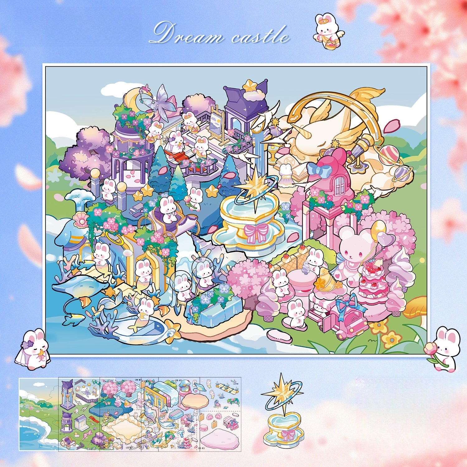 Bunny’s Dreamy Village 3D Sticker | 2 Cute Miniature Scenes