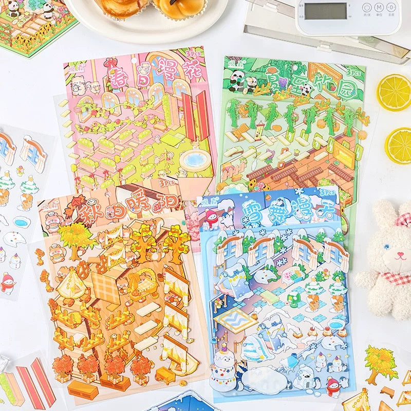 Fantasy Seasons 3D Sticker | 4 Cute Miniature Scenes