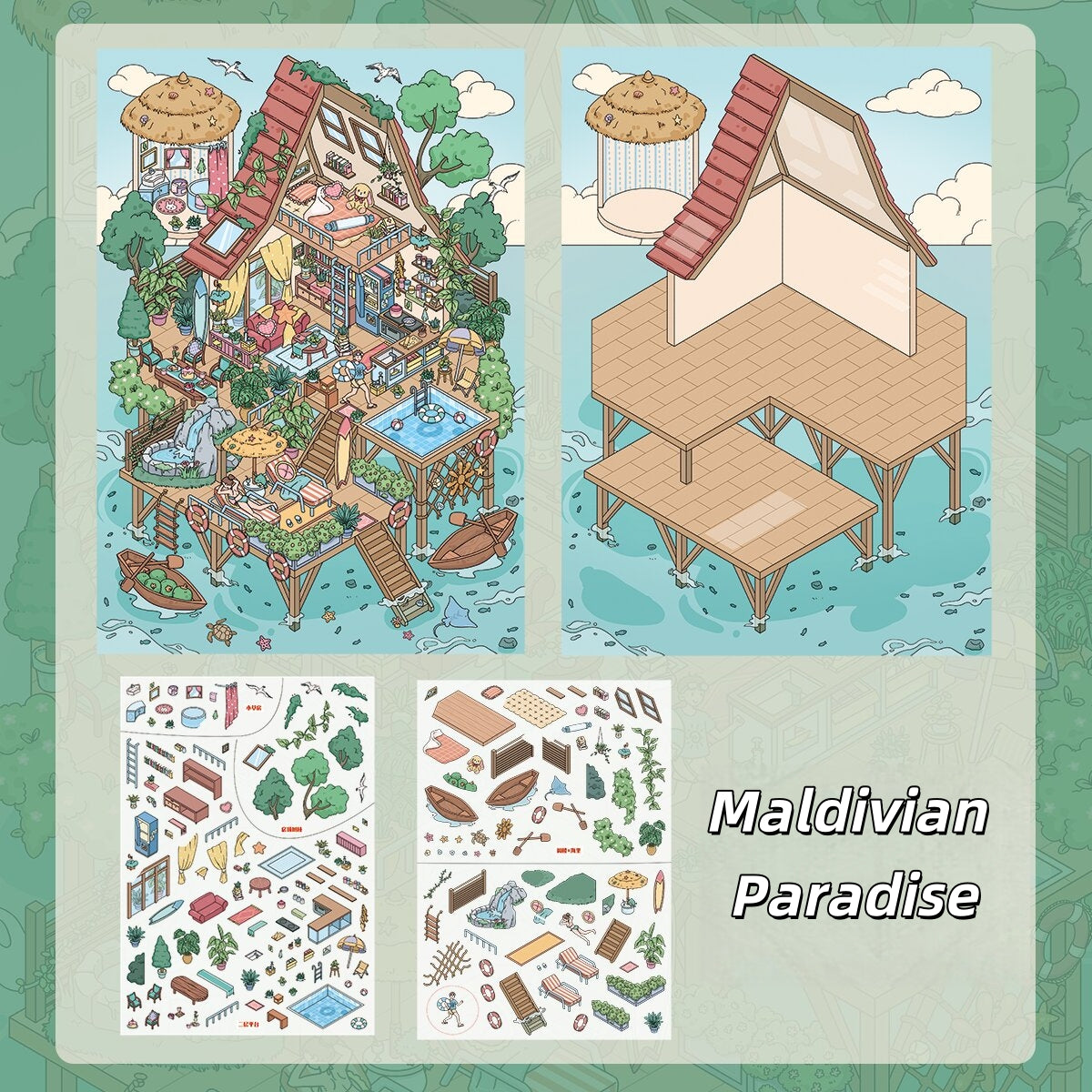 Dream House 3D Sticker | 4 Cute Miniature Scenes