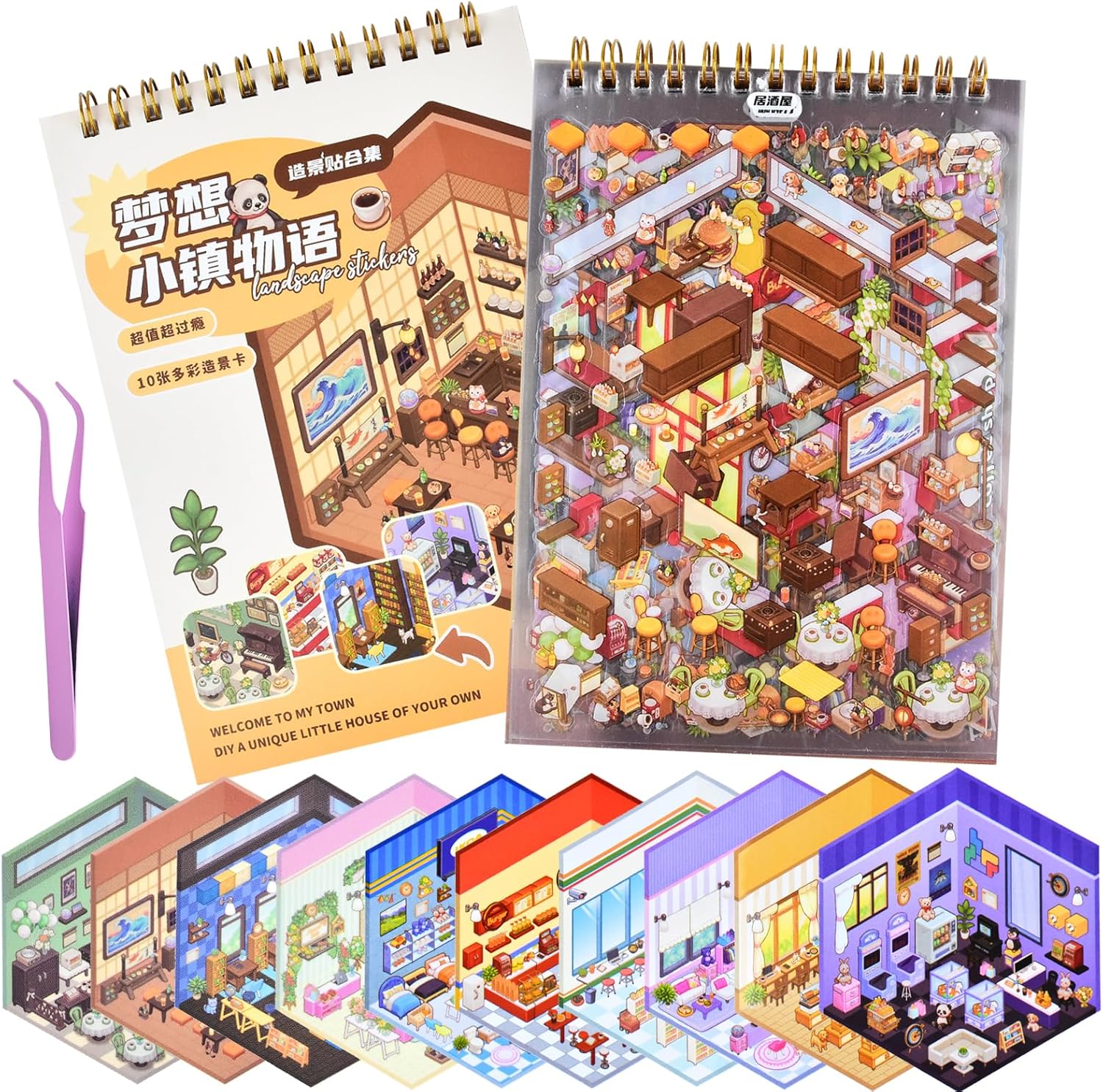 Dream Town 3D Sticker Material Book – 10 Unique Themes