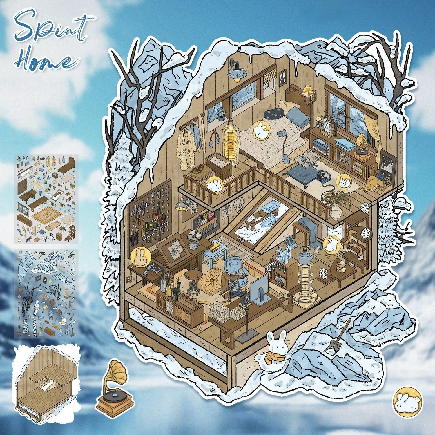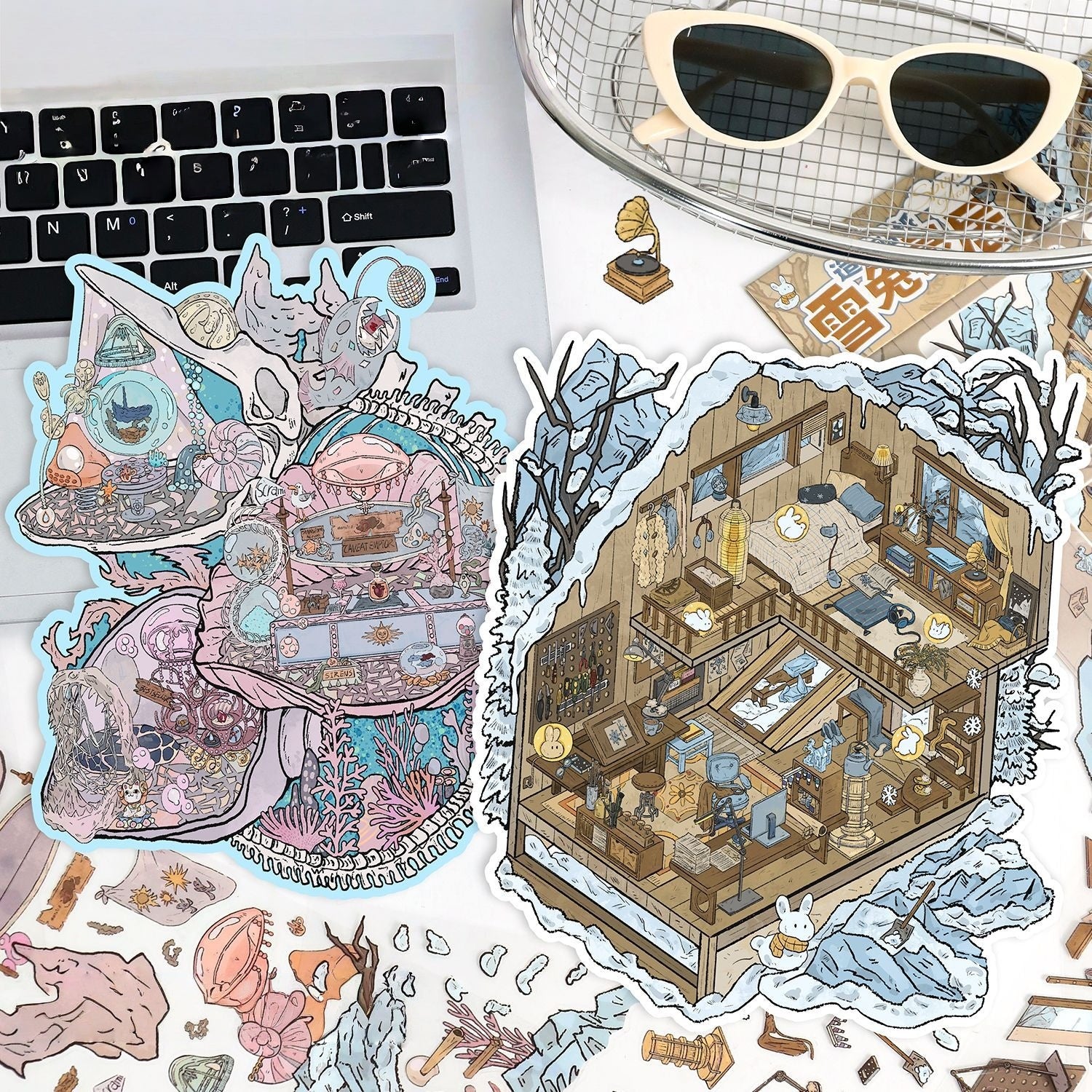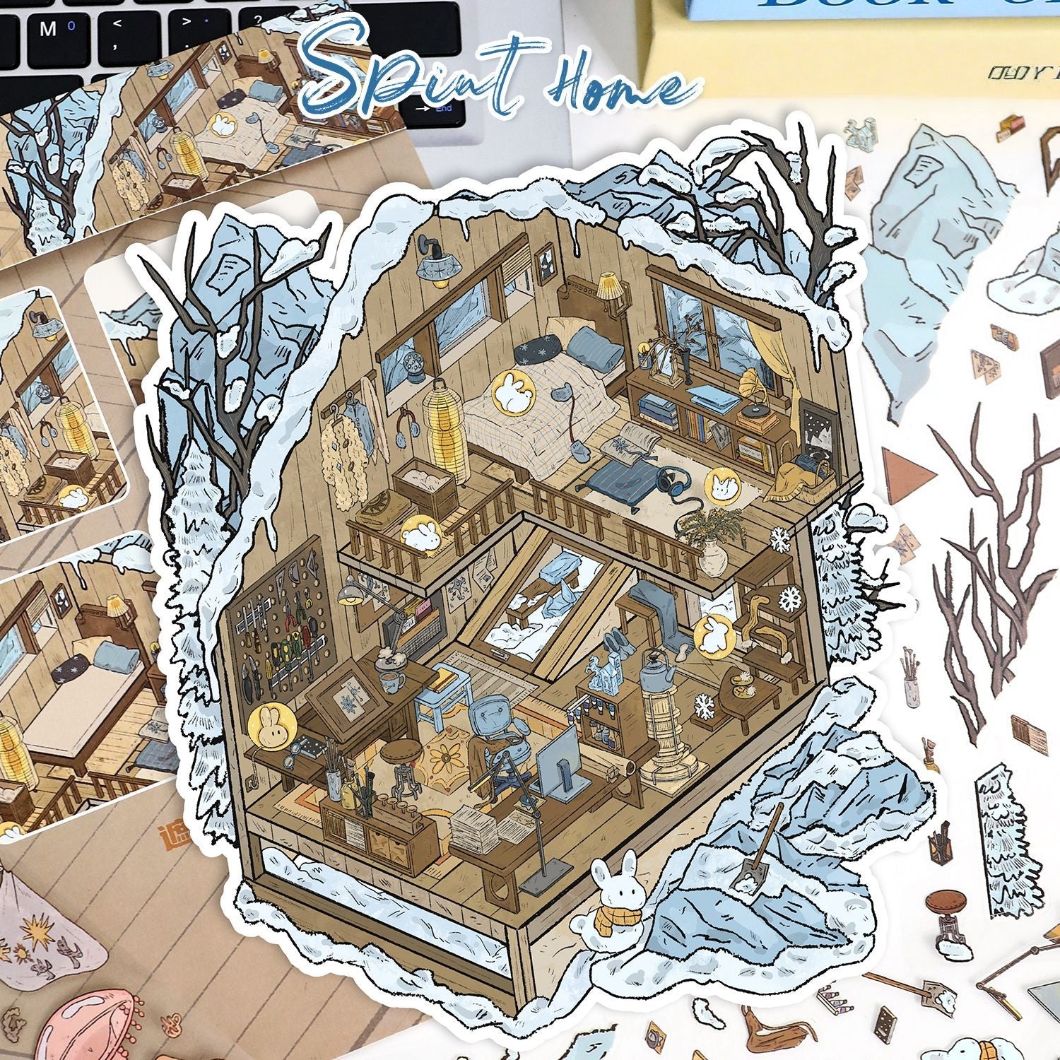 Dreamy Critter Cottage 3D Sticker | 2 Cute Miniature Scenes