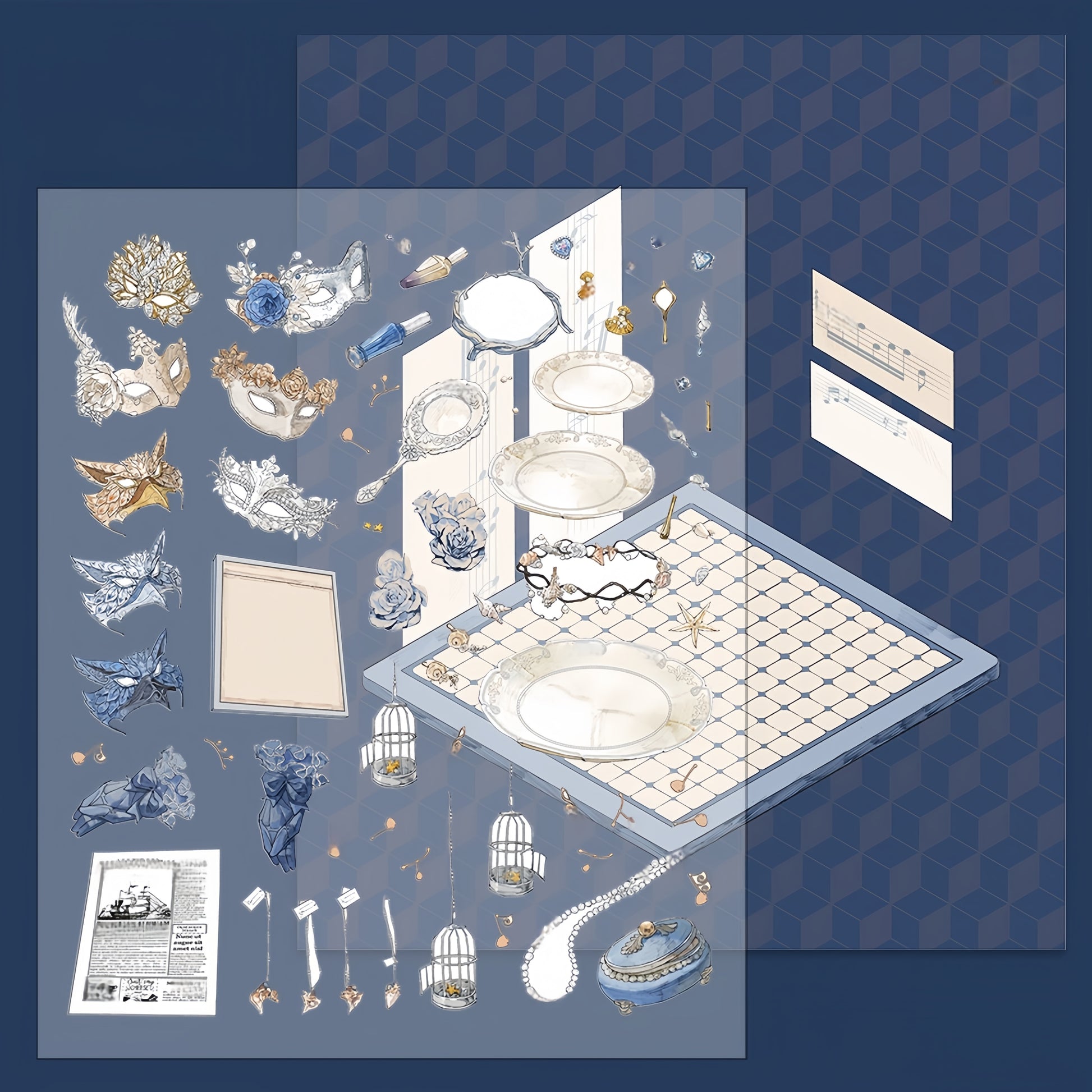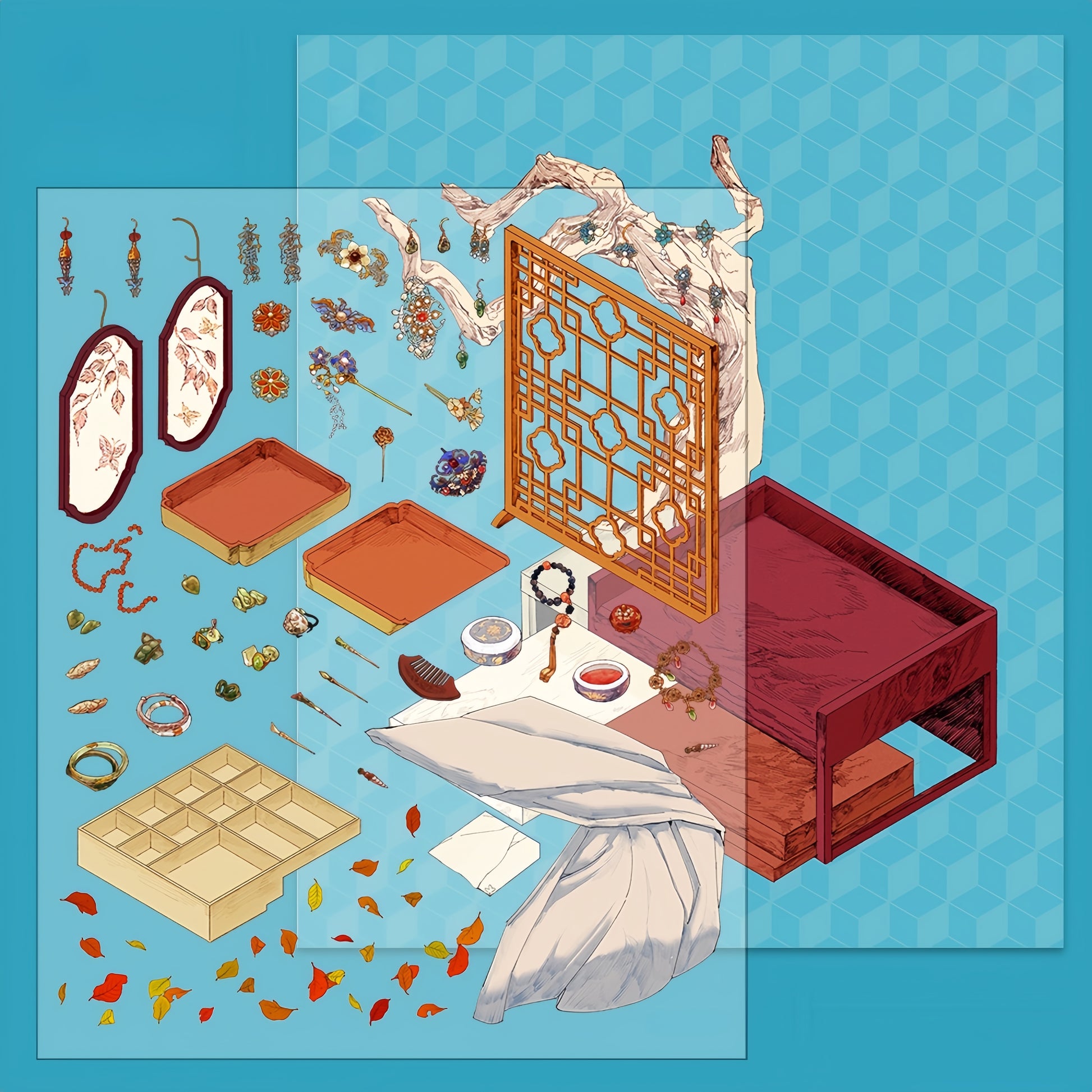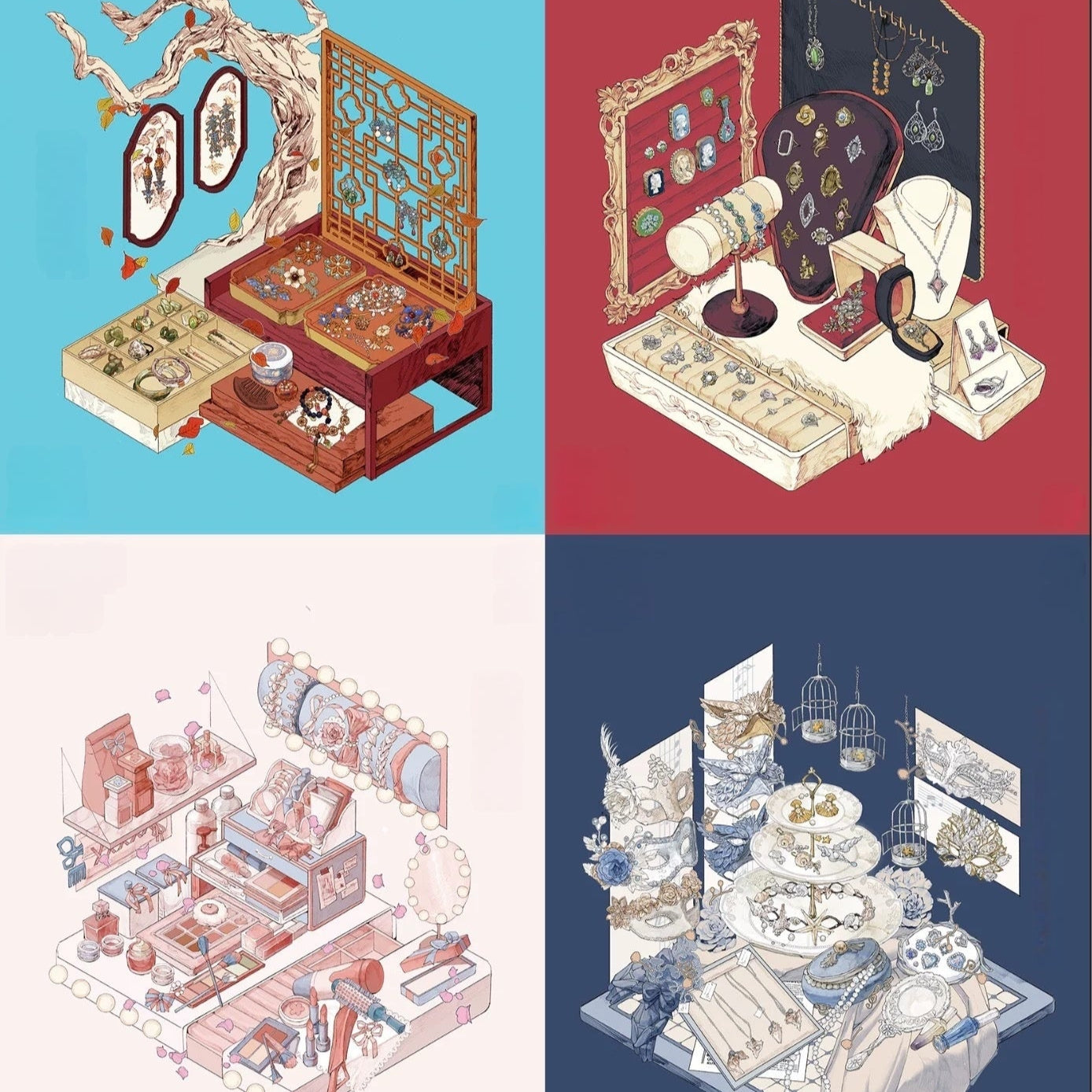 Oriental Vanity 3D Sticker | 4 Cute Scenes