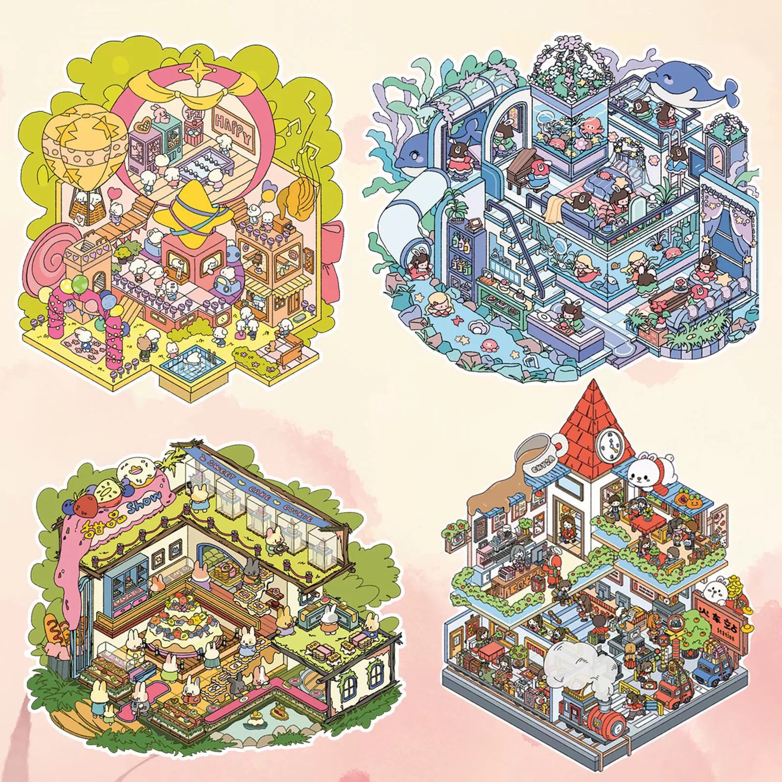 Fairy Tale Town 3D Sticker | 4 Cute Miniature Sticker
