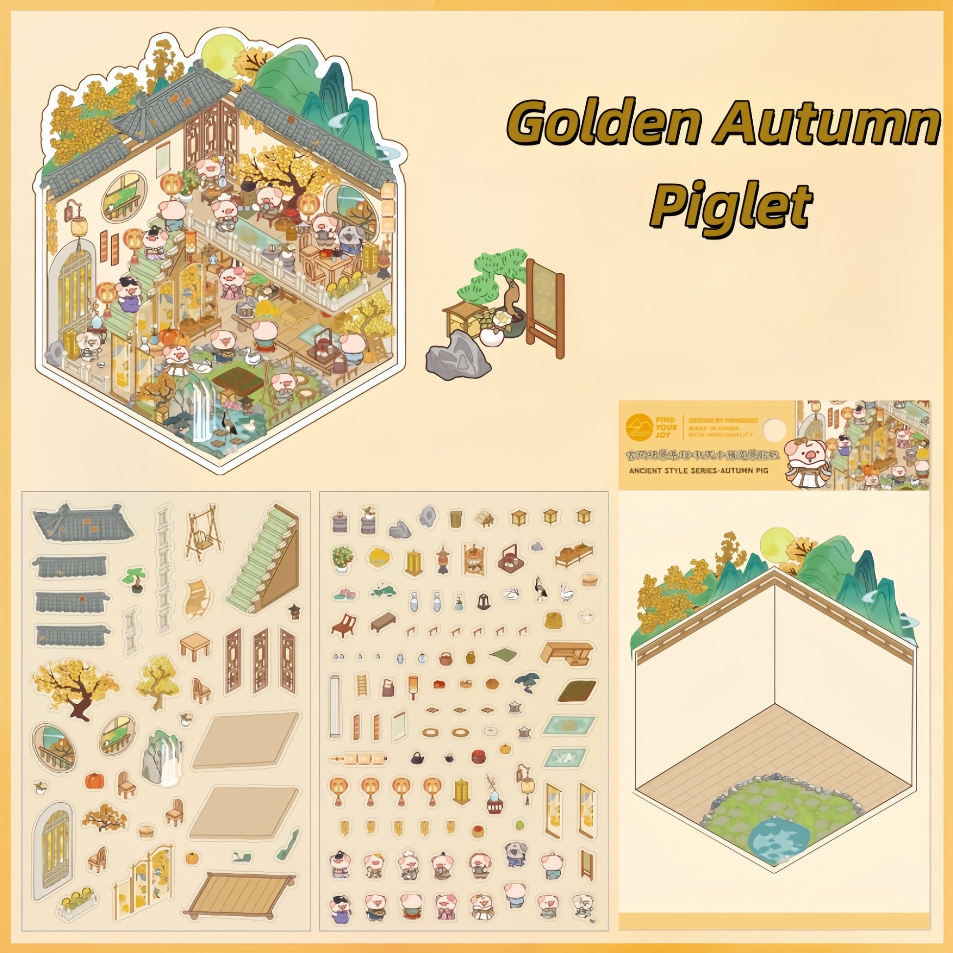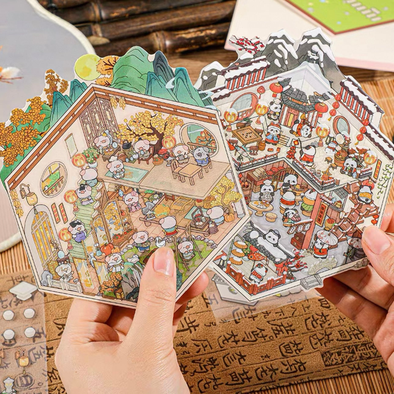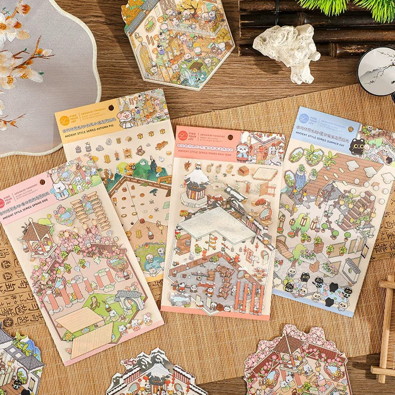 Ancient Seasons Tale 3D Sticker | 4 Cute Miniature Scenes