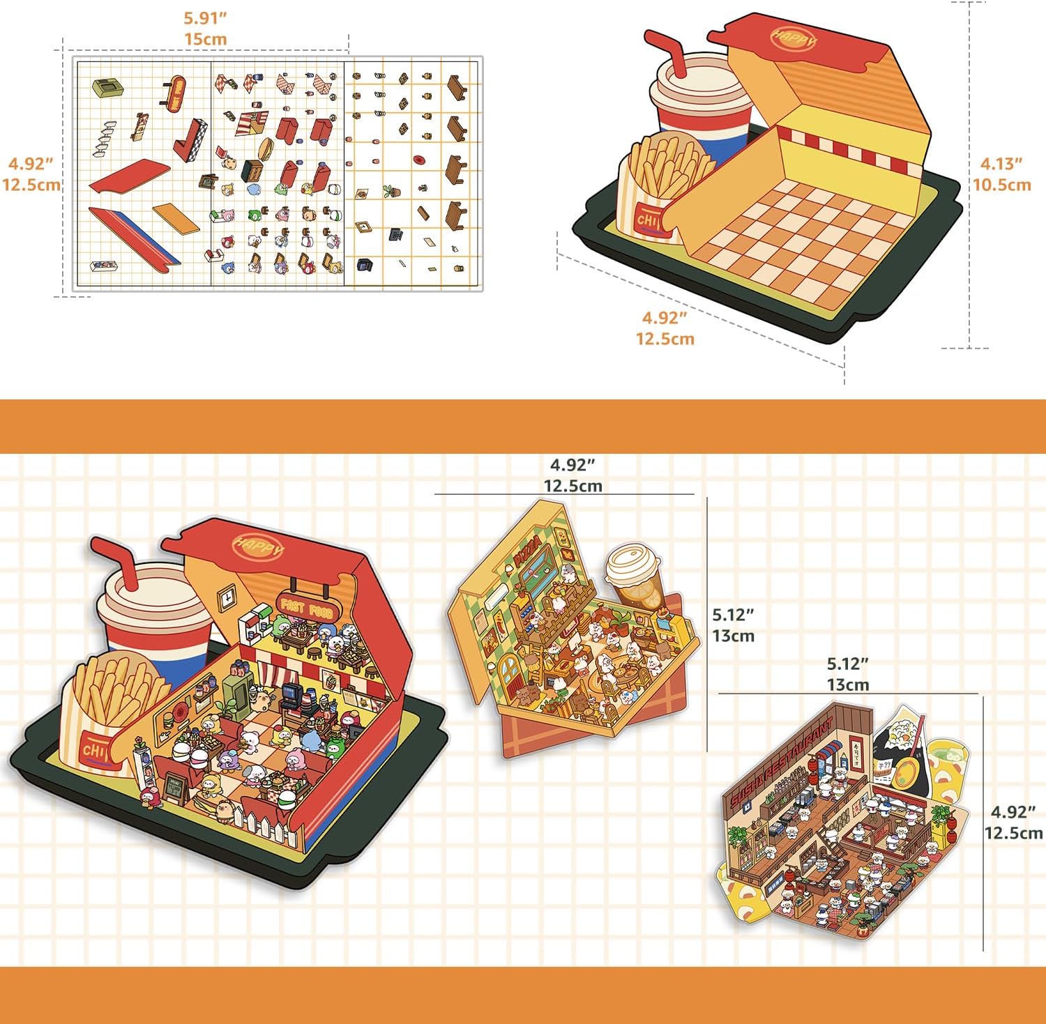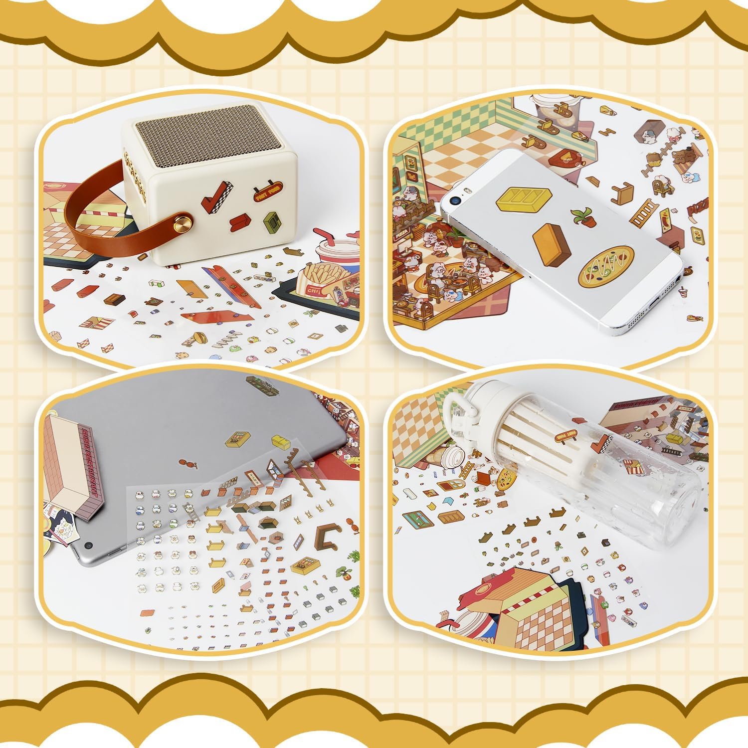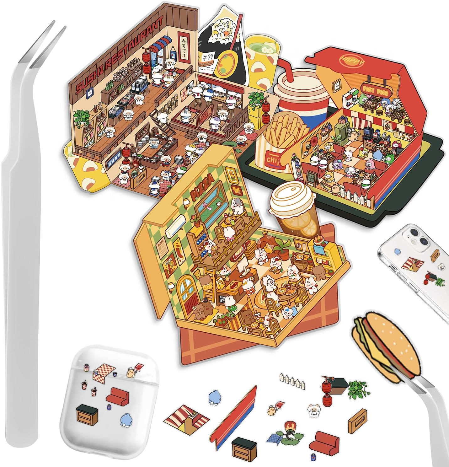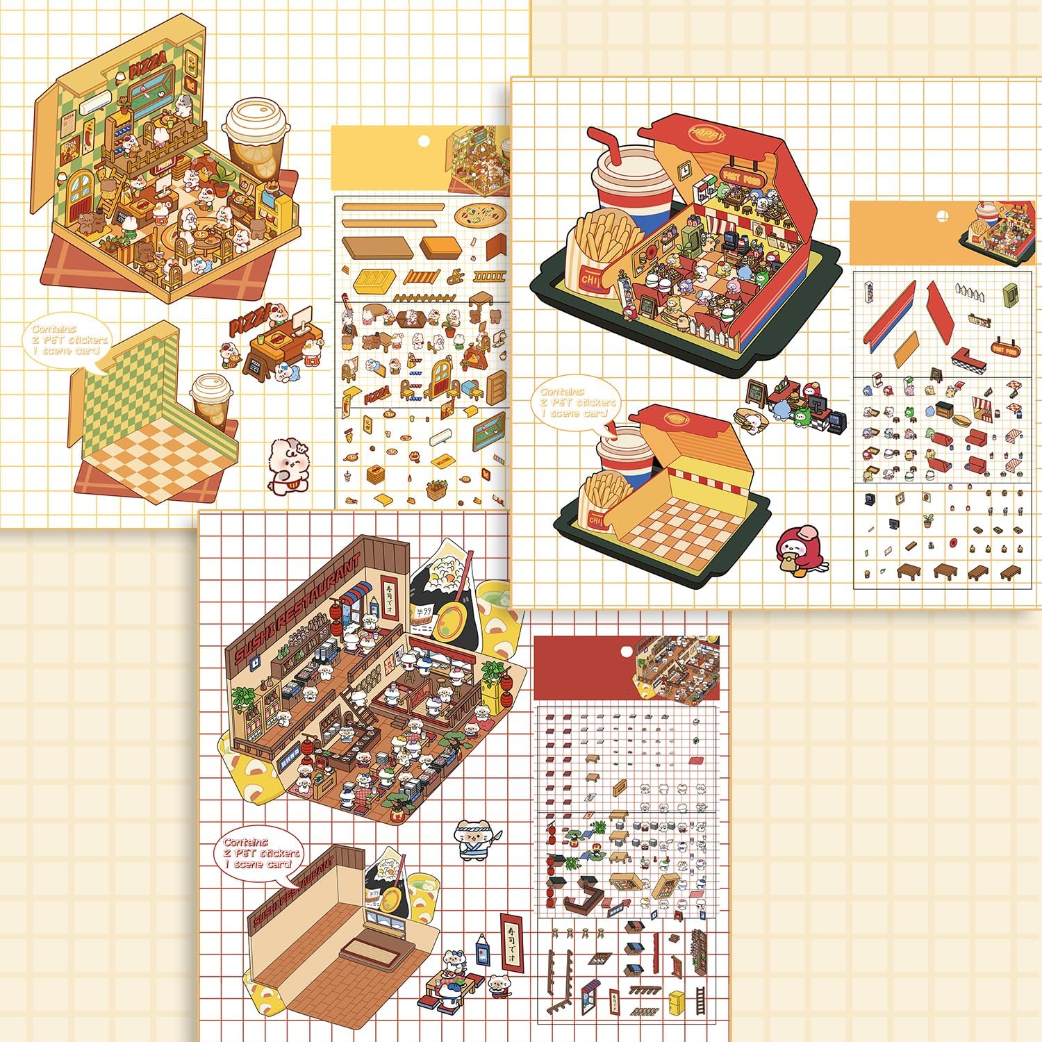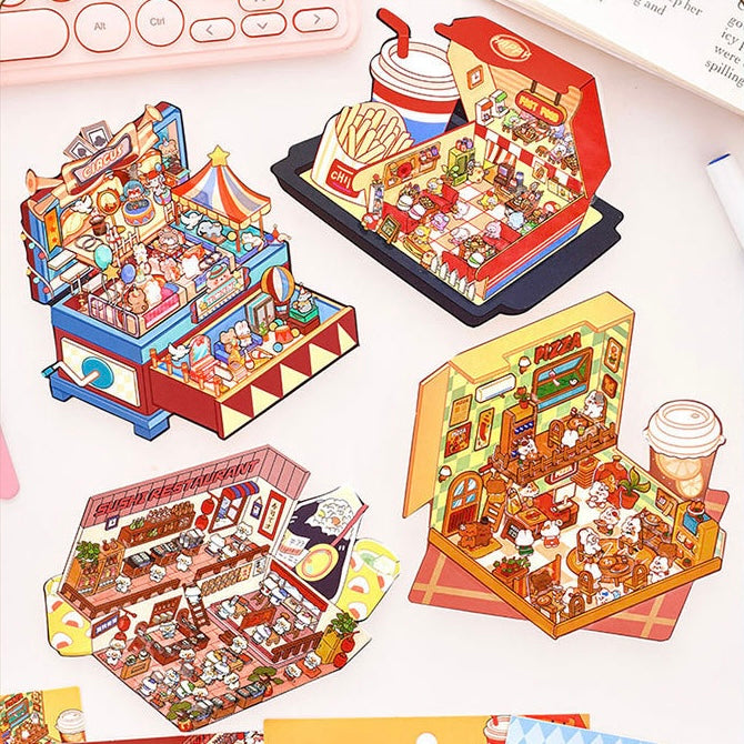 Foodie Funland 3D Sticker | 4 Cute Miniature Scenes