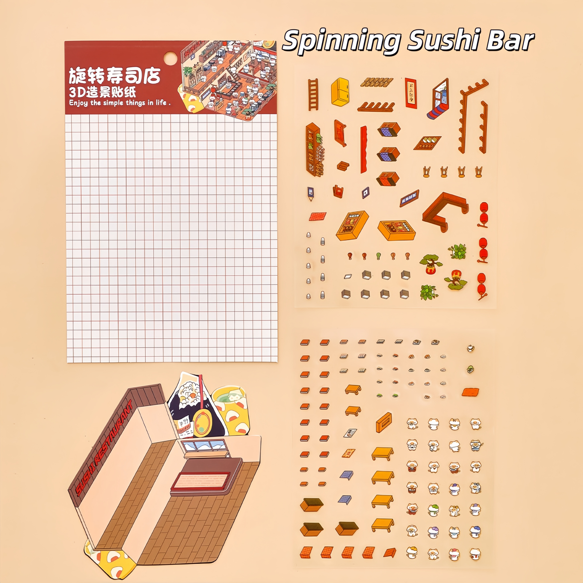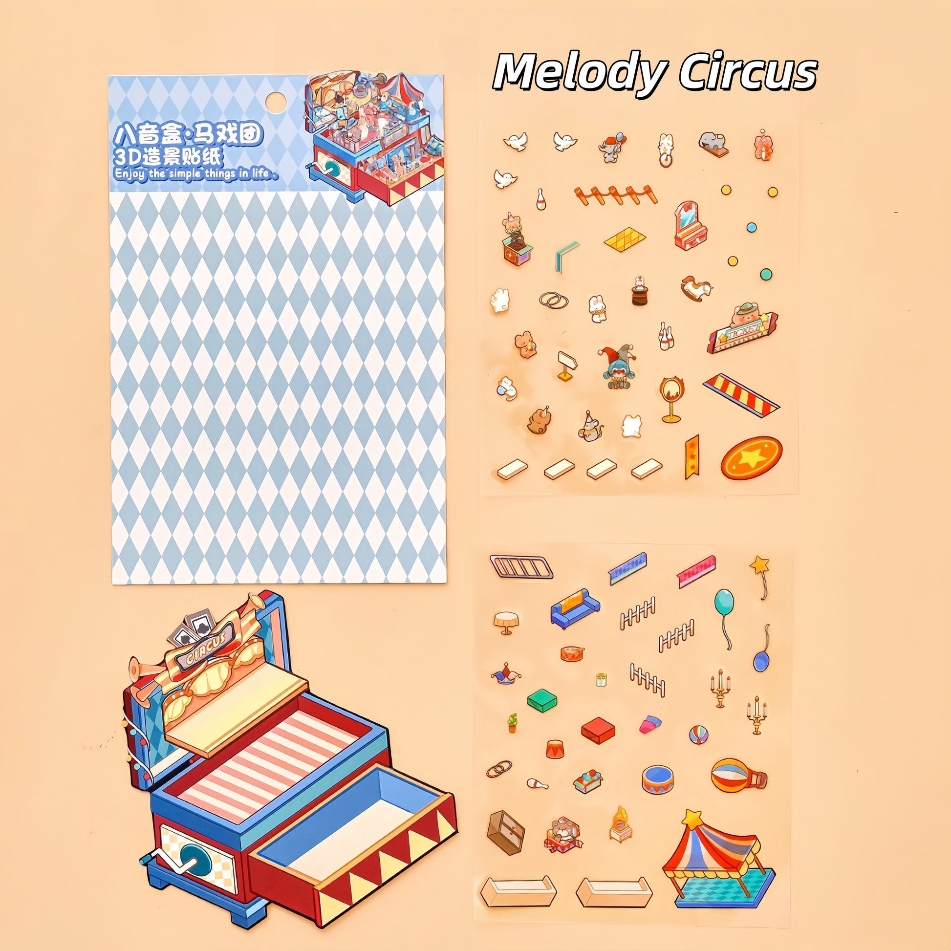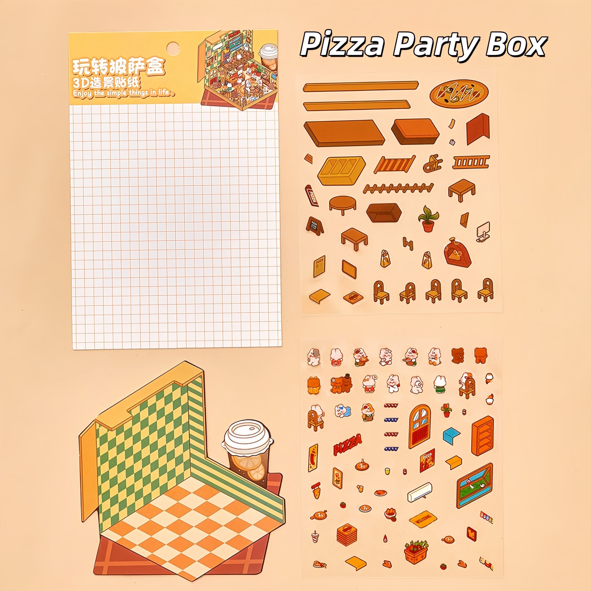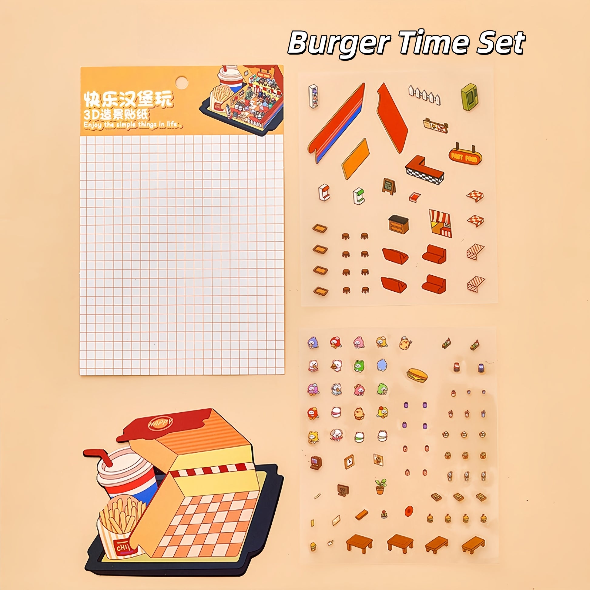 Foodie Funland 3D Sticker | 4 Cute Miniature Scenes