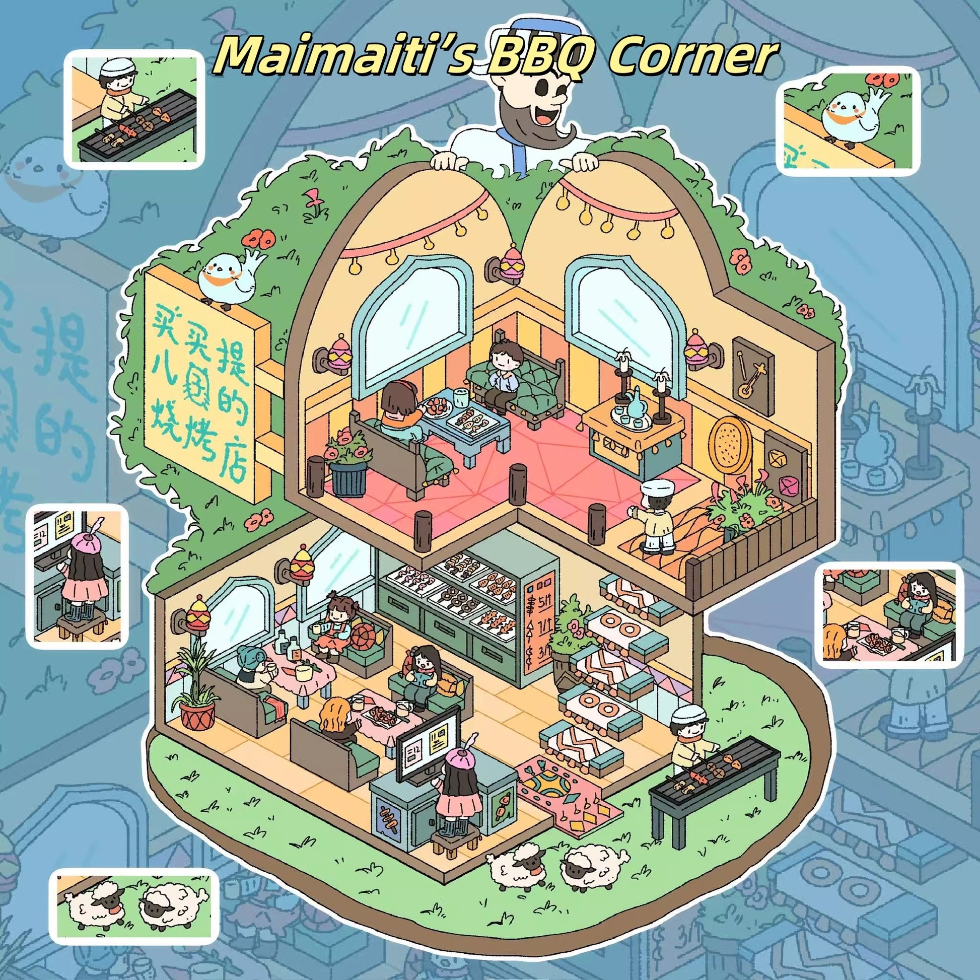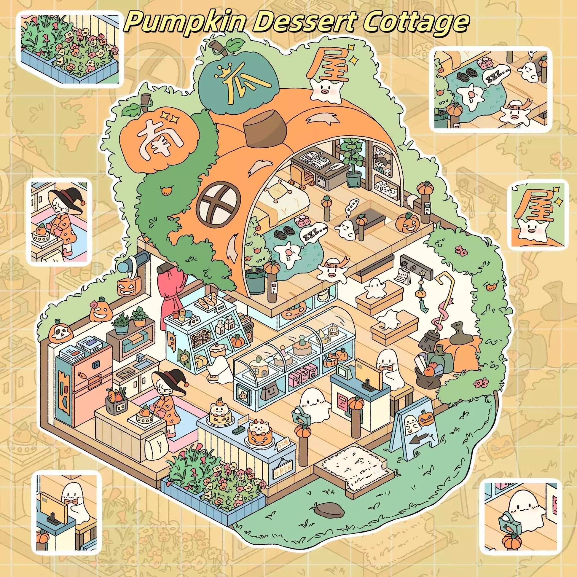 Flavorful Little Town 3D Sticker | 4 Cute Miniature Scenes