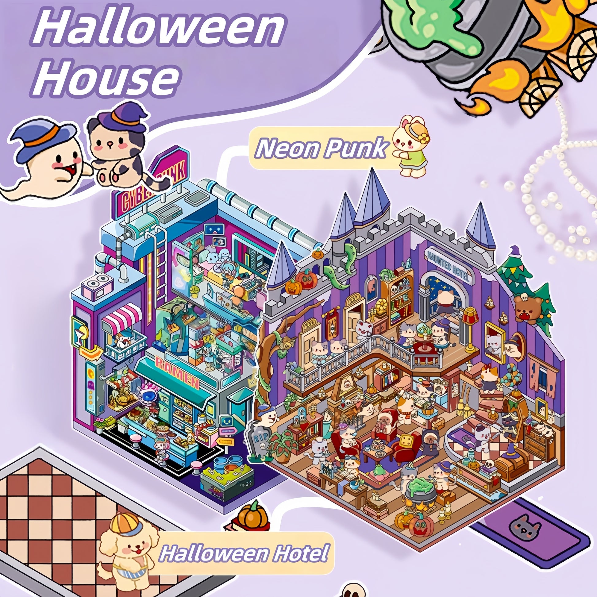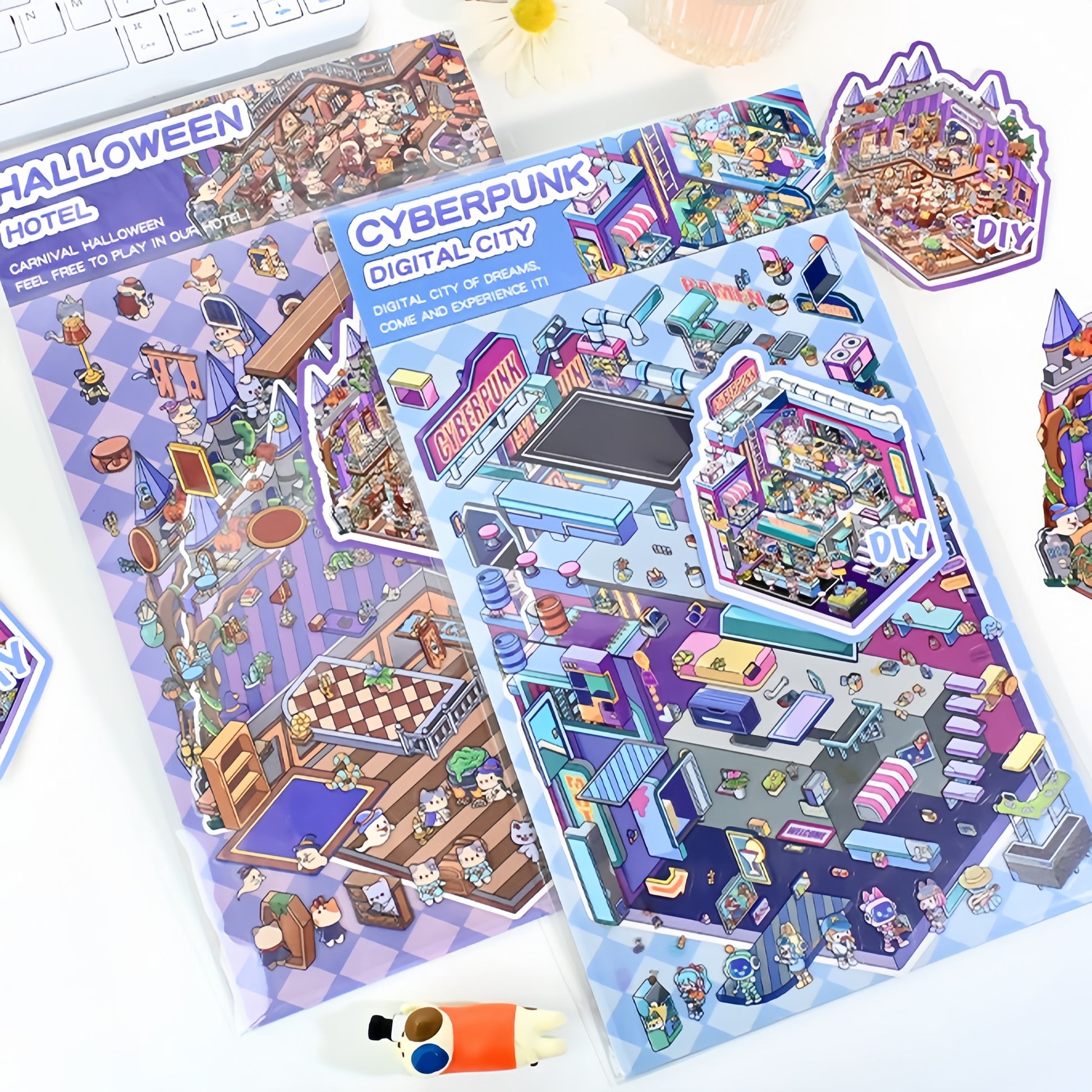 Halloween House 3D Sticker | 2 Cute Miniature Scenes