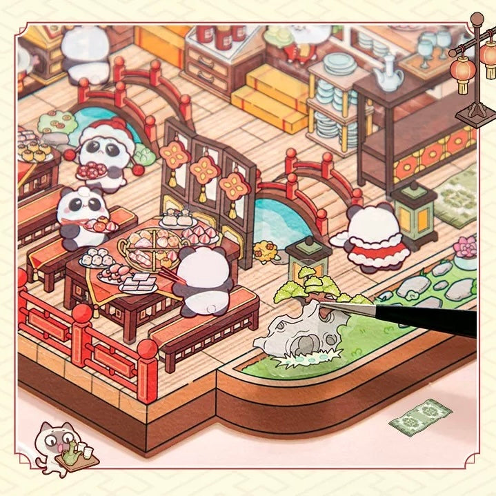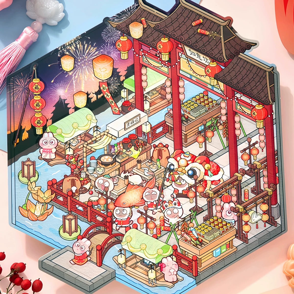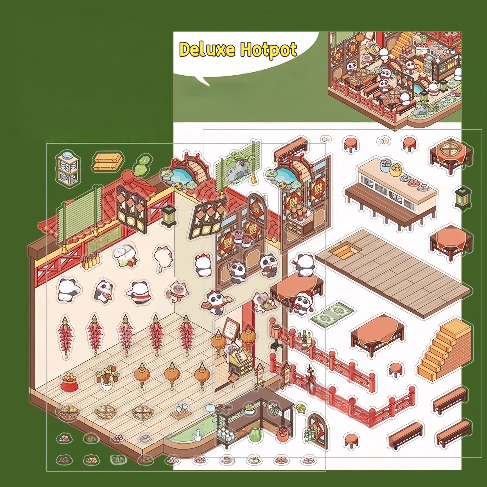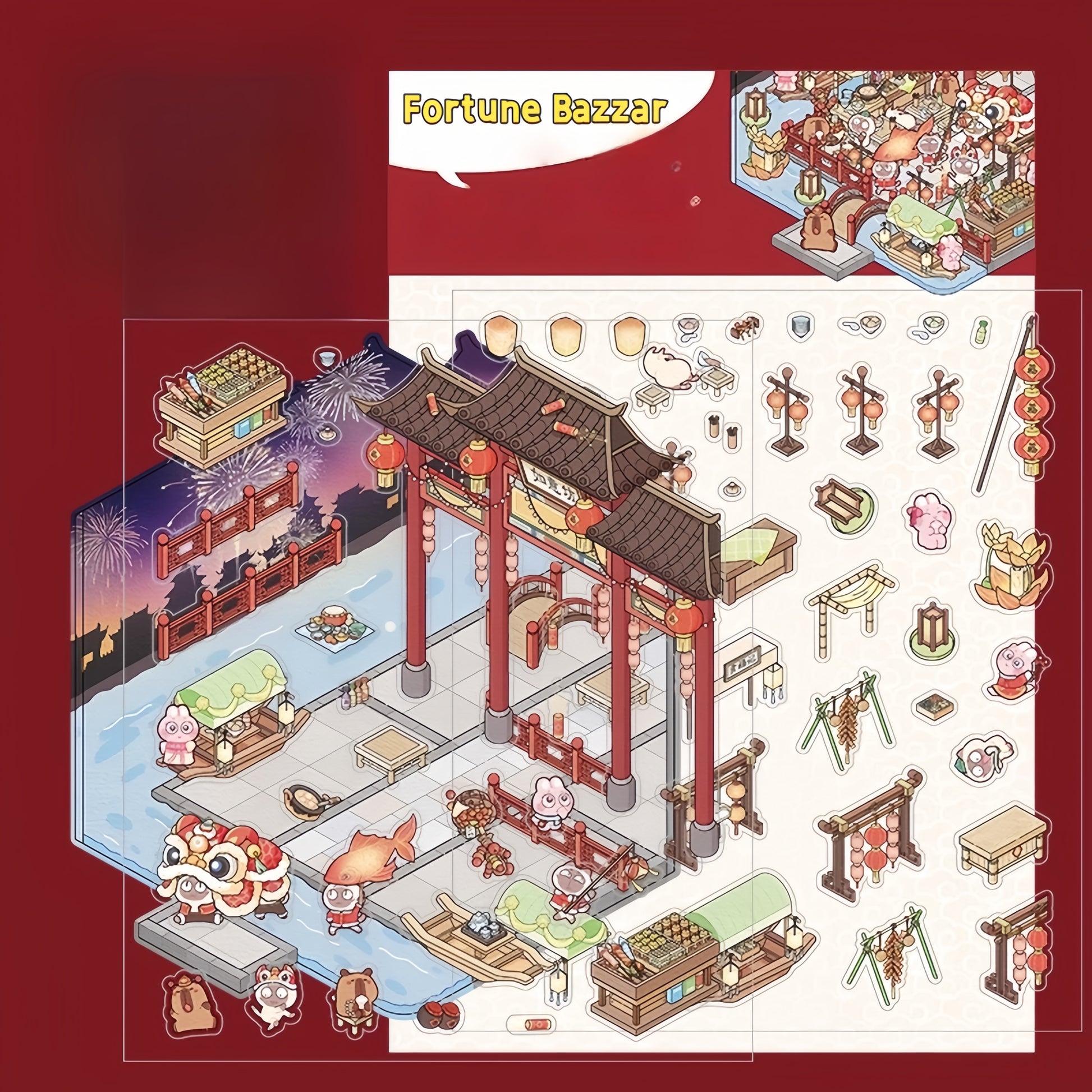 Fortune Feast Town 3D Sticker | 2 Cute Miniature Scenes