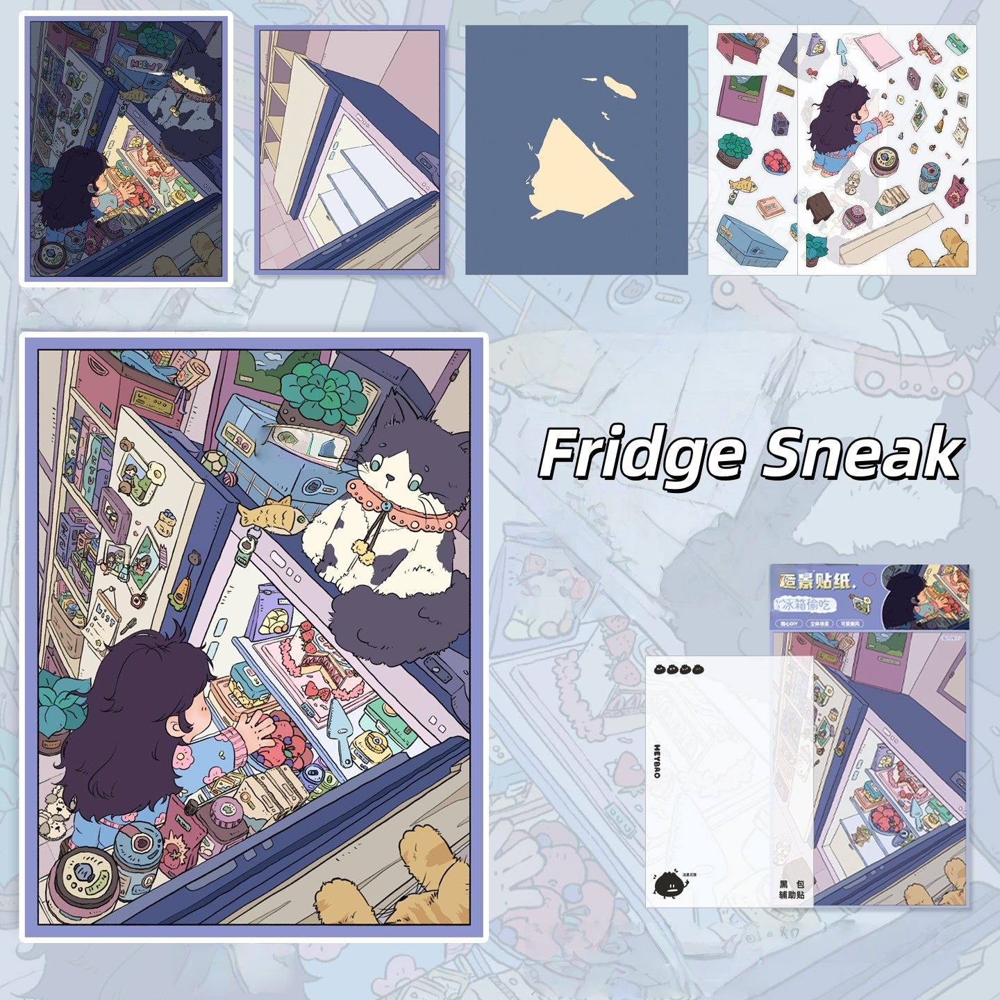Heibao's Daily Life 3D Sticker | 4 Cute Miniature Scenes