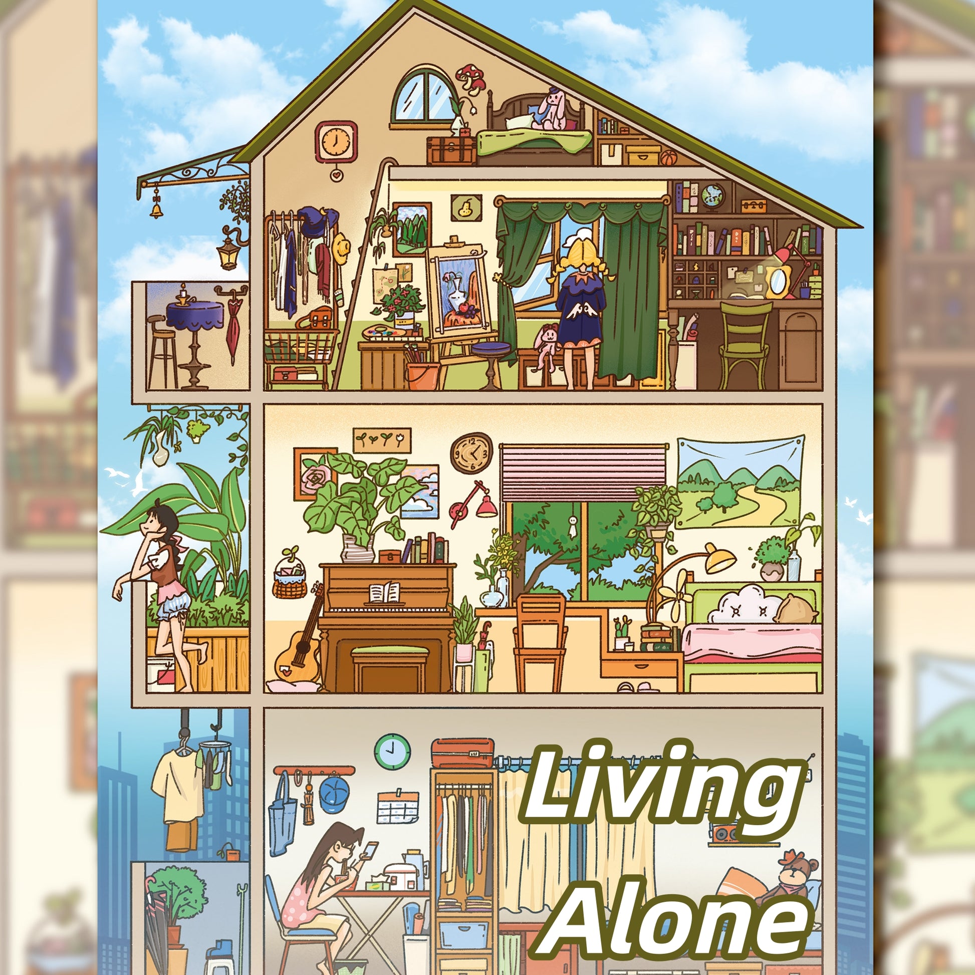 Girl's Dorm 3D Sticker | 2 Cute Miniature Scenes