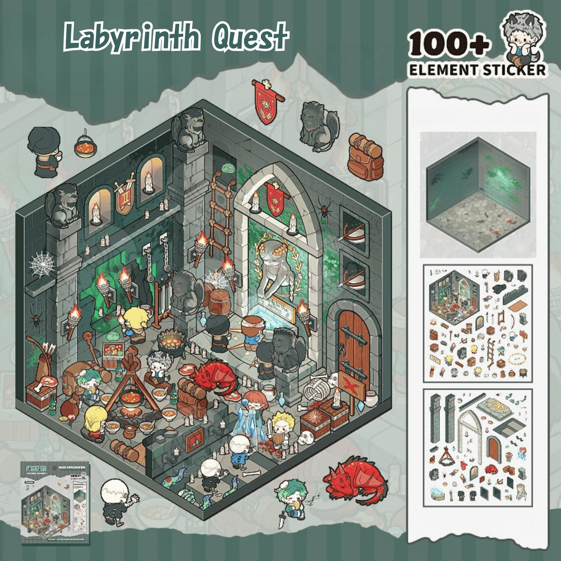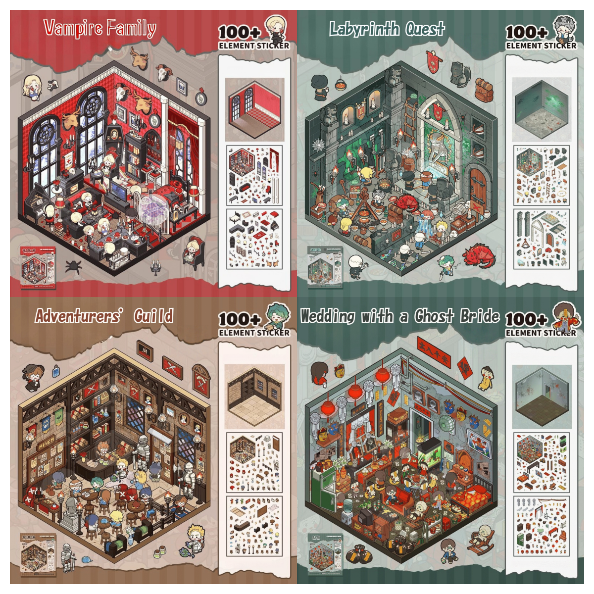 Horror Adventure 3D Sticker | 4 Cute Miniature Scenes