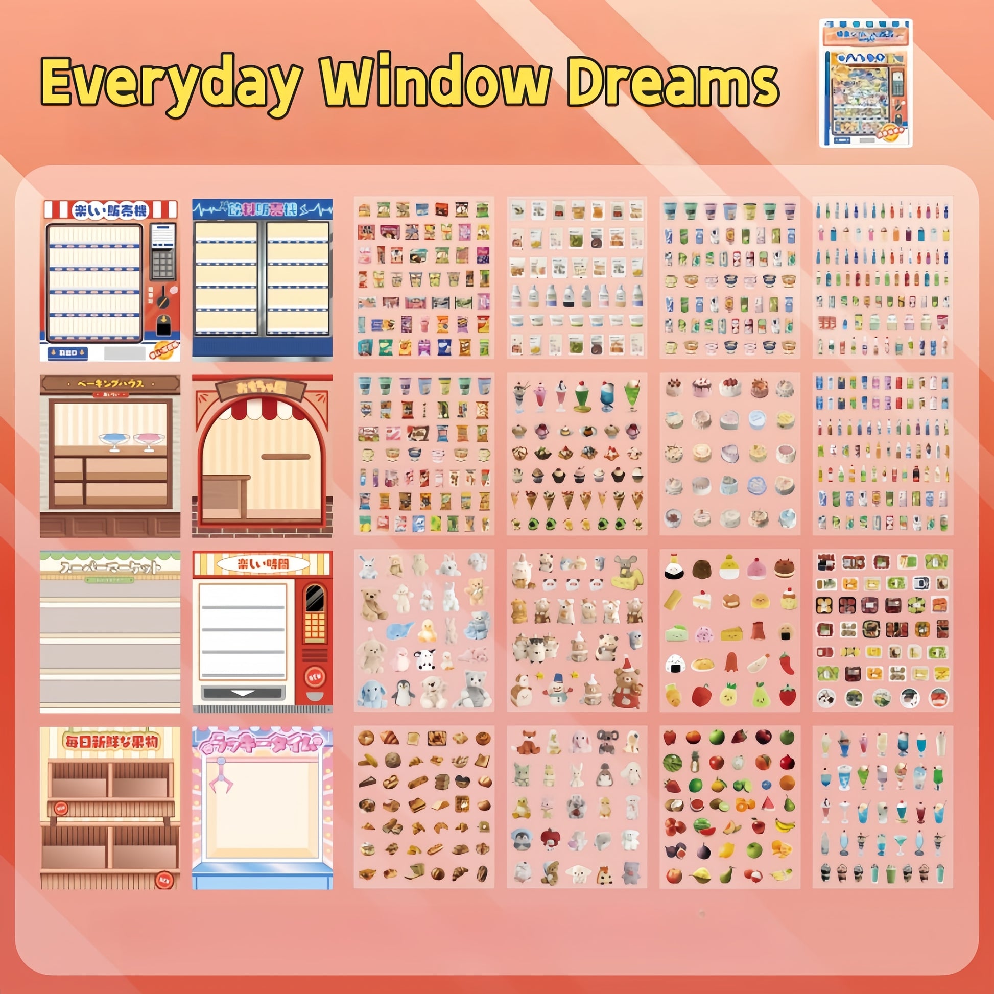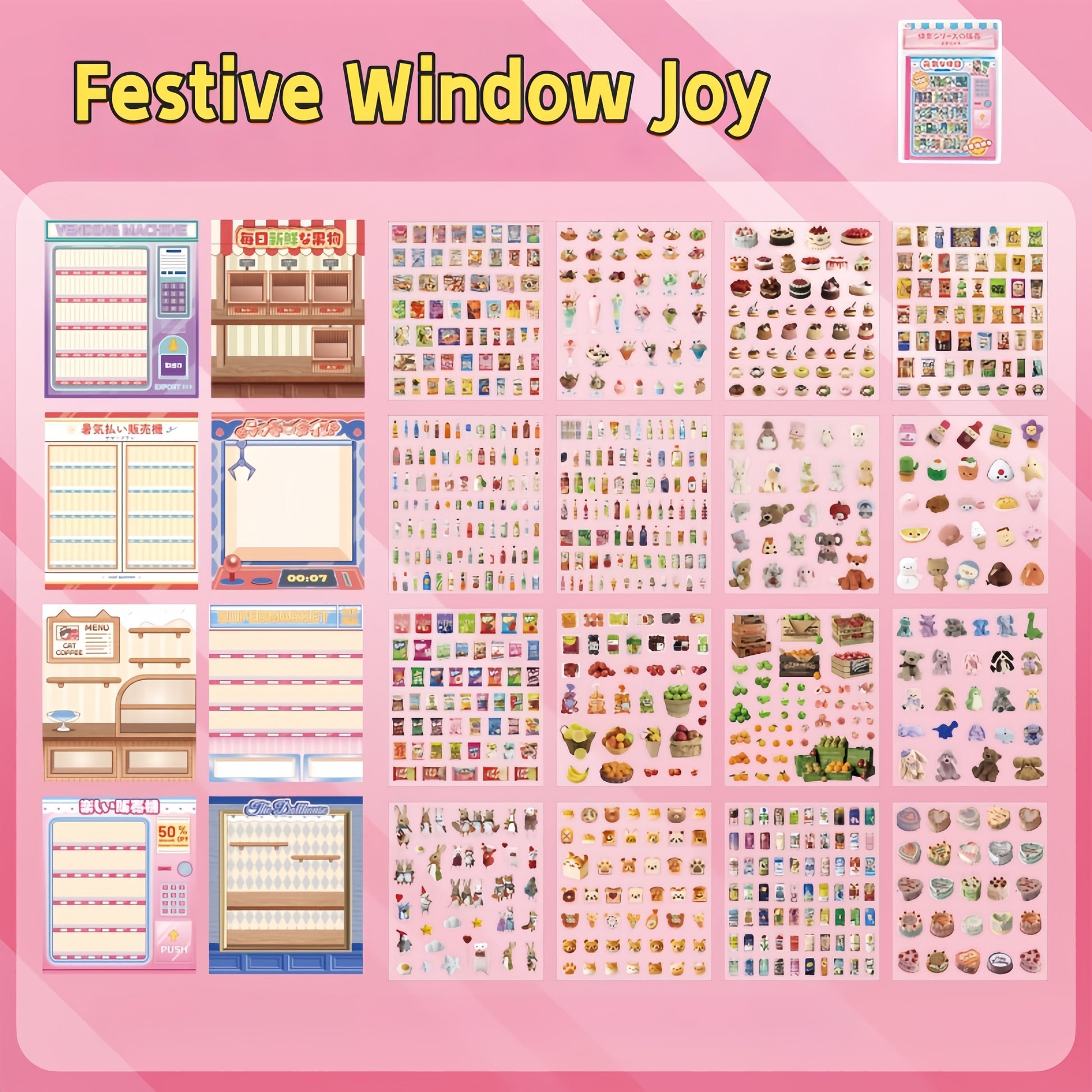 Kawaii Window Scenes 3D Sticker Material Book – Festive Window Joy(8 Scenes)| Everyday Window Dreams(8 Scenes)