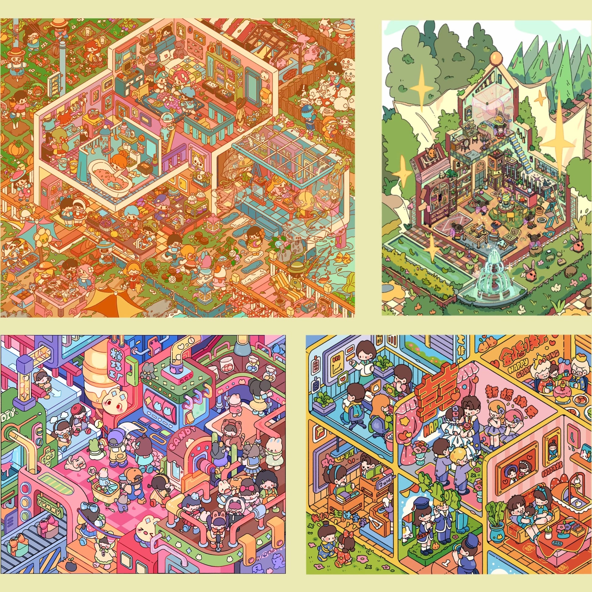 Kids' World 3D Sticker | 4 Cute Miniature Scenes
