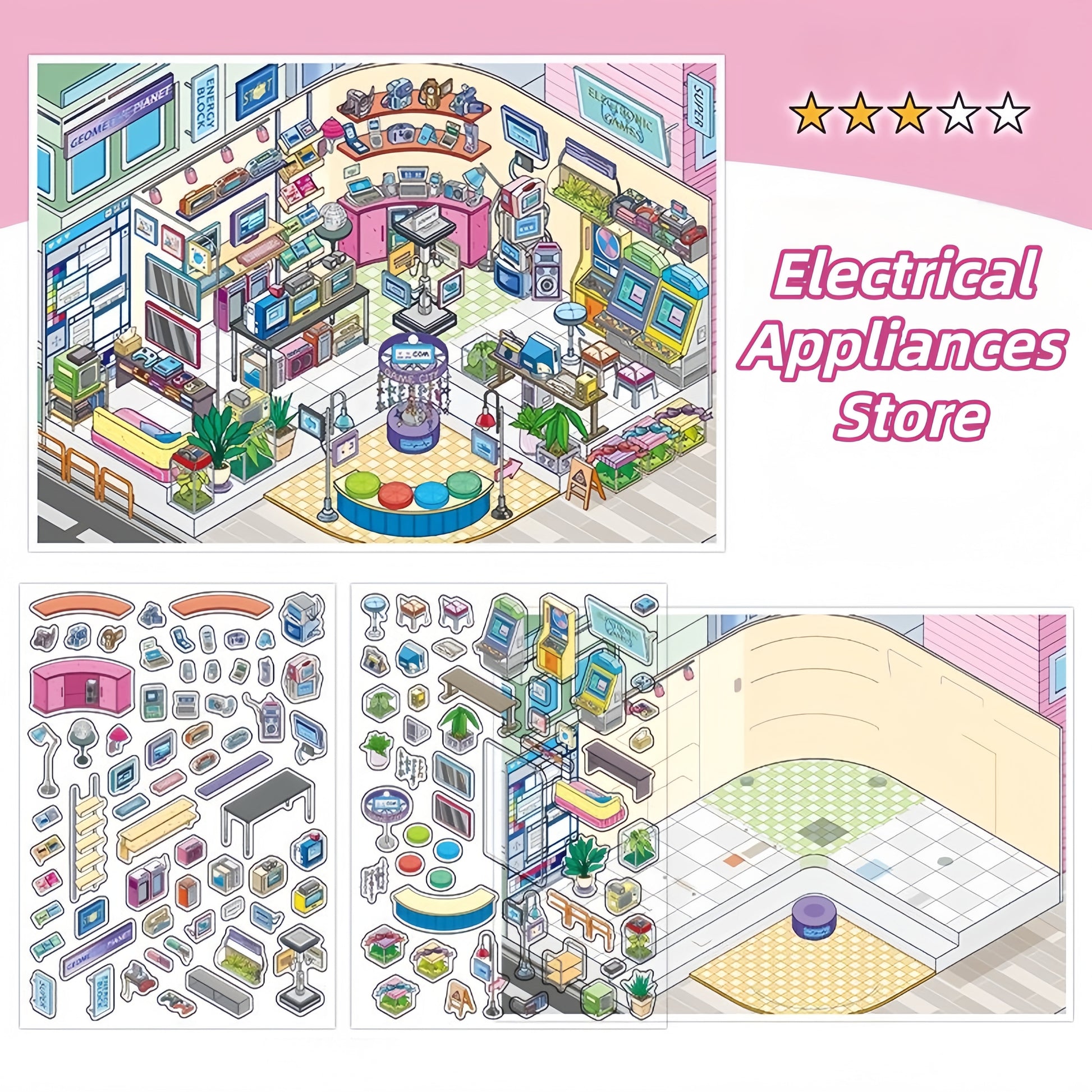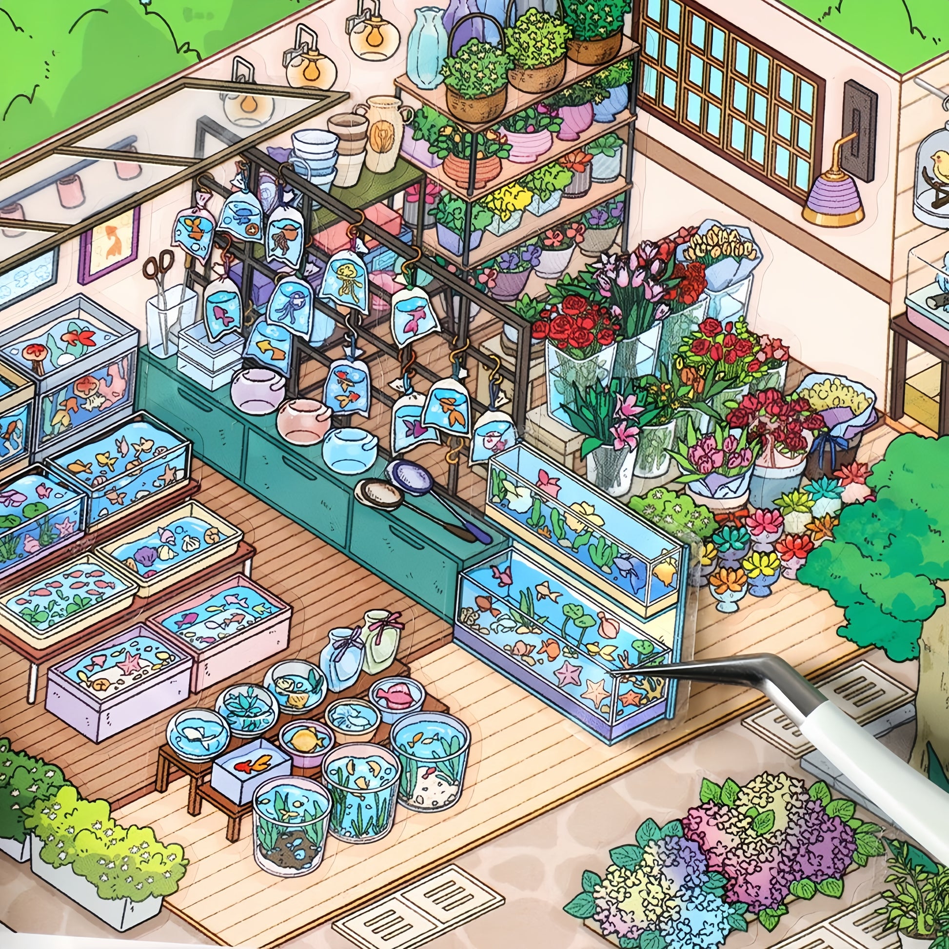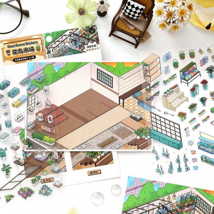 Little Shops 3D Sticker | 4 Cute Miniature Scenes