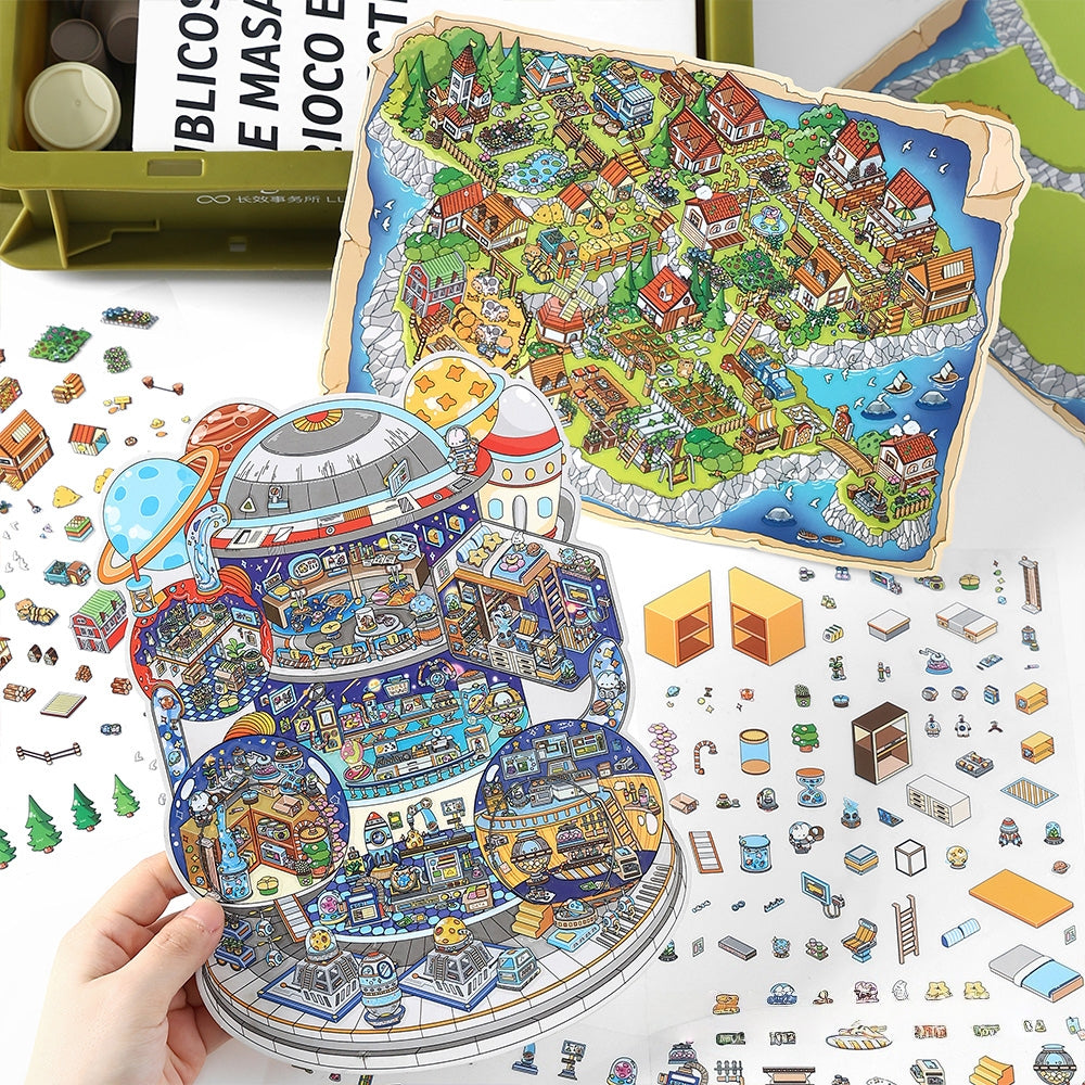 Whimsical Dreams 3D Sticker | 2 Cute Miniature Scenes