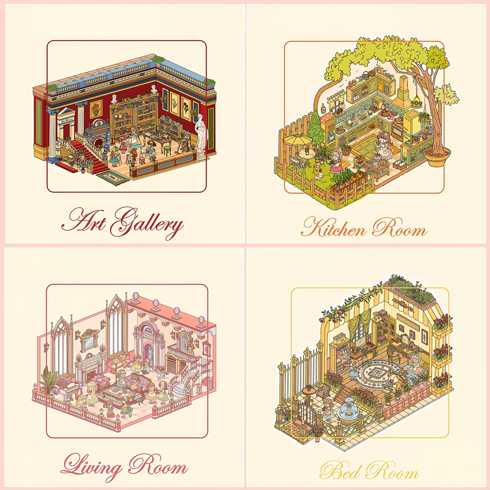 Little Wonder Rooms 3D Sticker | 4 Cute Miniature Scenes