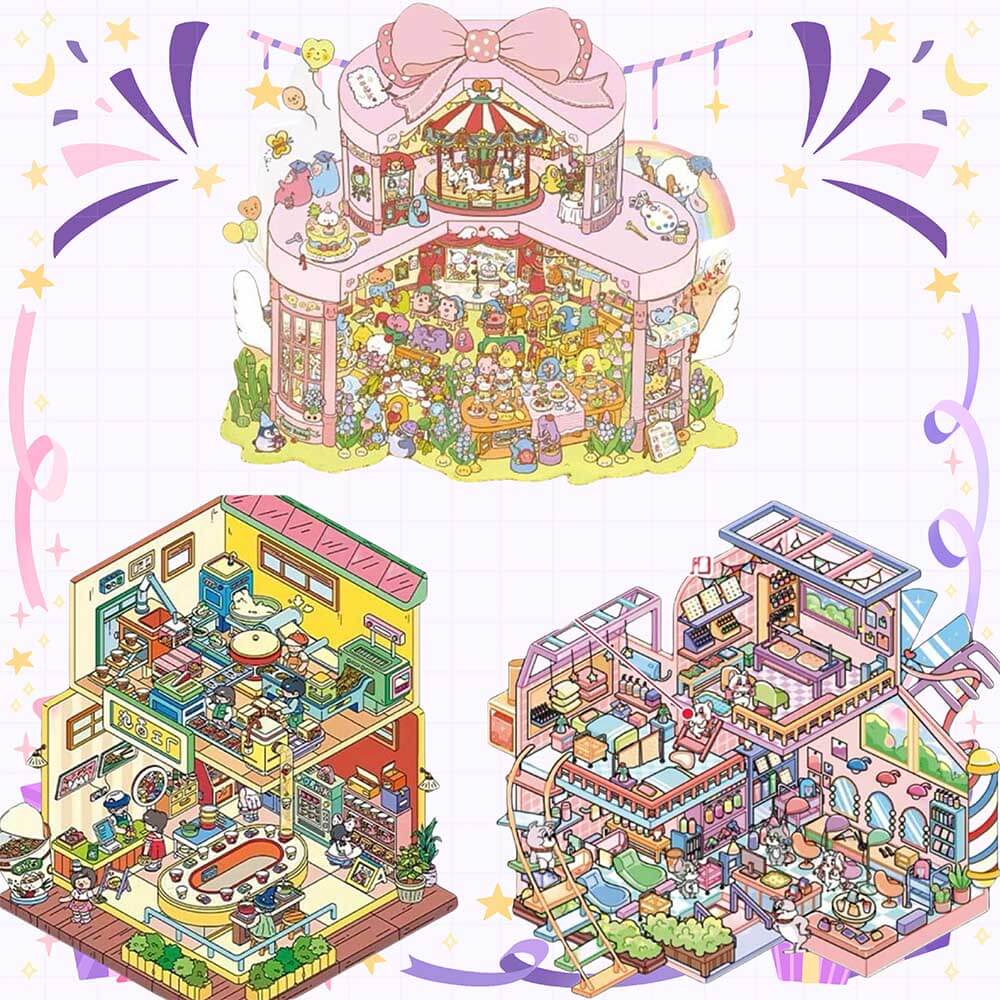 Lovely World 3D Sticker Scenes | 3 Cute Miniature Scenes