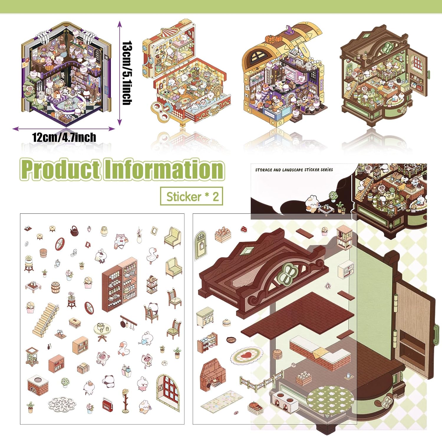 Magical Realm 3D Sticker | 4 Cute Miniature Scenes